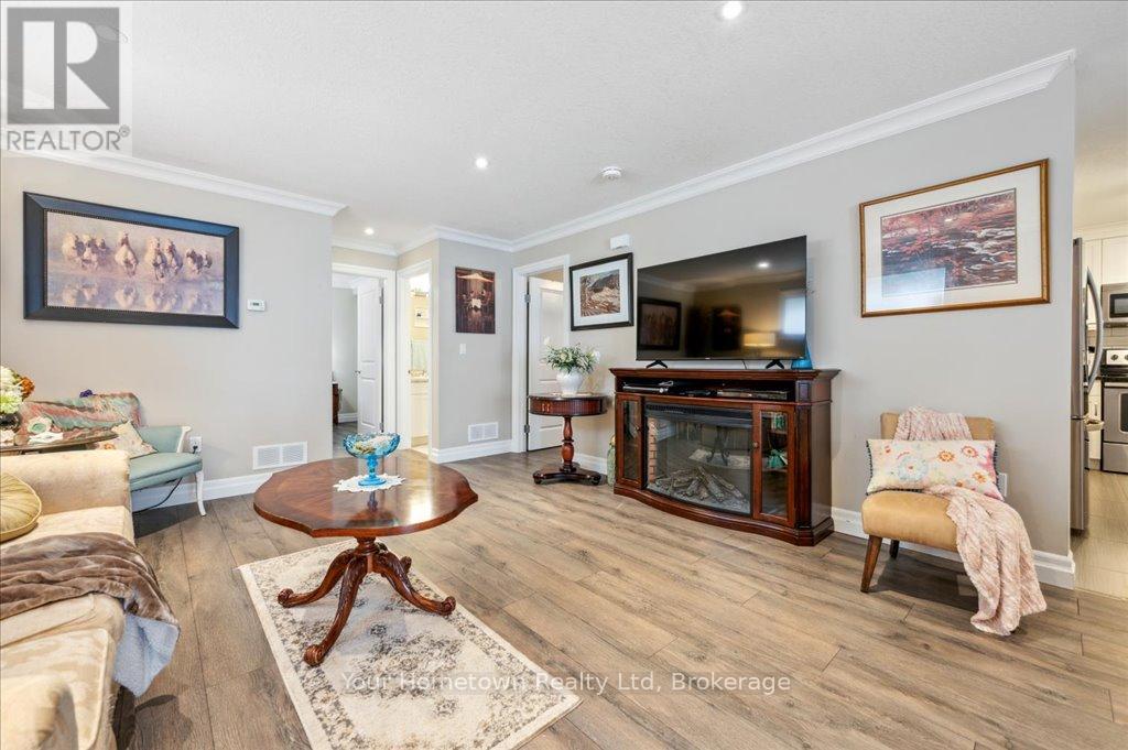 Charming 2-Bedroom Bungalow Condo in Desirable Elora Heights! Welcome to effortless living close to the heart of Elora! This fabulous 2-bedroom condo bungalow is tucked into the sought-after Stumpf Street Elora Heights complex where style meets convenience. Step inside through the grand double-door entry into a bright, welcoming space. The open-concept layout features a generous living and dining area, perfect for hosting friends or cozy nights in. The kitchen is a pure convenience, complete with stainless steel appliances, loads of cabinet space, and ample counters for all your culinary creations! Your primary suite is a true retreat, boasting two large closets and a beautifully tiled ensuite with a sleek glass-door shower. The second bedroom is equally spacious, with a large closet and a bonus walk-in utility/storage room. There's also a second full bathroom with a deep tub, ideal for relaxing soaks or hosting guests comfortably.Enjoy the ease of bungalow living with your own private patio, perfect for morning coffee or evening unwinding and your parking spot is right outside your door for ultimate convenience, along with your walkway shovelled for you! Plus, you're just steps from the Grand River and minutes to downtown Elora, where you can explore boutique shops, top-rated restaurants, and vibrant local culture. Don't miss this rare opportunity to own a stylish, low-maintenance home in one of Ontarios most charming communities! (id:64974)