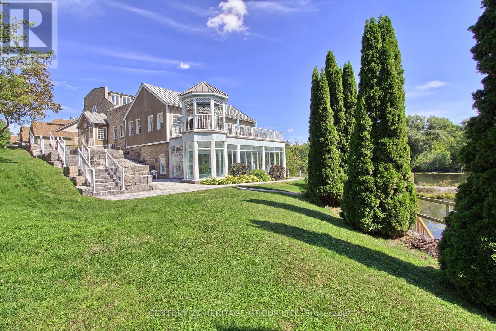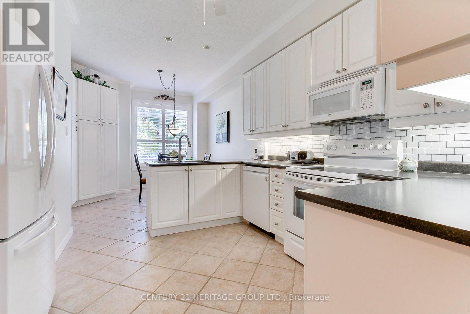 Welcome to this carefree living bright & spacious stone & brick condo townhome bungalow situated in the Rivermill adult lifestyle community. Situated in the heart of Lindsay's waterfront district. This beautiful home features 1256 Sq Ft on the main floor for all your everyday living needs. With 9' ceilings, 4 walk-outs, 2 decks, large eat-in kitchen with pantry, open concept living & walk-out to spacious upper deck, formal dining room with gleaming oak hardwood floors, primary bedroom w/ensuite and walk-out to balcony, main floor laundry and foyer garage access. Enjoy all the amenities the clubhouse offers including an indoor pool, games room, upper level outdoor patio that overlooks the water, onsite docking with direct access to Trent Severn System, tennis courts & Rv storage area. Carefree living includes lawn maintenance, landscaping, window cleaning & snow clearing to your doorstep! Close to hospitals and healthcare. Move In, Relax And Enjoy. (id:64974)