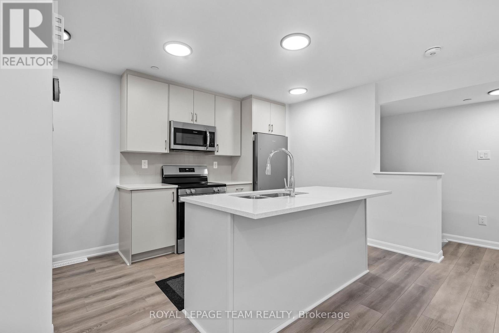 Welcome to Unit 28 at 301 Glenroy Gilbert Drive! This brand-new lower stacked townhome offers 1063 sq. ft. of well-laid-out living space in a convenient Barrhaven location, close to shopping, schools, transit, and everyday amenities along Marketplace Avenue. The main level features a bright open-concept living and dining area, a powder room, and a modern kitchen with quartz countertops, stainless steel appliances, ample cabinetry, and a pantry located just across the room. The finished lower level includes two spacious bedrooms with large closets and natural light, stacked full-size laundry, a full 4-piece bathroom, and plenty of storage. 1 heated underground parking space. Walking/biking paths nearby and major transit within a short walk. This cozy condo won't last long! (id:64974)