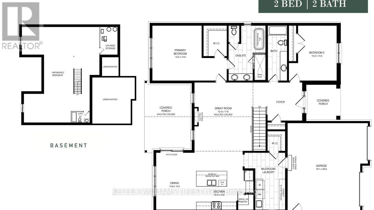 Step into the Ashbrook Model at Crossfield Estates, offering 1,878 sqft of carefully crafted living space. This beautiful 2-bedroom, 2-bath home showcases a bright, open floor plan. The great room features vaulted ceilings and an electric fireplace, creating a warm & inviting space. The kitchen includes sleek quartz countertops, soft-close cabinetry, a walk-in pantry & an island with a breakfast bar for casual dining or entertaining. The primary suite is a tranquil oasis with a walk-in closet & luxurious ensuite, complete with a freestanding tub and glass-enclosed shower. A second bedroom provides flexibility for guests or a home office. Enjoy outdoor relaxation on the covered porch with access through sliding patio doors. Energy-saving amenities include a high-efficiency gas furnace, central air, and a tankless hot water heater. Other models and lots available. Price includes HST. Property tax & assessment not set. Hot water tank is a rental. To be built, being sold from floor plans. (id:64974)