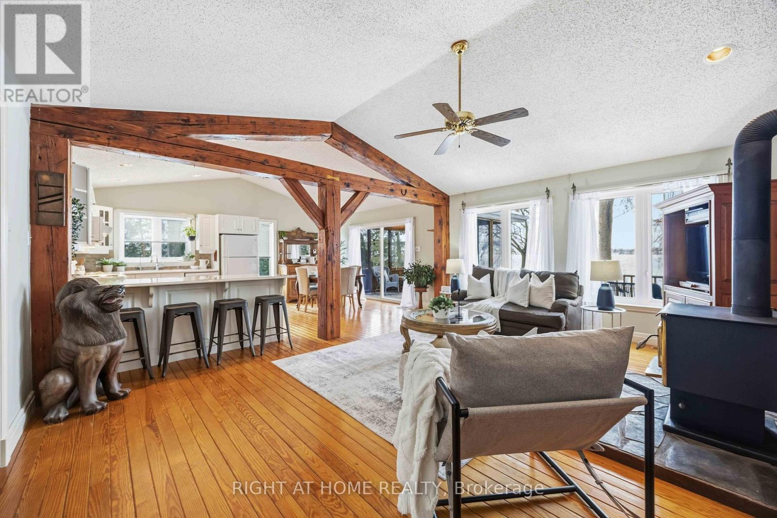 Waterfront living can be yours! Wake up to sparkling water views, spend long summer days out on the lake with family and friends, and enjoy magnificent Sunsets from your back deck. Custom Built in 1996! This rare find on the east shores of Lake Scugog offers a lifestyle that feels like a year-round retreat. Inside, you're greeted by a bright, inviting open-concept layout starting from the spacious foyer that leads into the large Great Room, Kitchen, and Dining area. Vaulted ceilings, hardwood floors, and picture-perfect water views create a warm, airy space ideal for family gatherings, everyday living, and entertaining guests. The dining area flows naturally into the screened-in sunroom, a welcoming spot for morning coffee, reading, or simply watching the world drift by on the lake. The home also features three generously sized bedrooms. The primary retreat includes his-and-hers closets and a walkout to a private deck overlooking the water - the perfect place to enjoy your morning coffee, take an afternoon siesta, or unwind with sunset cocktails. A large main bathroom sits just steps from the primary suite, and the laundry room off the foyer with direct access to the double garage makes daily living easy and convenient. The location is exceptional - just 20 minutes to Port Perry or Lindsay, and 30 minutes to the 407, offering the perfect blend of quiet country waterfront living with easy city access for commuters or weekend outings. Whether you're entertaining friends, pursuing hobbies, or simply relaxing by the water, this property invites you to slow down, savour the scenery, and create memories that last a lifetime. Property is legally 2 separate lots - one on each side of the private laneway - each with waterfront. Lot with House (West Side): 100 ft x 145 ft AND Lot with Workshop (East Side): 100 ft x 102 ft (id:64974)