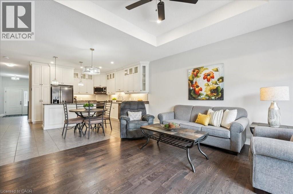 **OPEN HOUSE SAT. MAR. 21 from 2-4pm** Welcome to 28 Bur Oak Drive - Bungalow townhouse with no condo fees! This lovely move-in ready townhouse offers a main floor primary bedroom, 2 car parking and is located close to shopping and amenities in Elmira. With 2,440 sq ft of total finished living space, this townhouse has 2+1 bedrooms and 3 bathrooms. Enter through the front foyer, past the front bedroom/den and the adjacent 4 piece bathroom and into the open concept kitchen and living room . The white kitchen has ample cupboard space, a large island and dinette, a great spot for your morning cup of coffee! The living room features a tray ceiling, hardwood floors and a gas fireplace. The primary bedroom has a tray ceiling, a walk-in closet and a 4 piece ensuite with shower and double sinks, no need to share your space! Also found on the main floor is the laundry room and access to the garage. Downstairs you will find an extra large rec room, an additional bedroom and a 3 piece bathroom. Have pets? This home has a pet washing station under the stairs! The backyard is a summer oasis! The fully fenced landscaped yard has a deck with pergola with built-in bench. This home is in a great location with easy access to shopping, HWY 85, and walking trails along the Lions Ring Trail. (id:64974)
