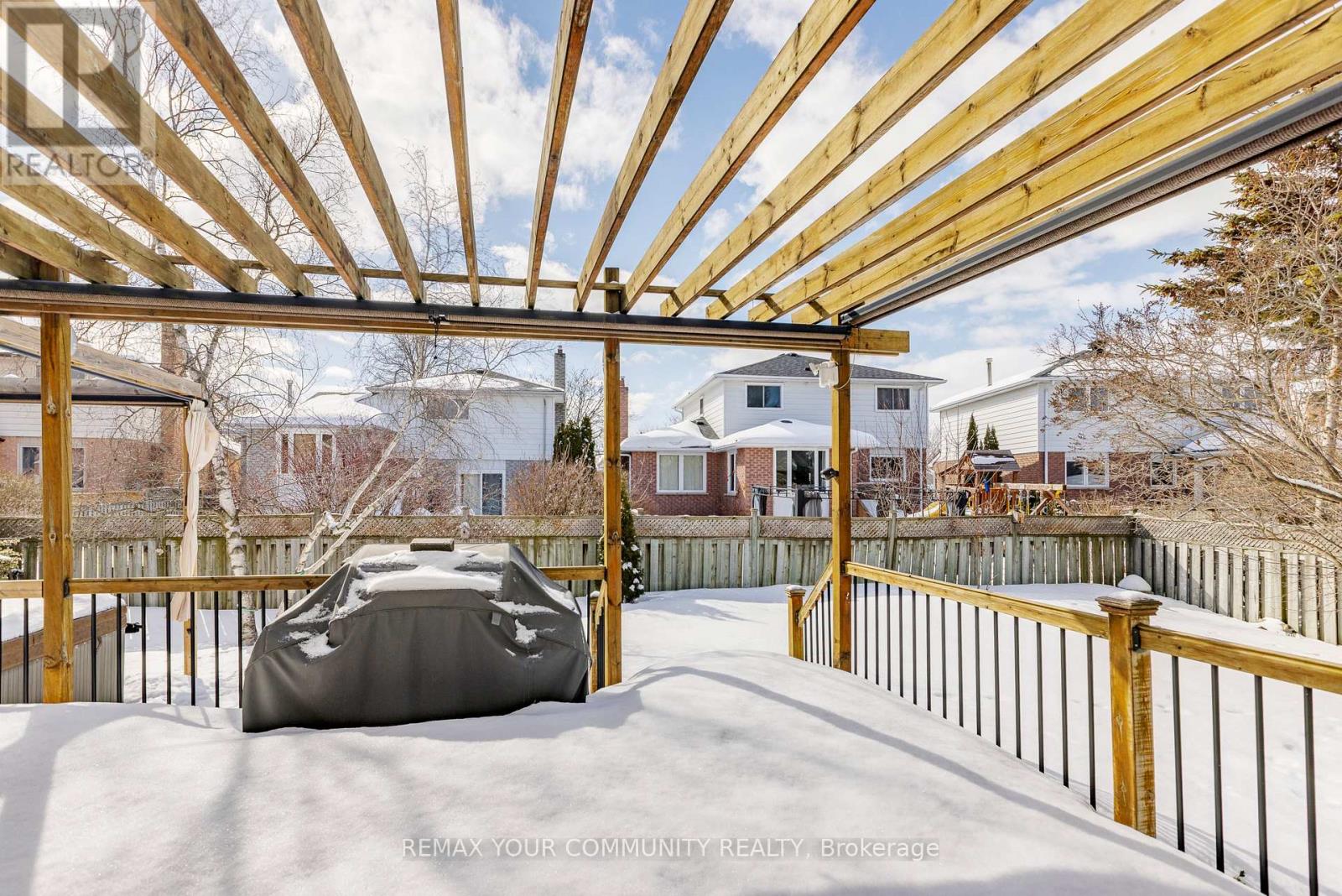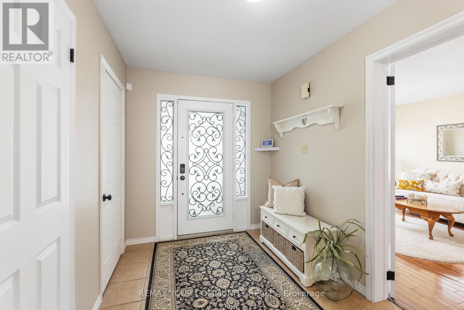 Absolutely stunning 4-bedroom family home situated on a premium pie-shaped lot, nestled among mature trees in a fabulous family-friendly neighbourhood in the heart of Keswick. Lovingly maintained and beautifully upgraded throughout, this sought-after Cherrywood model offers a fantastic layout. The main floor features a large, welcoming foyer, sun-filled living and dining rooms, and a beautifully updated kitchen with walkout to an incredible backyard. A cozy family room with gas fireplace, along with a charming laundry room and powder room, complete the space. The second floor boasts four spacious bedrooms, including a massive primary suite and two beautifully updated bathrooms. Gleaming hardwood flooring and a handsomely updated staircase enhance the home's warmth and elegance.The backyard is truly a dream, featuring a large deck, lovely pergola, privacy wall, and hot tub, creating the perfect setting for relaxing or entertaining. The lower level offers a generous recreation room plus an unfinished area awaiting your personal design and finishing touches. With incredible curb appeal and lovely gardens ready to bloom with spring just around the corner, this is a home you will absolutely adore. (id:64974)