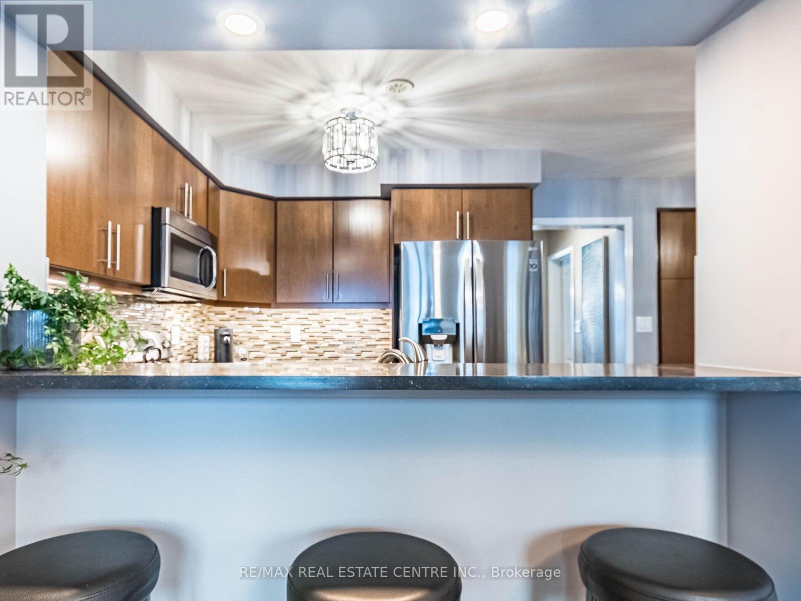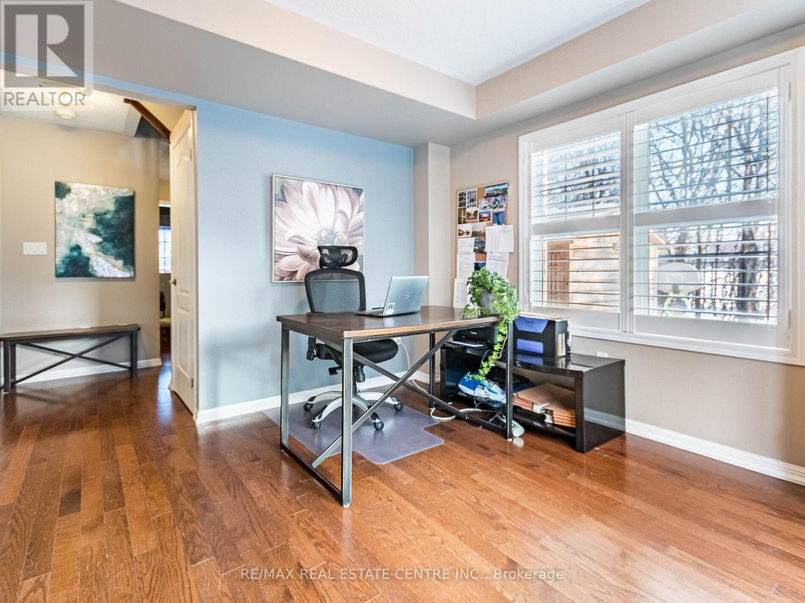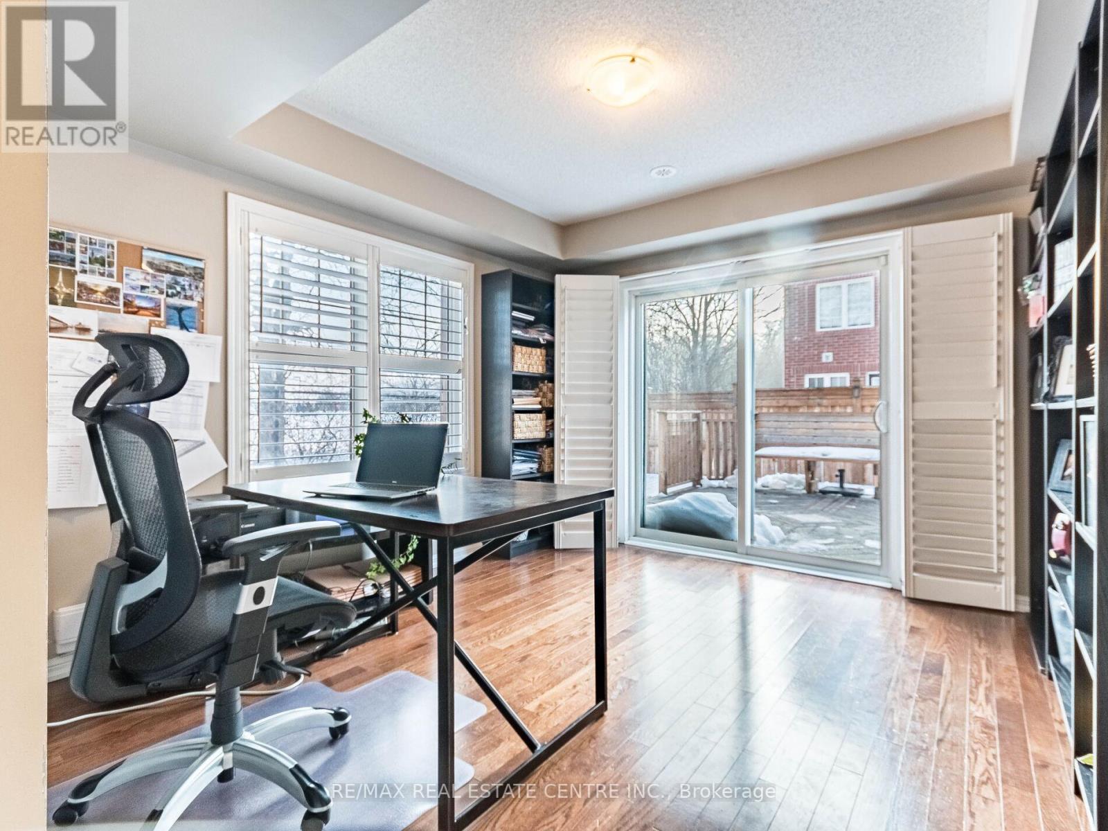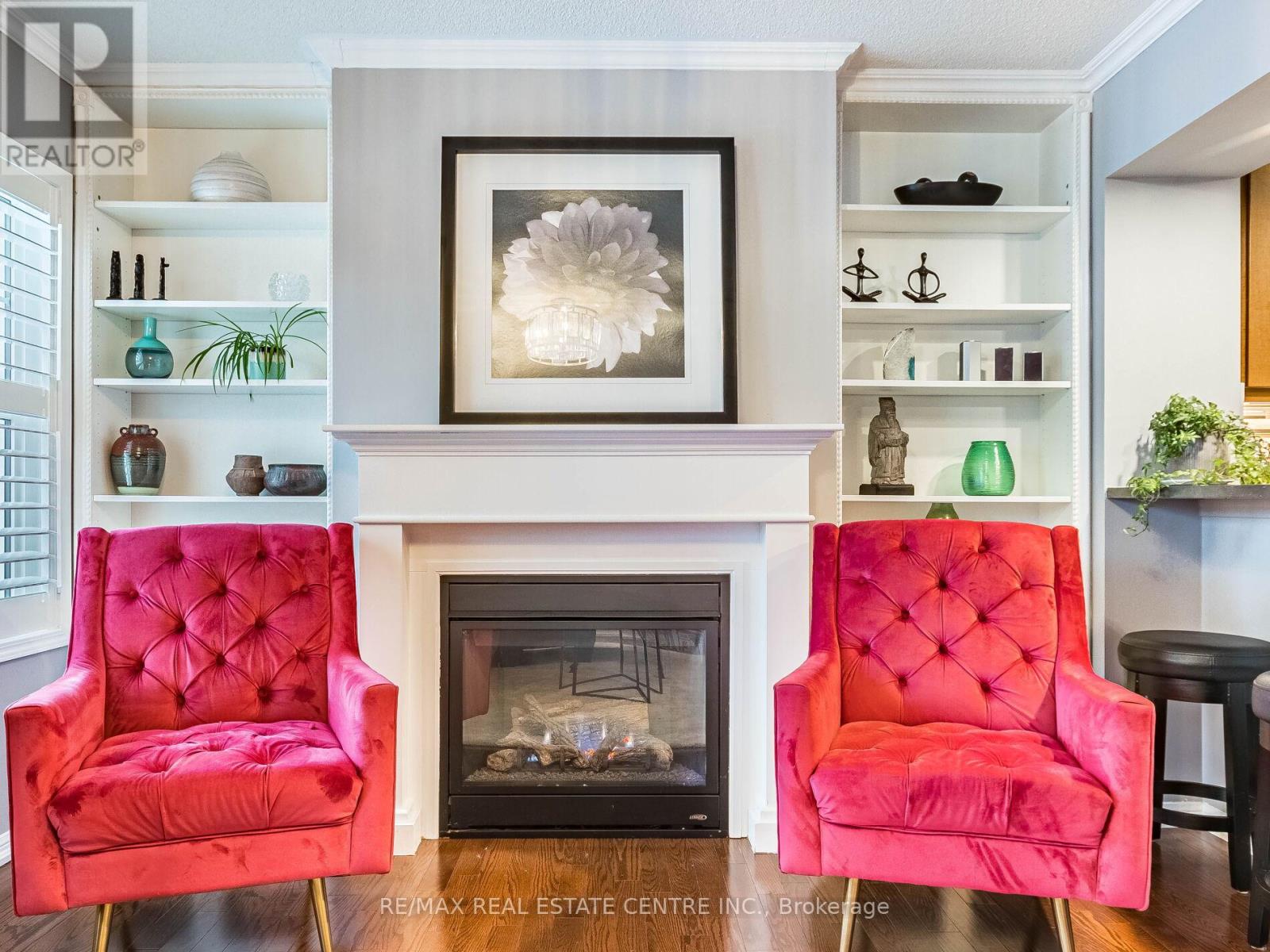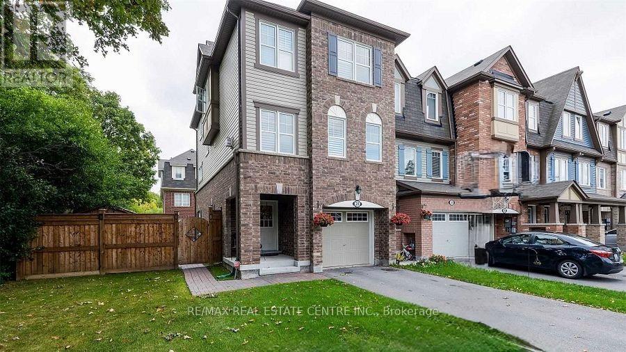 Rare 1800 sq ft FREEHOLD town offering space and privacy of a detached, Beautifully landscaped, parking for 3 large vehicles, a serene oversized fenced yard surrounded by mature trees, complete with custom deck and gas line for outdoor entertaining. Beautifully maintained with functional floorpan, W/O from main floor to Backyard, this flexible space can be used for family room, office or extra bedroom. Open concept modern kitchen and great room. Gas fireplace and built in shelves, gleaming hardwood throughout (no carpet). Undermount lights and pot lights in kitchen, with breakfast bar area. A huge separate living/dining room, perfect for large family gatherings. 3 Large principle bedrooms, 2 with walk in closets. Primary bedroom has spa like ensuite bathroom and custom closet organizer. Super Clean home, immaculately maintained, New Furnace (2025) New OWNED Hot Water Tank (2025), California Shutters, Central Vacuum, Central Air, Garage Door Opener, Aggregate flooring in garage with fold up shelving, access to main floor, Designer Paint Palette, move in ready! Minutes to Go Station, schools, shopping and grocery stores. A RARE beauty that must be seen. (id:64974)