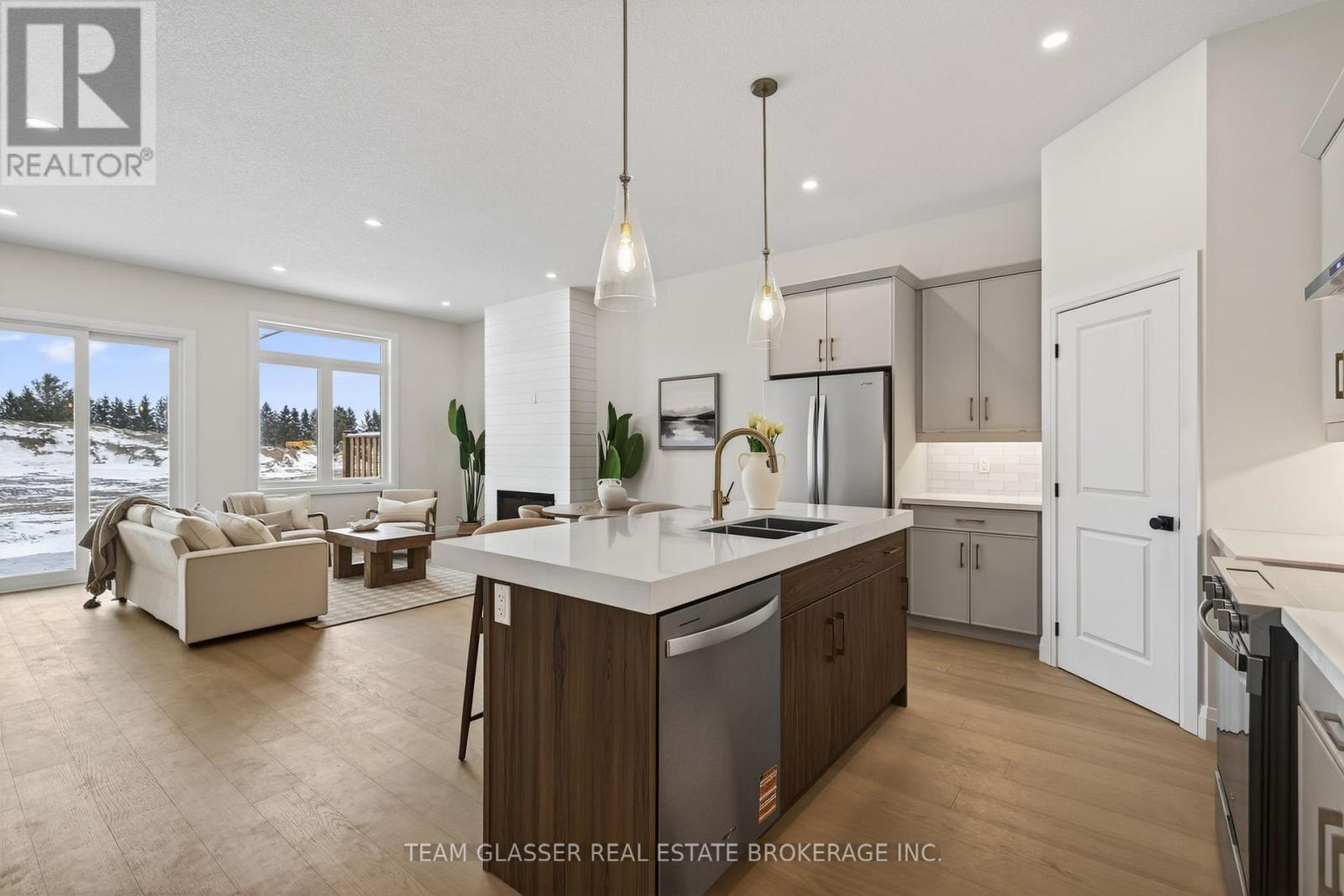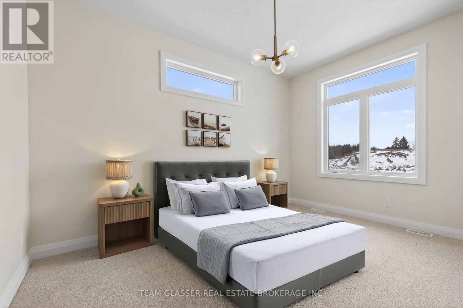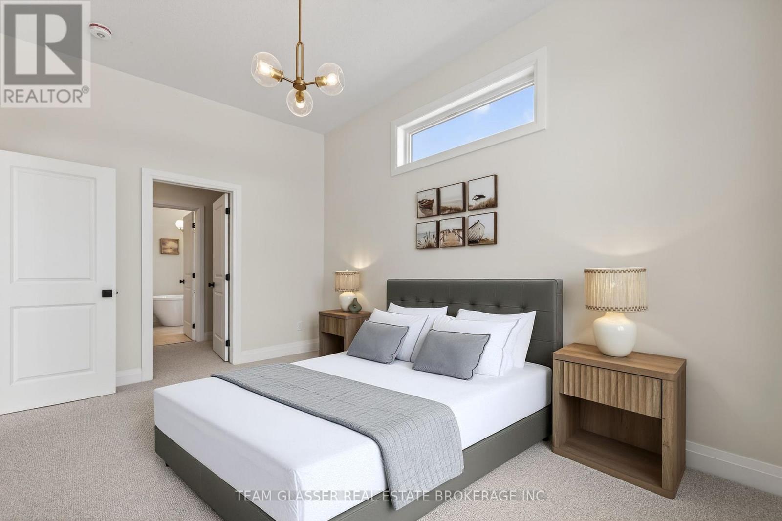 Magnus Townhomes at Sol Haven, Grand Bend. Freehold bungalow townhomes - NO condo fees! This site features a pond across the street, and is within walking distance to golf, restaurants, cafes and the Grand Bend Beach. Closings available immediately, move in for Spring/Summer 2026 in Grand bend! This End unit features selections package A, with lighter tones throughout. Offering 1,298 sq. ft. this 2 Bed 2 Bath townhome offers 2 major differences from the interior unit, it adds side door access to the basement, allowing for an in-law suite with its own separate access and a 100 sq. ft covered back deck., which could be finished for an in-law suite. Some standard features include 10' ceilings, quartz countertops, engineered hardwood, electric fireplace and main floor laundry The primary suite can easily fit a king bed, walk through closet to a double vanity bathroom, walk in shower and stand alone tub. Basement can be finished to add an additional bedroom, bathroom, rec room and den. Inquire for more information, available units, selection packages and be sure to check out our virtual tour link or visit us at our model units! *Basement finish extra.Your lakeside lifestyle begins the moment you arrive. Life feels lighter by the water - welcome to Grand Bend. (id:64974)