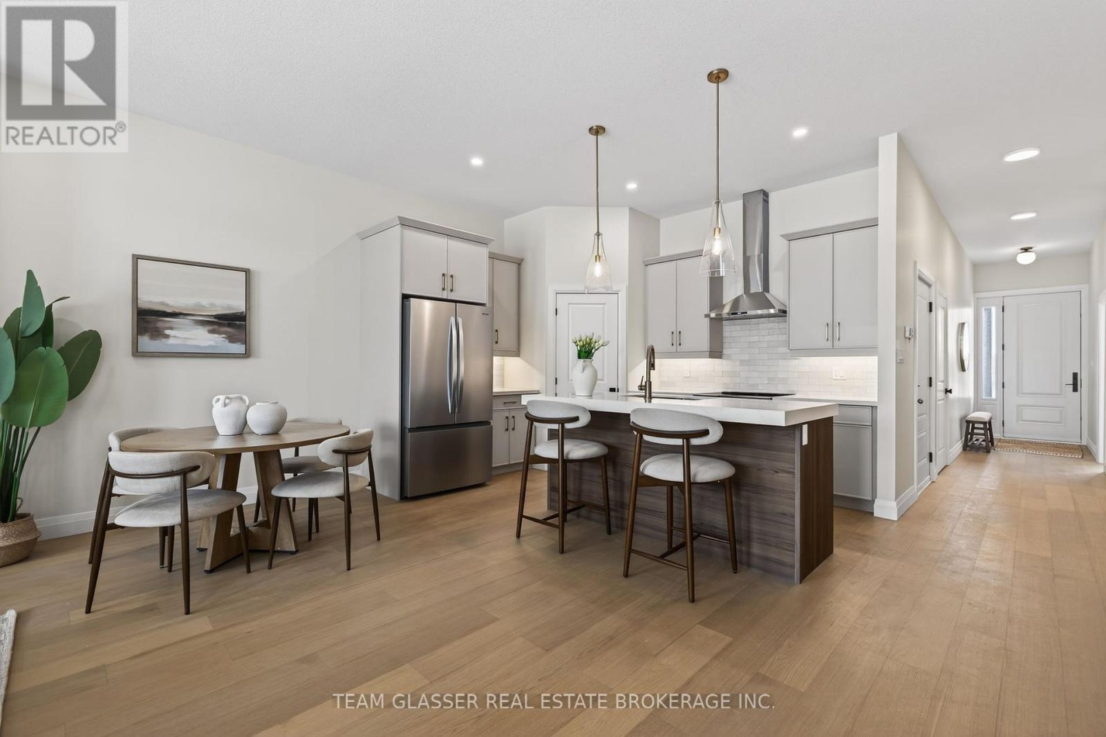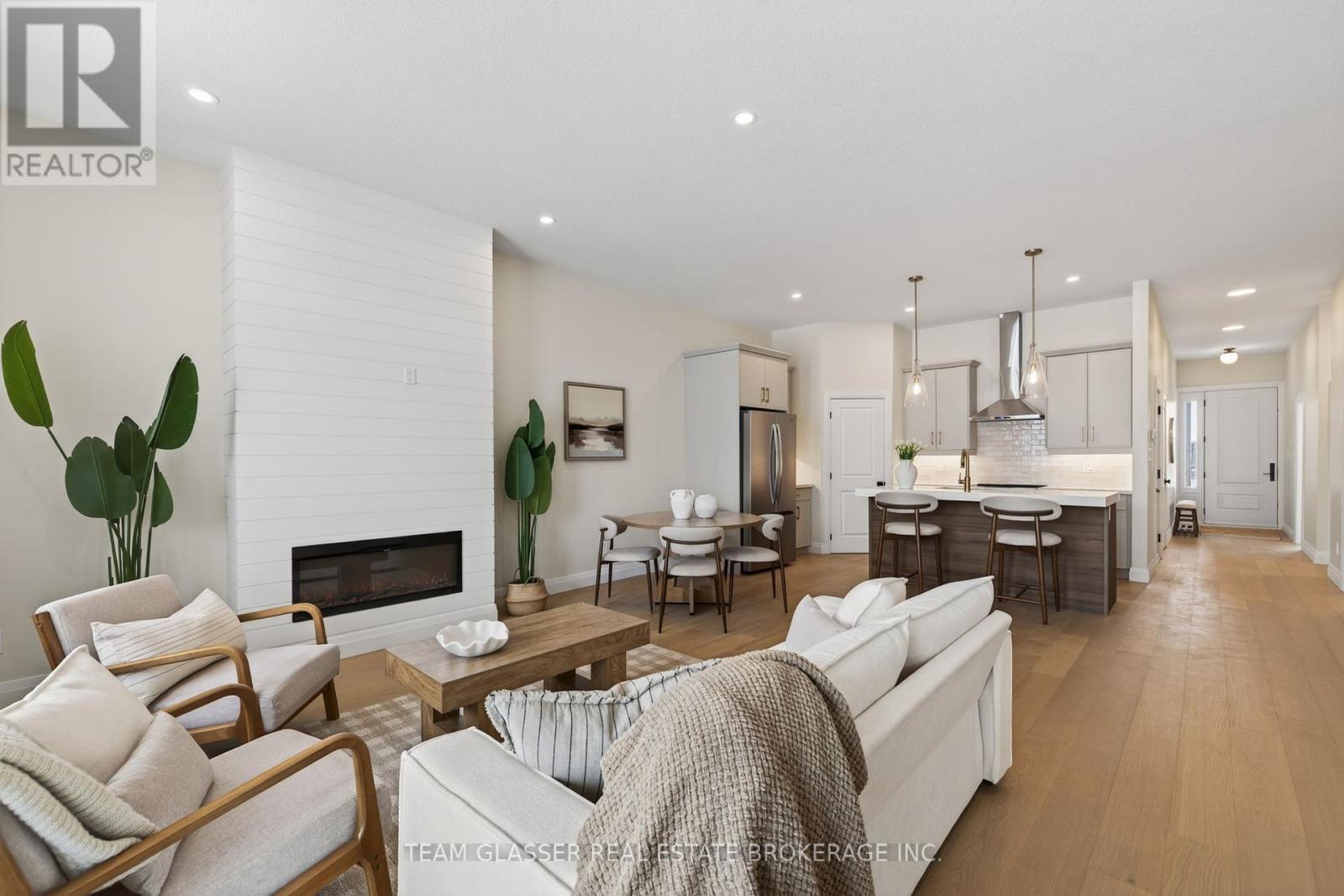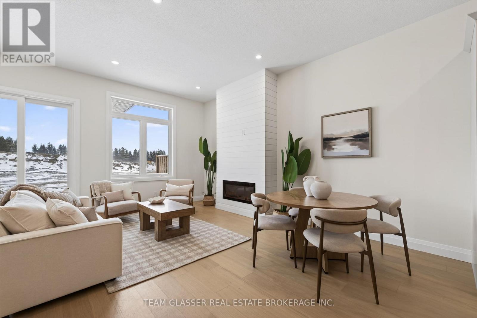 Magnus Townhomes at Sol Haven, Grand Bend. Freehold bungalow townhomes - NO condo fees! This site features a pond across the street, and is within walking distance to golf, restaurants, cafes and the Grand Bend Beach. Closings available immediately, move in for Spring/Summer 2026 in Grand bend! This End unit features selections package A, with lighter tones throughout. Offering 1,298 sq. ft. this 2 Bed 2 Bath townhome offers 2 major differences from the interior unit, it adds side door access to the basement, allowing for an in-law suite with its own separate access and a 100 sq. ft covered back deck., which could be finished for an in-law suite. Some standard features include 10' ceilings, quartz countertops, engineered hardwood, electric fireplace and main floor laundry The primary suite can easily fit a king bed, walk through closet to a double vanity bathroom, walk in shower and stand alone tub. Basement can be finished to add an additional bedroom, bathroom, rec room and den. Inquire for more information, available units, selection packages and be sure to check out our virtual tour link or visit us at our model units! *Basement finish extra.Your lakeside lifestyle begins the moment you arrive. Life feels lighter by the water - welcome to Grand Bend. (id:64974)