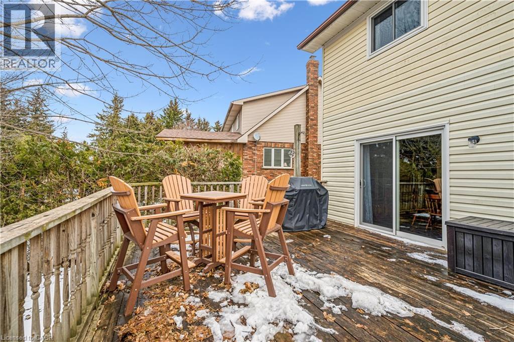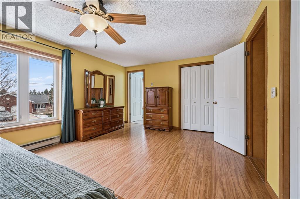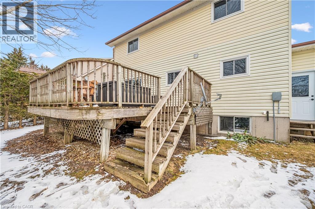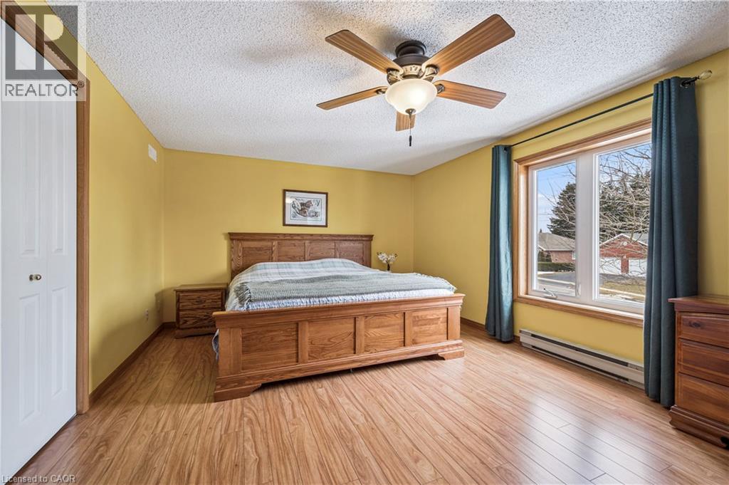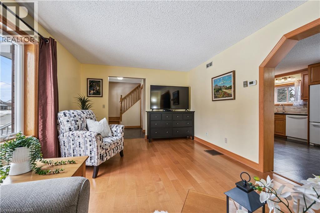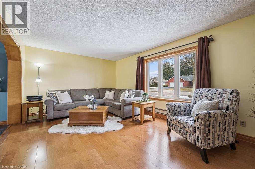Welcome to small town living - where comfort, quality and space come together in a home that truly delivers. This quality built home offers an ideal floor plan for families looking to settle in and comfortably grow. Its' main floor features a tastefully updated and spacious eat-in kitchen, granite countertops, gas stove and sliding doors overlooking the mature and private 165' pie shape lot, delivering an exceptional outdoor experience with mature trees and landscaping that is increasingly hard to find. Large bright living room with updated maple hardwood floors, guest bathroom and laundry complete the main floor conveniences. The upper level offers 3 roomy bedrooms, king size primary bedroom with cheater ensuite and his & hers closets. The fully finished basement adds incredible versatility with a large rec room, ideal for entertaining. You'll also find an additional bedroom complete with walk-in closet, that adapts to your needs, whether it's for your growing family, guests, home office, hobby room or workout space. This home is not complete without the cold cellar and ample storage space - perfect for keeping your home organized without sacrificing living space. Many other updates to this home, include windows, doors, roof, furnace and A/C and more ... ready for you to move in and enjoy ! Steps to public school and downtown shops, restaurants, community/sports centre, parks and theatre. Located in a welcoming family friendly neighborhood, not far from the city, this home offers the lifestyle you've been dreaming of - quiet streets, community feel and fresh air to breath - while still keeping you connected to everything you need. It's all here - now it just needs you. Don't miss your opportunity! (id:64974)