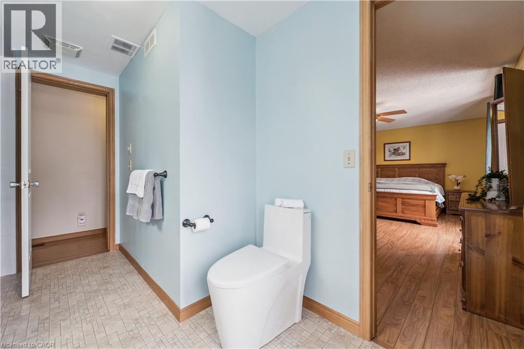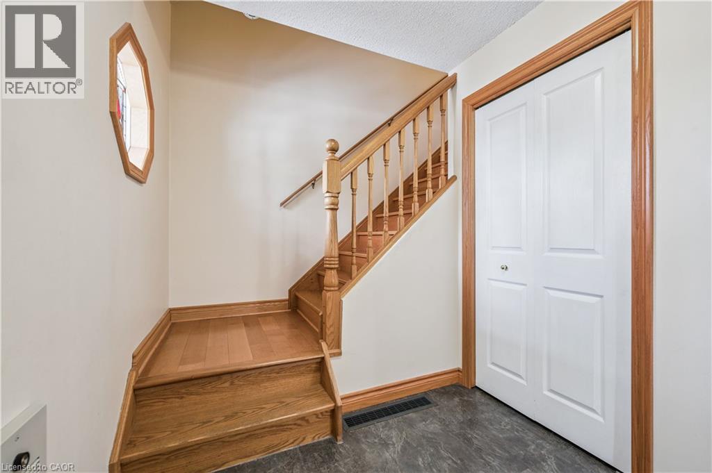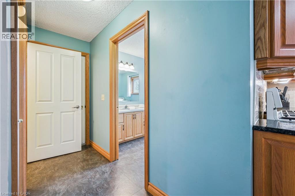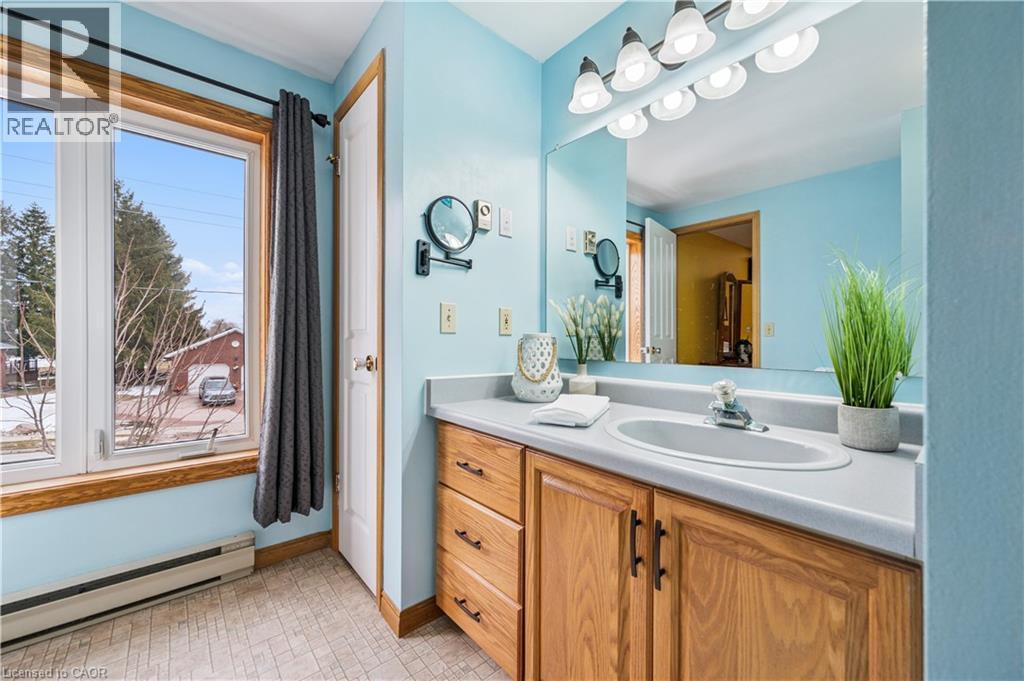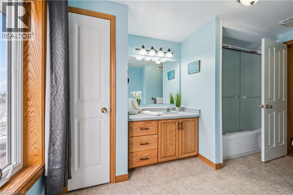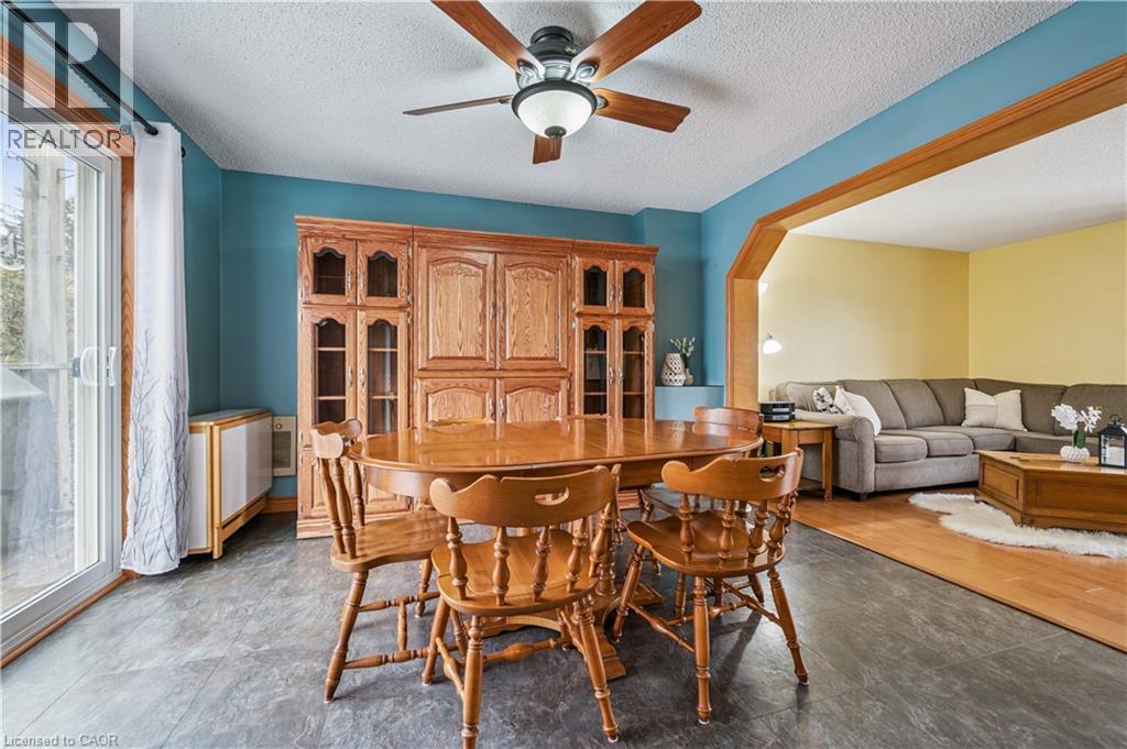 Welcome to small town living - where comfort, quality and space come together in a home that truly delivers. This quality built home offers an ideal floor plan for families looking to settle in and comfortably grow. Its' main floor features a tastefully updated and spacious eat-in kitchen, granite countertops, gas stove and sliding doors overlooking the mature and private 165' pie shape lot, delivering an exceptional outdoor experience with mature trees and landscaping that is increasingly hard to find. Large bright living room with updated maple hardwood floors, guest bathroom and laundry complete the main floor conveniences. The upper level offers 3 roomy bedrooms, king size primary bedroom with cheater ensuite and his & hers closets. The fully finished basement adds incredible versatility with a large rec room, ideal for entertaining. You'll also find an additional bedroom complete with walk-in closet, that adapts to your needs, whether it's for your growing family, guests, home office, hobby room or workout space. This home is not complete without the cold cellar and ample storage space - perfect for keeping your home organized without sacrificing living space. Many other updates to this home, include windows, doors, roof, furnace and A/C and more ... ready for you to move in and enjoy ! Steps to public school and downtown shops, restaurants, community/sports centre, parks and theatre. Located in a welcoming family friendly neighborhood, not far from the city, this home offers the lifestyle you've been dreaming of - quiet streets, community feel and fresh air to breath - while still keeping you connected to everything you need. It's all here - now it just needs you. Don't miss your opportunity! (id:64974)