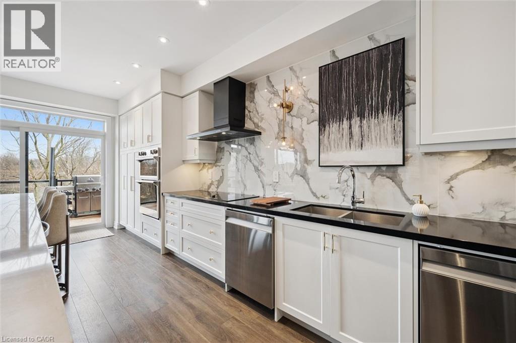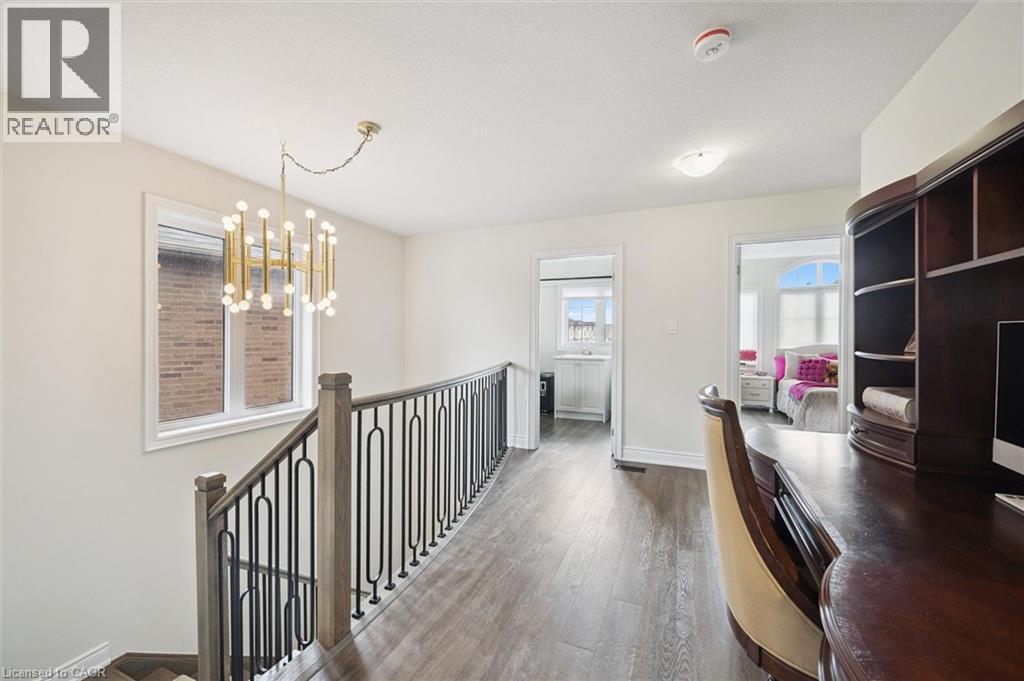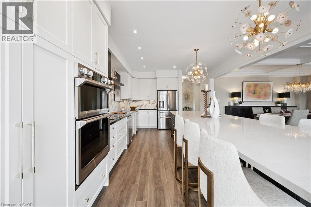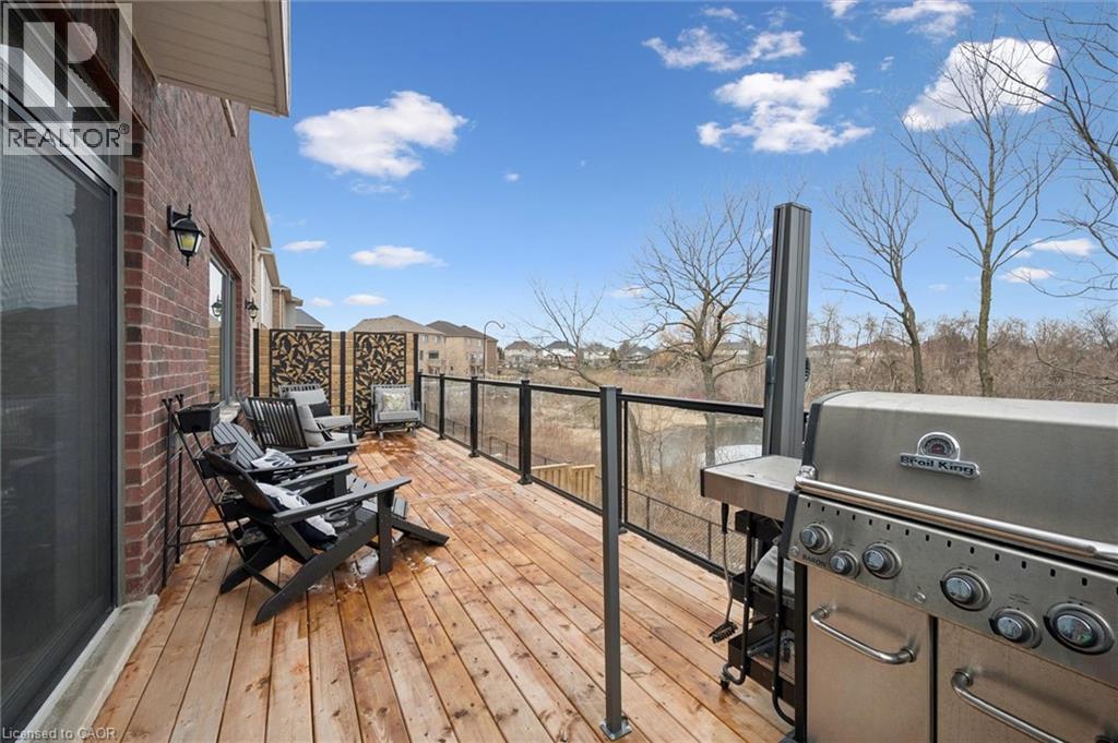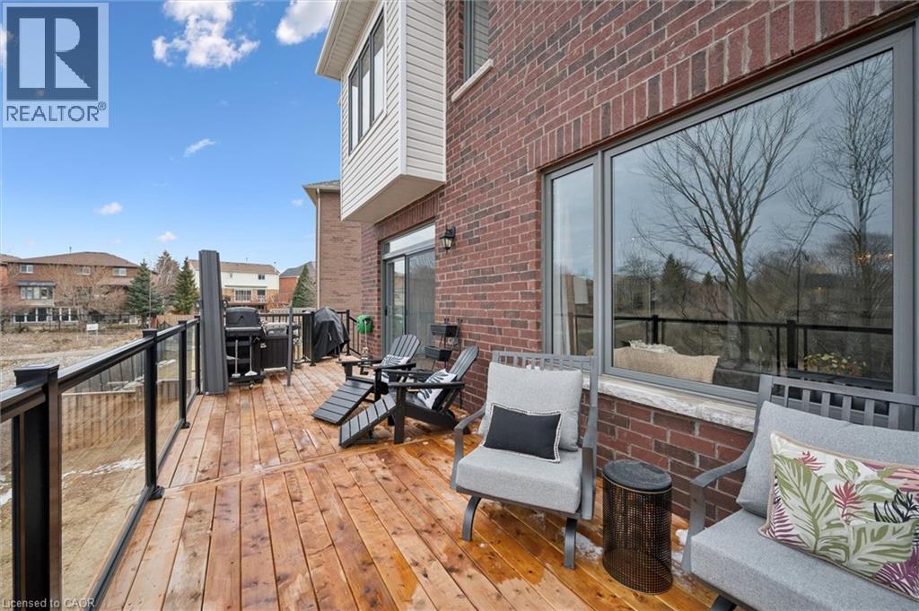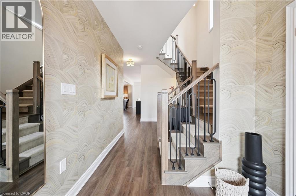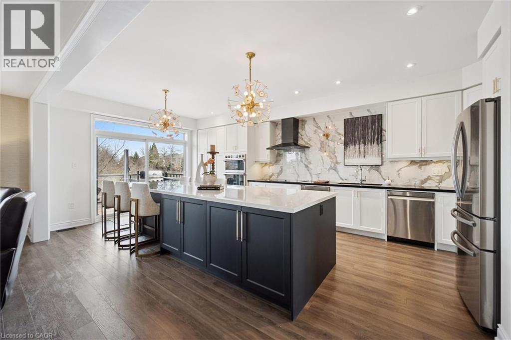 Welcome to 28 Garland Avenue in Cambridge, an exceptional residence in one of the area’s most sought-after new home communities. Backing onto the protected Saginaw Kettle Lake, this remarkable property offers views of the water and forest, with walking trails & nature right at your doorstep. Why wait for new construction when this extensively upgraded, designer-finished home is available now at a price that cannot be replicated. The striking all brick & stone exterior delivers timeless curb appeal, with a double garage & covered entry that opens into a bright, elegant foyer—perfect for welcoming guests. Garage entry has another closet & beautifully appointed powder room is accessed. The home showcases a seamless, carpet-free design & 9 foot ceilings, creating a warm & cohesive aesthetic. At the heart of the home is a stunning custom kitchen designed to impress, featuring an oversized island with seating for 6, wall oven, 2 dishwashers, a built-in cooktop, statement range hood, designer lighting & pantry. The open-concept liv/din areas are elevated by a dramatic coffered ceiling, offering the perfect setting for both everyday living & entertaining. Upstairs an iron staircase leads to a versatile landing ideal for a home office, along with a convenient second-floor laundry room. 4 spacious bedrooms include a bright front Bedrm, with its own 3-piece ensuite, and 2 additional bedrms connected by a 5-piece Jack and Jill bath with double sinks, & separate water closet. The primary suite is a true retreat, with a walk-in closet, a spa-inspired ensuite complete with a deep soaker tub overlooking greenspace, a glass shower, & dual quartz vanities. Step outside to a rear deck with glass railings, perfectly designed to preserve the uninterrupted natural views, along with a fully fenced yard for added privacy. The walkout lower level offers future potential with rough-ins for a bath, laundry, ideal for an in-law suite. A true opportunity for a better than new property! (id:64974)