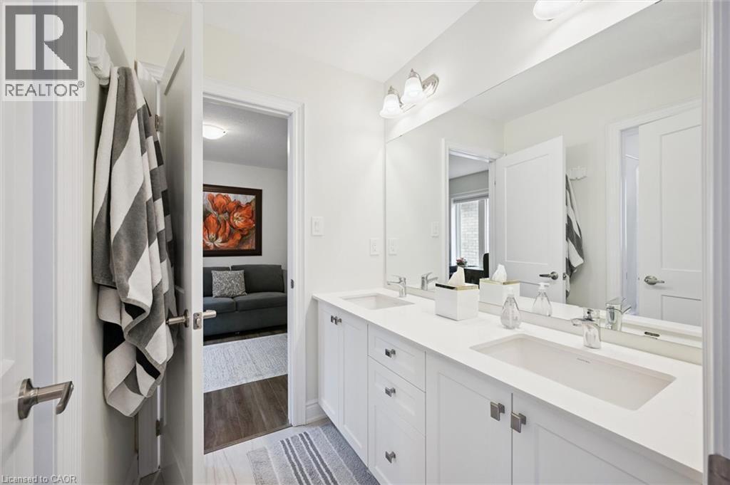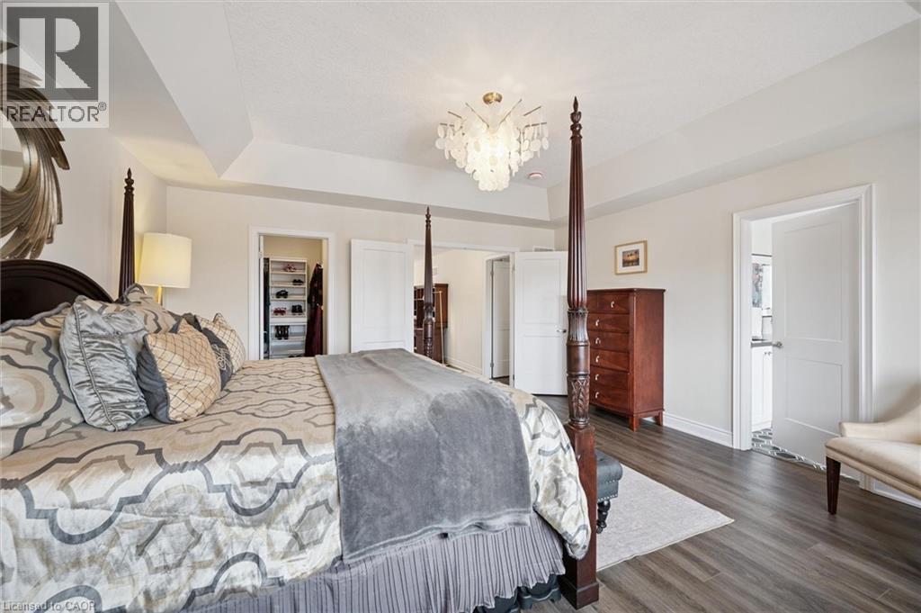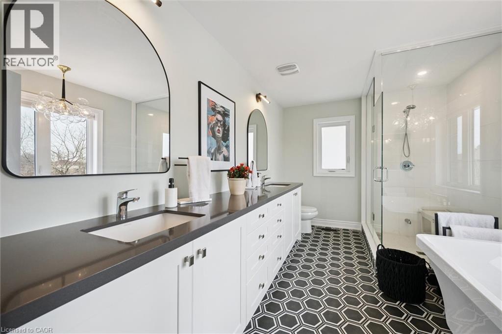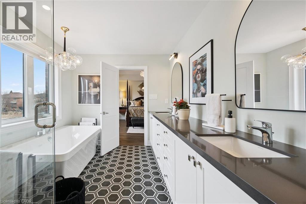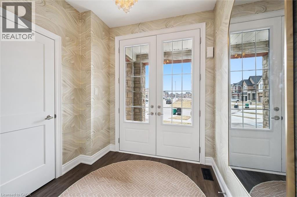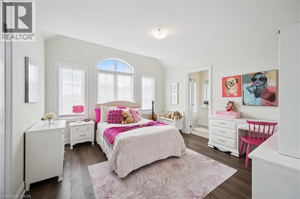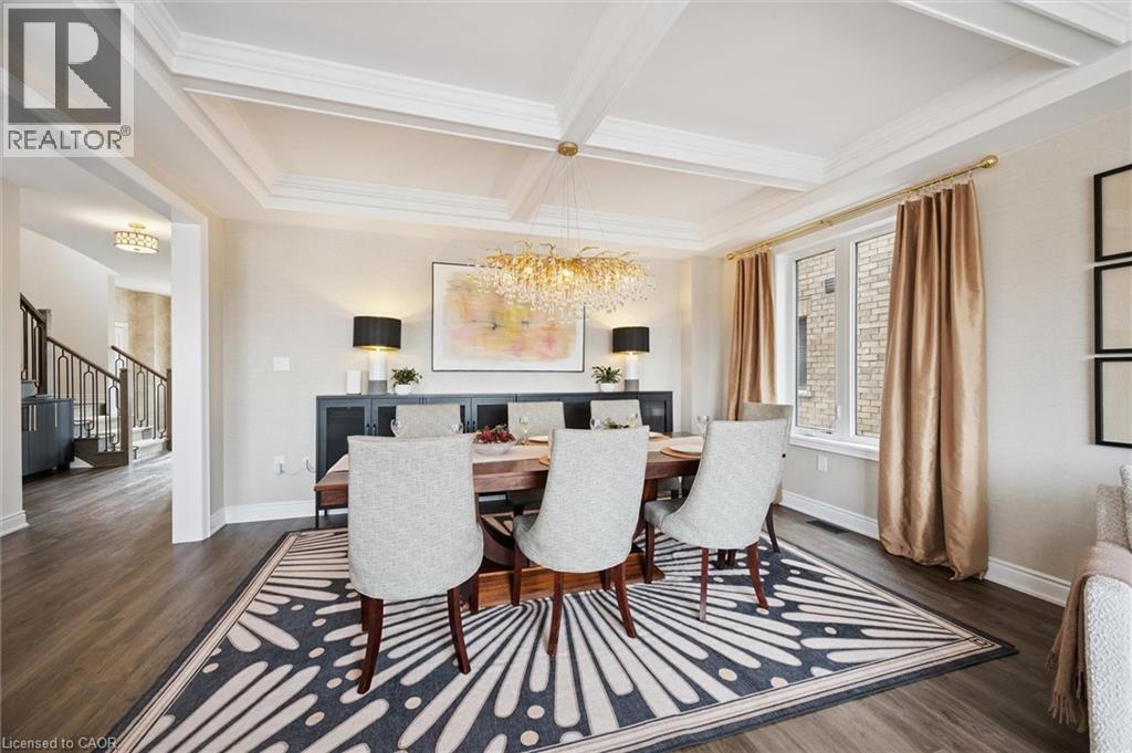 Welcome to 28 Garland Avenue in Cambridge, an exceptional residence in one of the area’s most sought-after new home communities. Backing onto the protected Saginaw Kettle Lake, this remarkable property offers views of the water and forest, with walking trails & nature right at your doorstep. Why wait for new construction when this extensively upgraded, designer-finished home is available now at a price that cannot be replicated. The striking all brick & stone exterior delivers timeless curb appeal, with a double garage & covered entry that opens into a bright, elegant foyer—perfect for welcoming guests. Garage entry has another closet & beautifully appointed powder room is accessed. The home showcases a seamless, carpet-free design & 9 foot ceilings, creating a warm & cohesive aesthetic. At the heart of the home is a stunning custom kitchen designed to impress, featuring an oversized island with seating for 6, wall oven, 2 dishwashers, a built-in cooktop, statement range hood, designer lighting & pantry. The open-concept liv/din areas are elevated by a dramatic coffered ceiling, offering the perfect setting for both everyday living & entertaining. Upstairs an iron staircase leads to a versatile landing ideal for a home office, along with a convenient second-floor laundry room. 4 spacious bedrooms include a bright front Bedrm, with its own 3-piece ensuite, and 2 additional bedrms connected by a 5-piece Jack and Jill bath with double sinks, & separate water closet. The primary suite is a true retreat, with a walk-in closet, a spa-inspired ensuite complete with a deep soaker tub overlooking greenspace, a glass shower, & dual quartz vanities. Step outside to a rear deck with glass railings, perfectly designed to preserve the uninterrupted natural views, along with a fully fenced yard for added privacy. The walkout lower level offers future potential with rough-ins for a bath, laundry, ideal for an in-law suite. A true opportunity for a better than new property! (id:64974)