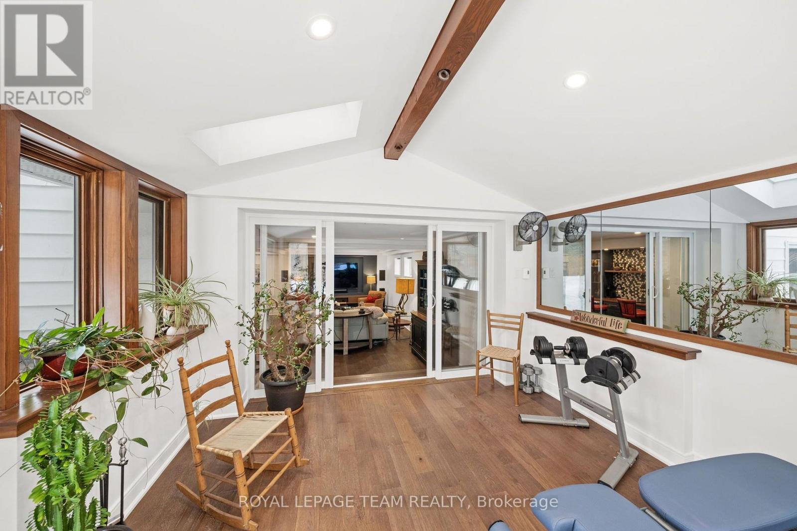Welcome to this exceptional 3+1 bdrm, 2.5-bath home situated between Manotick & Barrhaven on a highly sought-after, low-turnover street known for its strong sense of neighbourhood pride! Impressive 110' x 135' mature lot & just moments from the Rideau River, Rideau Valley Conservation Area, parklands & scenic trails, this property offers ~2476 sq.ft. of living space on all levels. The welcoming foyer features heated tile floors, character railings, & a charming window seat. The open concept main lvl showcases HW flrs, a bright living rm anchored by a stone-surround wood-burning FP (WETT certified in 2020), built-in shelving, & a functional kitchen w/black granite counters, white shaker cabinetry, SS appliances, breakfast bar, & adjoining dining area w/sliding doors to the deck. The primary bdrm offers a WIC and ensuite, while 2 additional bdrms & a powder room complete the main level. The fully renovated (2019) walkout LL is a showstopper, w/engineered hardwood, ceiling detail w/pot lights, surround sound ceiling speakers, & a spacious rec room designed for entertaining. A wet bar with cherry wood counters & beverage centre is fully plumbed for future kitchenette potential. The vaulted sunroom, currently used as an exercise room, provides walkout access to the backyard, while a modern 3-pc bath w/rain shower & a laundry rm both w/heated floors add comfort. Separate sitting room w/propane gas FP offers flexibility as a fourth bdrm, guest space, or in-law suite. The south facing fully-fenced backyard retreat is framed by mature trees & cedar hedges and features a two-tiered deck, hot tub, fire pit, parkour play structure, & expansive green space, making it the perfect family home for entertaining & everyday enjoyment. A secondary driveway is located on far side of property. A rare opportunity to own a truly one-of-a-kind property you won't want to miss! Offer presentation scheduled for 24hrs irrevoc. on all offers mandatory as per form 244 (id:64974)