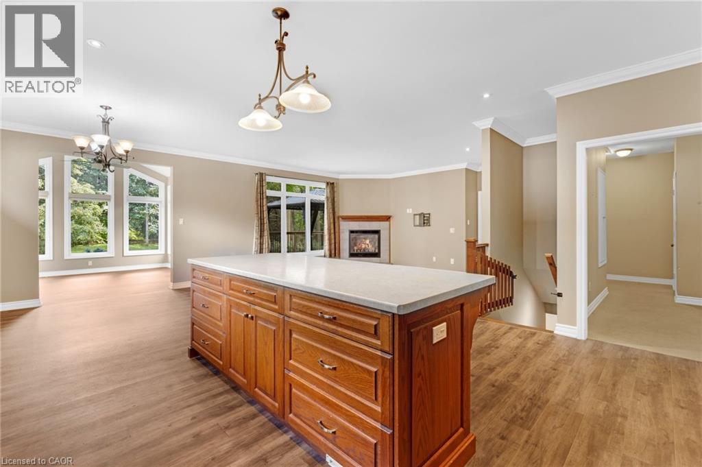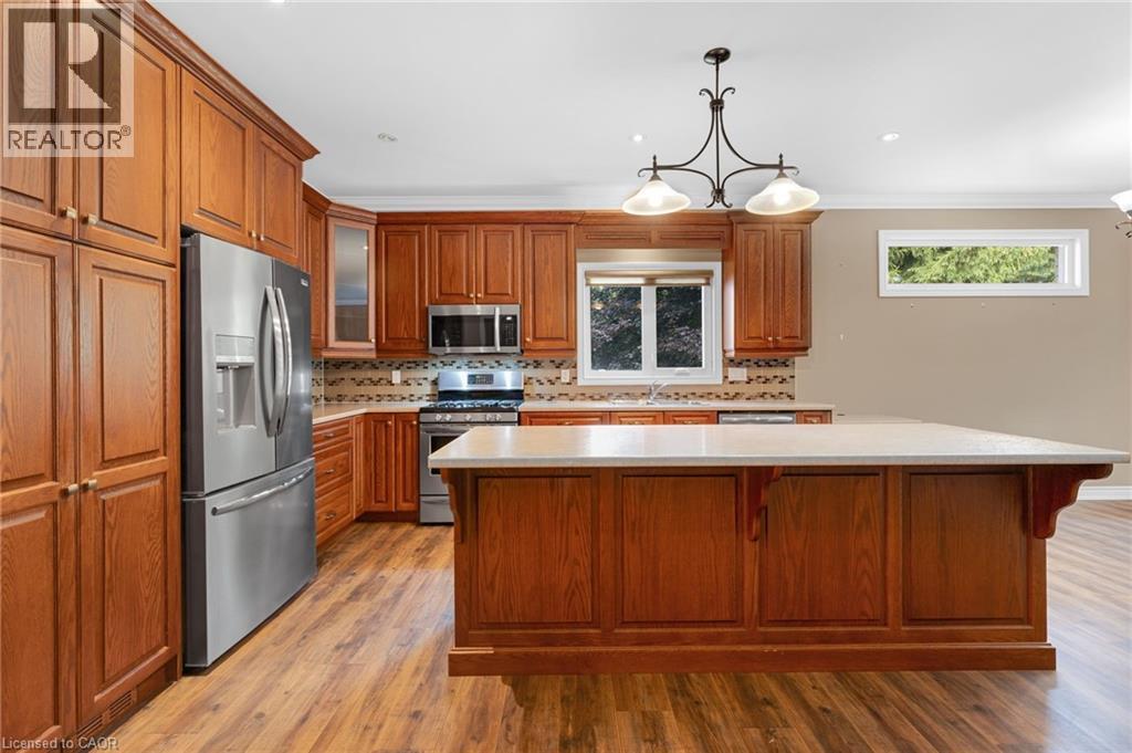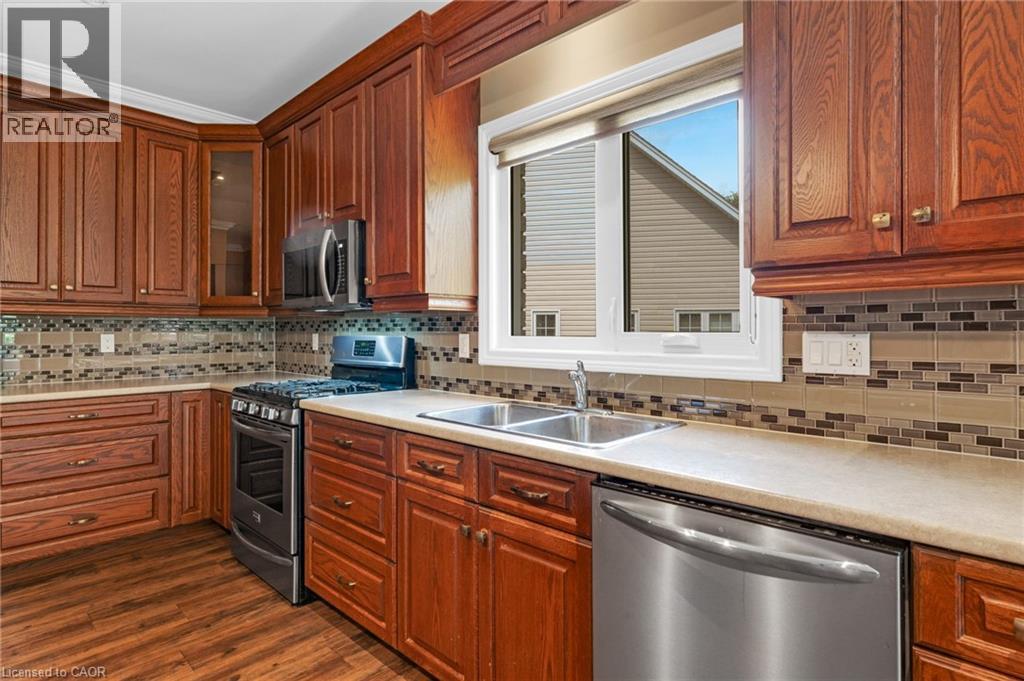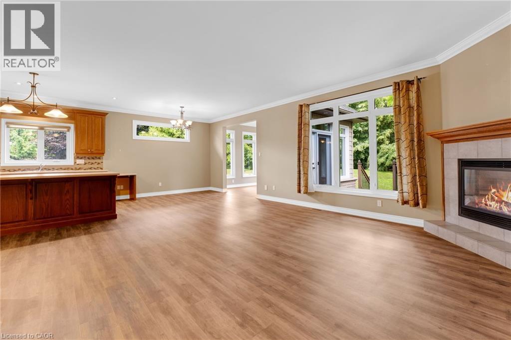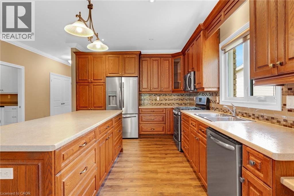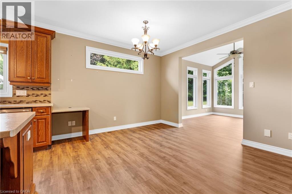 Discover the crown jewel in one of Dunnville’s quietest courts! Nestled on an unrivaled pie-shaped lot – the largest in the court- this stunning 12 year old bungalow is a rare gem. Spanning over 1700sf of elegant main floor living, this 2+2 bedroom home blends modern sophistication with country charm. The open concept main floor dazzles with 9’ ceilings, spotless vinyl flooring, and a show-stopping eat-in kitchen boasting an 8’ island – perfect venue for your culinary adventures! Flow effortlessly into the spacious living room where a cozy gas f/p sets the mood, or gather for your meal in the defined dining space! Main floor is serviced by a 4pc bath. Bonus: 12x12 four season sunroom crowned with cathedral ceiling offers an unparalleled view of your private nearly 0.5 acre lot! The main floor master suite, directly off the living room, features double closets & a luxurious 4pc ensuite. Venture downstairs to a fully finished basement that redefines lower-level living. With 9’ ceilings and oversized windows, this bright, airy space feels anything about ordinary. A massive rec room with a sleek kitchenette and fresh vinyl flooring sets the stage for entertainment, while two generous bedrooms shar a modern 3pc bath. The yard is irreplaceable! A large 13x21 deck overlooks a very private & serene setting with towering deciduous & evergreen trees & backs onto greenspace. You will be hard press to find a setting like this in town. Bonus: double attached garage, paved driveway with handsome soldier course, covered front porch, 8x12 shed, 200 AMPs, all brick, c/vac, +++! Where a rural setting meets town amenities, 28 Maplewood Court can be found to steal your heart. (id:64974)