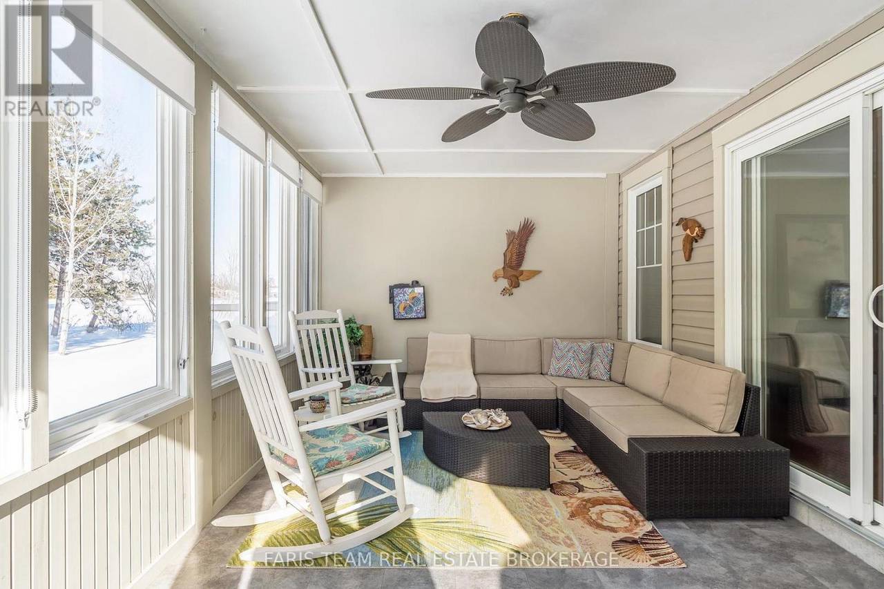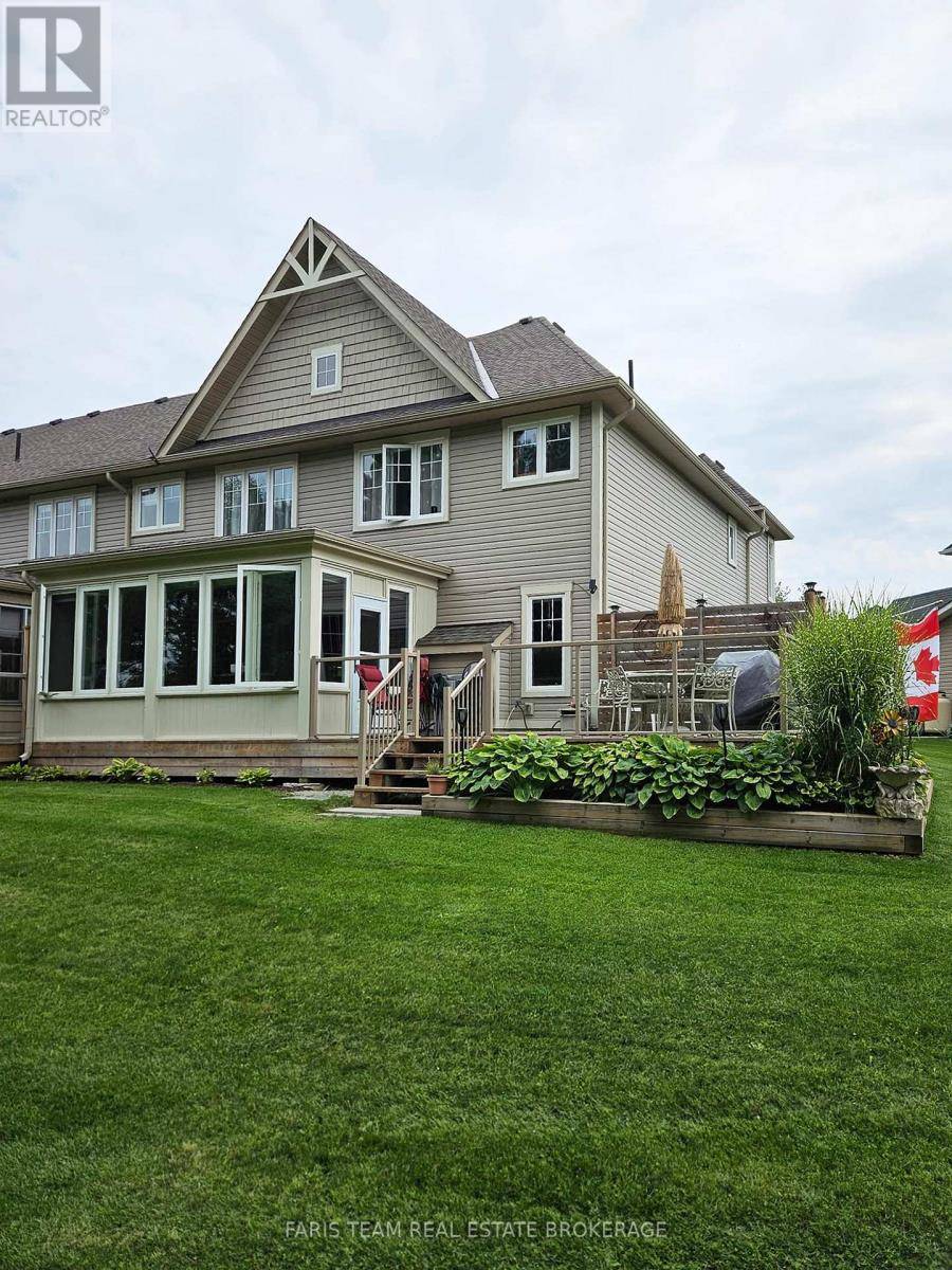 Top 5 Reasons You Will Love This Home: 1) End-unit freehold townhouse highlighted by a sun-filled, spacious main level with a large and stylish kitchen, separate dining room, living room, powder room, and three-season sunroom perfect for unwinding 2) This home backs onto the 17th and 18th holes of Oak Bay Golf Club, which can be observed from the 172 sqft three-season sunroom or large deck with unobstructed views, while still enjoying the privacy of mature trees 3) Enjoy the unbeatable convenience of being located only a few minutes from Highway 400 access, a short drive to Mount St. Louis Moonstone, 35 minutes to Barrie, and approximately 90 minutes to the GTA 4) For a small fee, enjoy access to a well-appointed outdoor pool with change rooms, conveniently connected to a 4-star dining restaurant, with marina access also available, and plans for additional amenities including more pools, tennis and pickleball courts anticipated in the future. 5) The generously sized primary bedroom features a large walk-in closet and a private ensuite, while two additional bedrooms share a convenient semi-ensuite bathroom, complemented by a fourth bedroom and a full bathroom, while on the main level the stunning kitchen offers an abundance of space, an eat-in area, and a crisp white backsplash, truly a dream for any home chef. 2,275 above grade sq.ft. (id:64974)