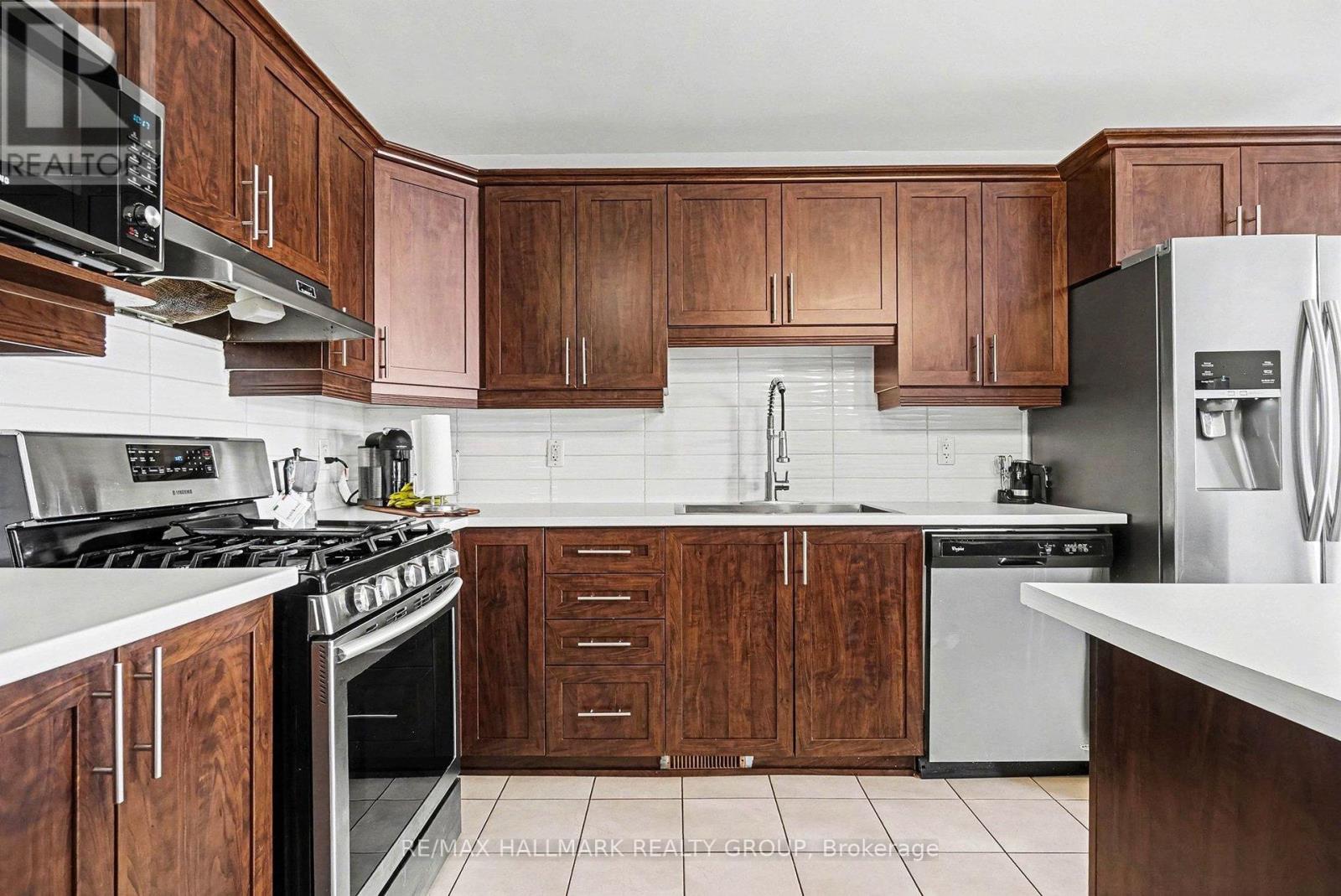 Welcome to 28 Nathalie Street, a beautifully maintained townhome located on a quiet cul-de-sac, offering exceptional privacy with no rear neighbours and a desirable walkout lower level.This home showcases true pride of ownership and features a modern, functional layout. The main level offers a spacious foyer leading into a bright, open-concept living and dining area with gleaming hardwood floors and large windows that fill the space with natural light. The kitchen is perfect for both everyday living and entertaining, featuring stainless steel appliances, rich cabinetry, a stylish backsplash, and an oversized island overlooking the main living space. Updated light fixtures in 2023 add a fresh, modern touch. A patio door off the dining room leads to a generous upper-level deck, ideal for relaxing or hosting. A convenient powder room completes this level.Upstairs, you will find a large primary bedroom with a walk-in closet, along with two additional spacious bedrooms. A well-appointed 5-piece cheater ensuite featuring a separate shower, soaker tub, and double sinks completes the second floor.The fully finished lower level offers a large recreation room with a walkout patio door leading to the private, fully fenced backyard with no rear neighbours. This level also includes a laundry area and a bathroom completed in 2019. The basement was fully repainted in March 2026, giving the space a fresh and updated feel.With inside access to the single-car garage and situated on an extremely quiet street, this home is just a short drive to Highway 17 and only 15 to 20 minutes to Orléans. Close to schools, parks, shopping, restaurants, and everyday amenities, this home offers the perfect blend of comfort, style, and convenience.Book your showing today. This home shows beautifully and is move-in ready! (id:64974)