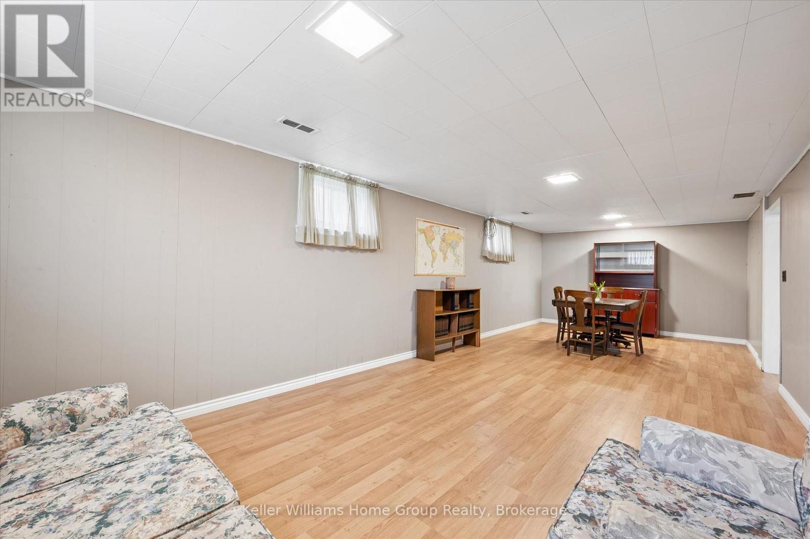 Welcome to 28 Normandy Drive, a solid brick bungalow that has been proudly cared for by the same family for over 30 years. Set on a quiet street directly across from Franchetto Park, this home offers a warm and functional layout with green space right at your doorstep. The main floor features three well sized bedrooms, a bright living area, and original hardwood floors that add character and timeless appeal. A four piece bathroom serves the main level, while the layout flows easily into the kitchen and everyday living spaces. Downstairs, the finished basement expands your options with a spacious rec room, an additional bedroom that works well for guests or a home office, and a convenient powder room. Outside, enjoy a private yard perfect for relaxing or entertaining, along with a detached garage offering great storage or hobby space. A well loved home in a great neighbourhood, steps to the park and ready for its next chapter. (id:64974)