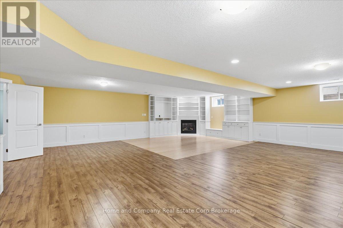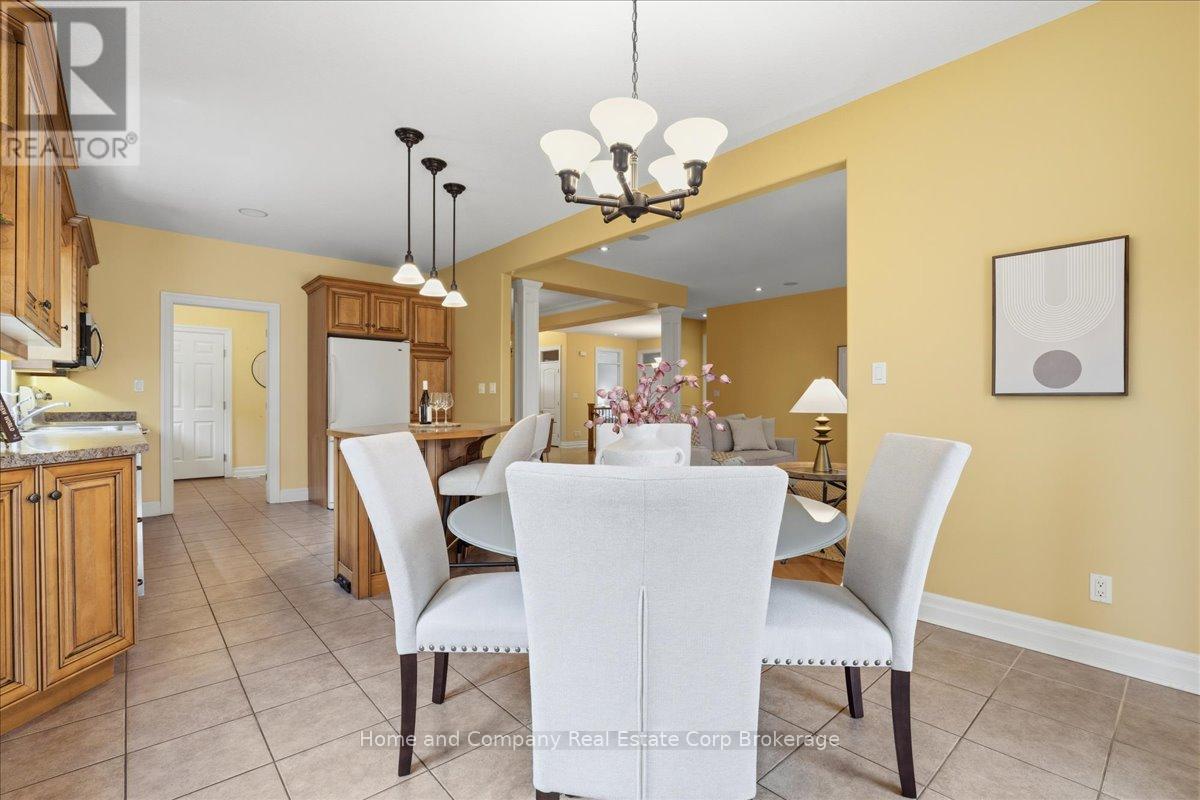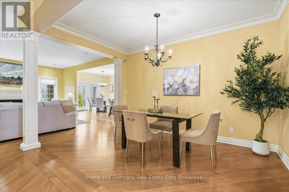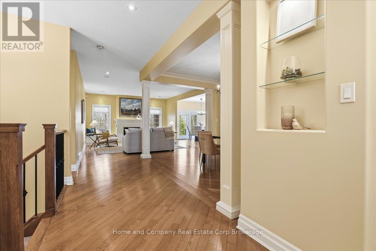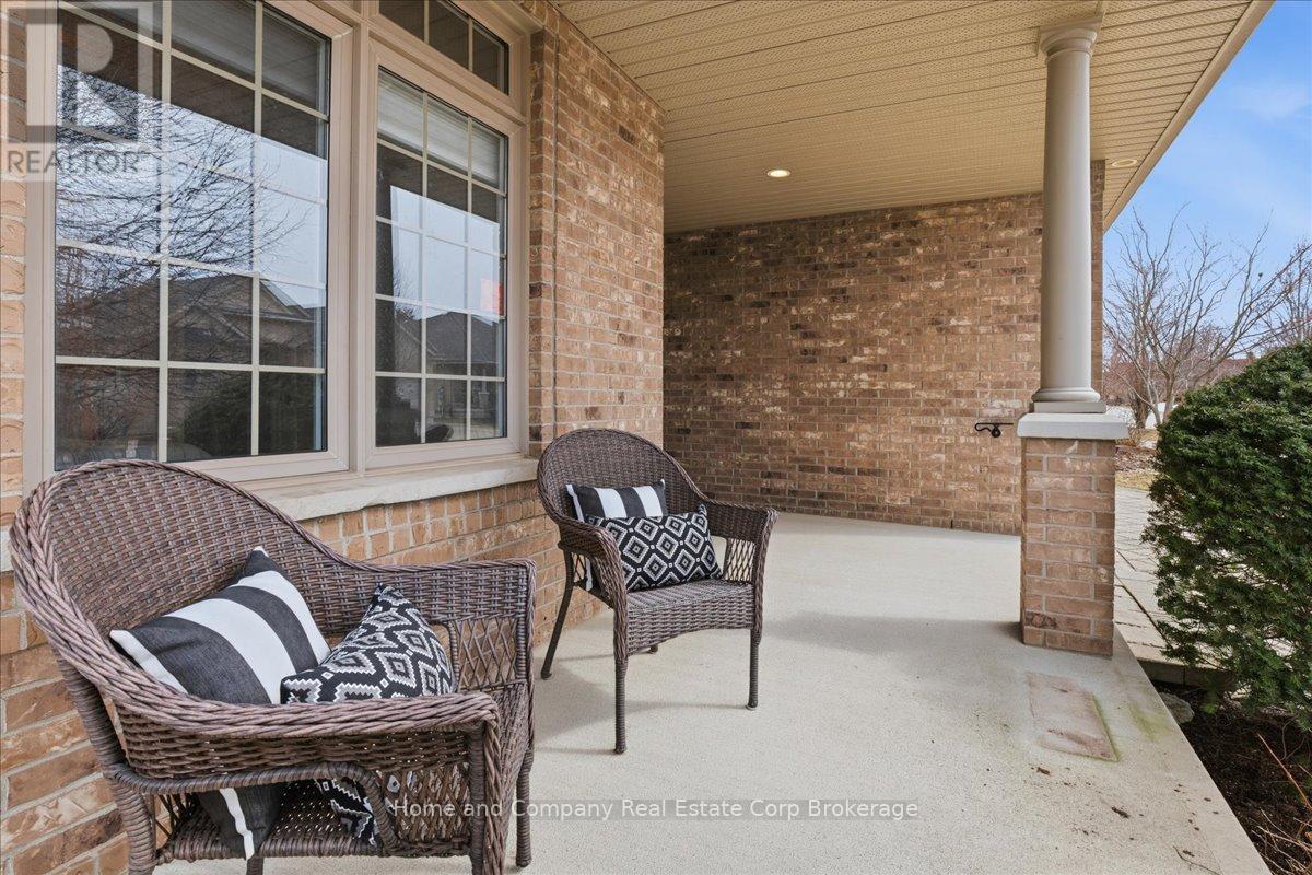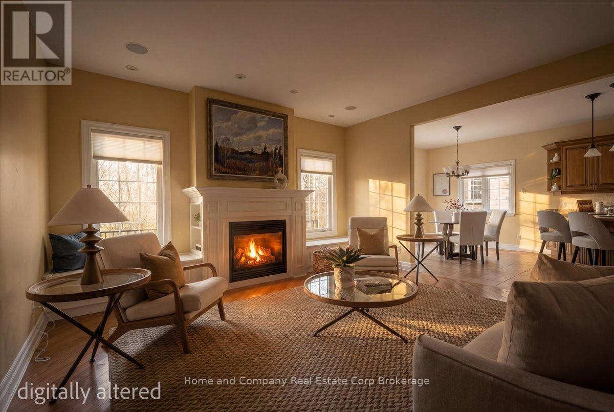 Welcome to 28 North Pointe Drive. This beautiful 2+1 bedroom, brick bungalow, with over 1,800 sq. ft. of main floor living space, is nestled in an exclusive enclave community, offering serene living with direct views of protected-mature green space. This home combines privacy, comfort, and an elevated lifestyle in one of the area's most sought after neighbourhoods. The heart of the home features open concept living, highlighted by a gas fireplace and built in speakers, creating an inviting space for everyday comfort and entertaining. A spacious dining area flows seamlessly from the eat in kitchen (with walk-out), providing plenty of room for gatherings. The primary bedroom offers a private retreat, complete with a 5 piece ensuite and a walk out to the covered rear porch, perfect for quiet mornings or evening relaxation. A second main floor bedroom and a 2 piece bath provide exceptional convenience for guests. The finished basement expands the living space with a large recreation room with gas fireplace, an additional bedroom, a 4 piece bathplus, and a versatile office/craft room. A convenient walk-up from the interior to the double-car garage adds practicality and ease of access. (id:64974)
