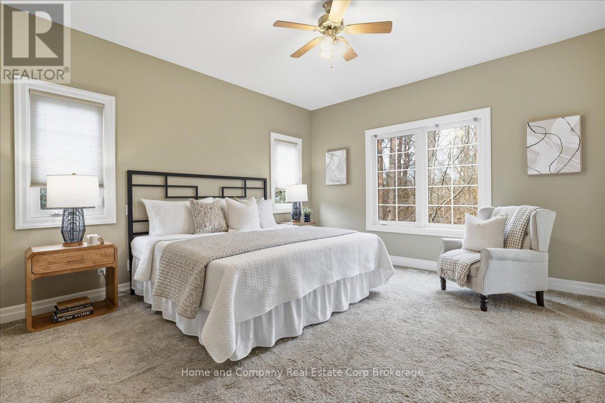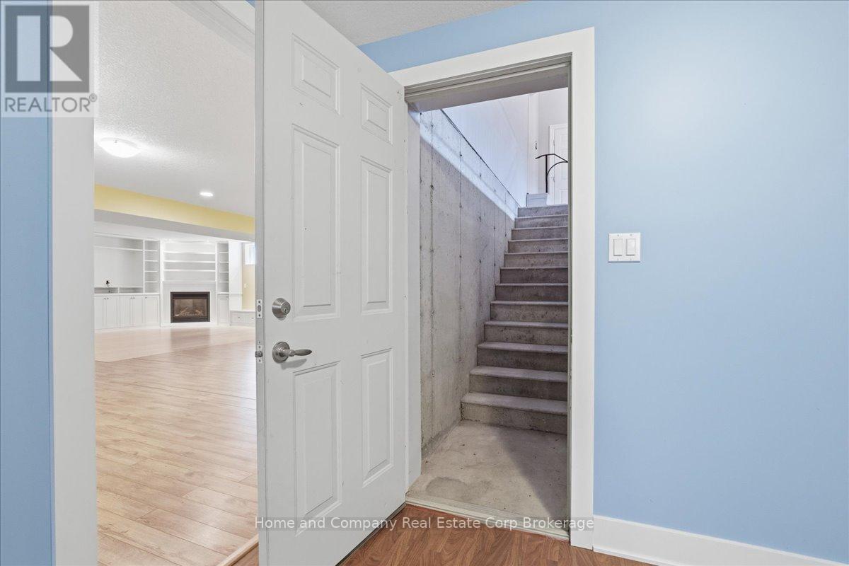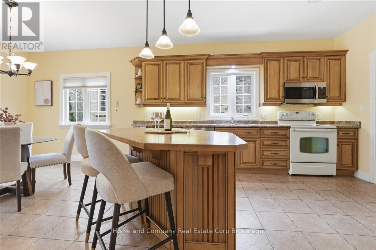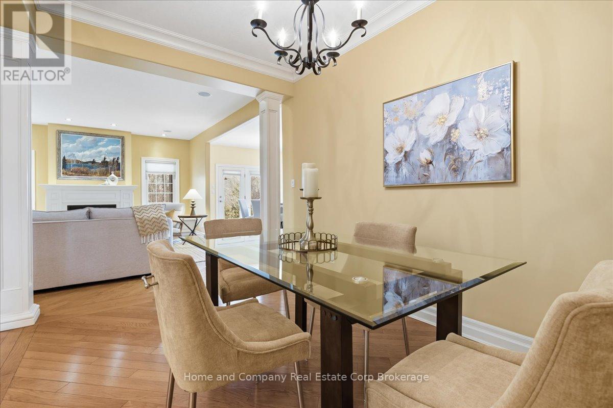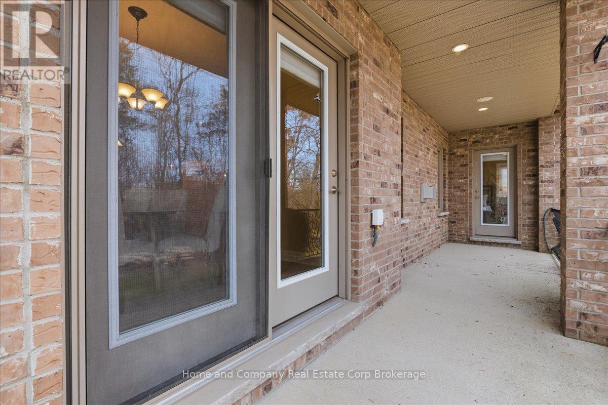 Welcome to 28 North Pointe Drive. This beautiful 2+1 bedroom, brick bungalow, with over 1,800 sq. ft. of main floor living space, is nestled in an exclusive enclave community, offering serene living with direct views of protected-mature green space. This home combines privacy, comfort, and an elevated lifestyle in one of the area's most sought after neighbourhoods. The heart of the home features open concept living, highlighted by a gas fireplace and built in speakers, creating an inviting space for everyday comfort and entertaining. A spacious dining area flows seamlessly from the eat in kitchen (with walk-out), providing plenty of room for gatherings. The primary bedroom offers a private retreat, complete with a 5 piece ensuite and a walk out to the covered rear porch, perfect for quiet mornings or evening relaxation. A second main floor bedroom and a 2 piece bath provide exceptional convenience for guests. The finished basement expands the living space with a large recreation room with gas fireplace, an additional bedroom, a 4 piece bathplus, and a versatile office/craft room. A convenient walk-up from the interior to the double-car garage adds practicality and ease of access. (id:64974)