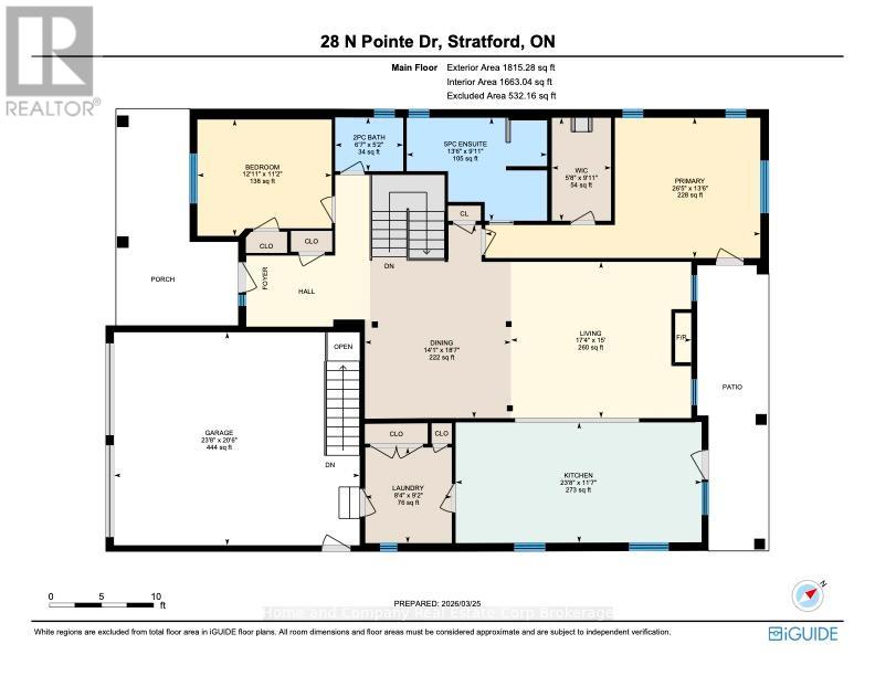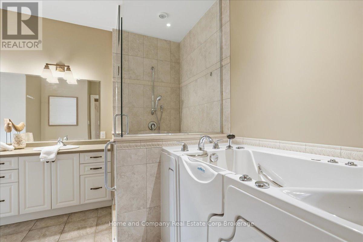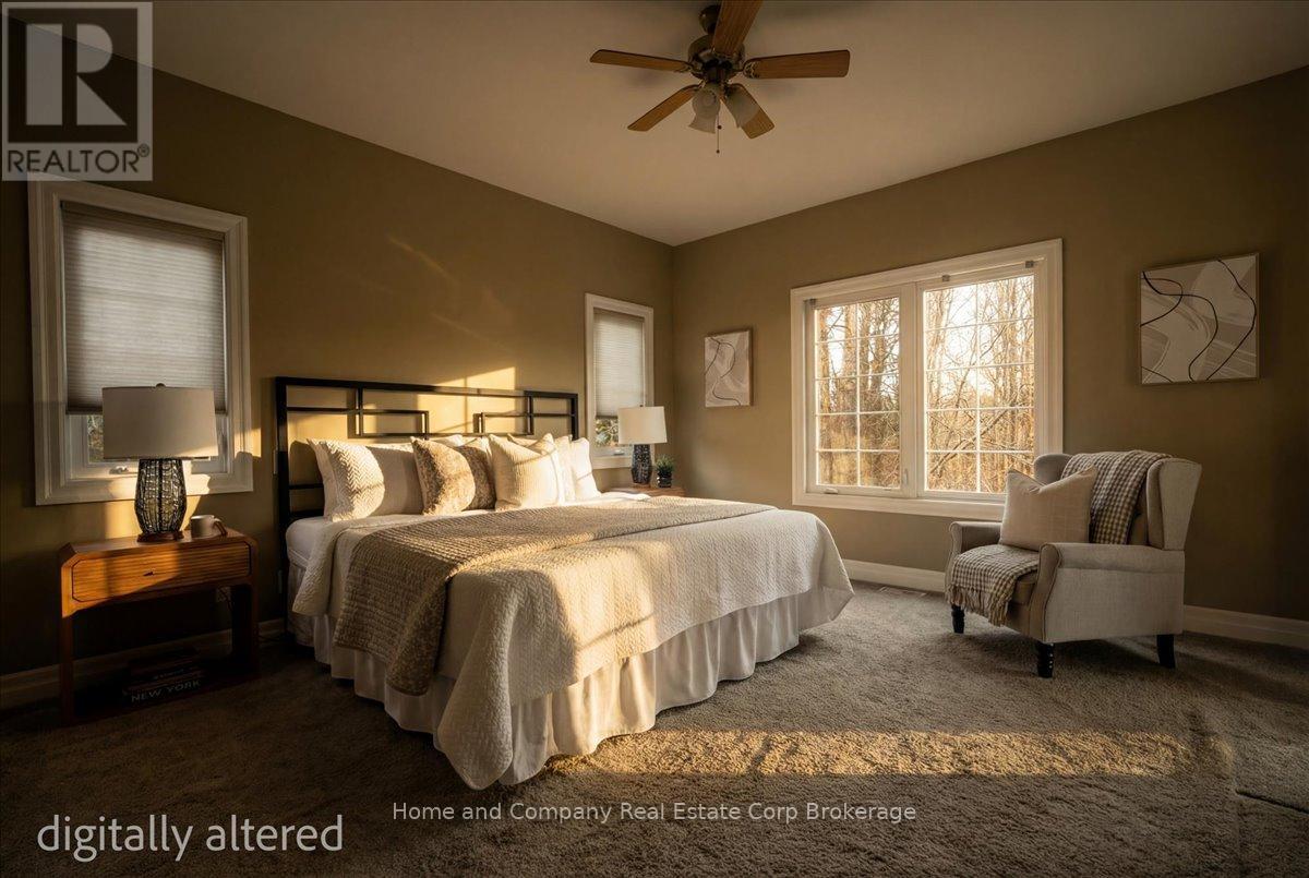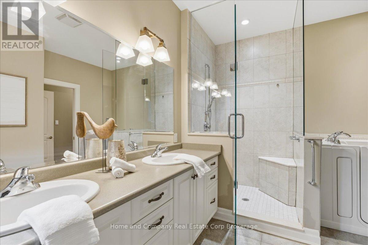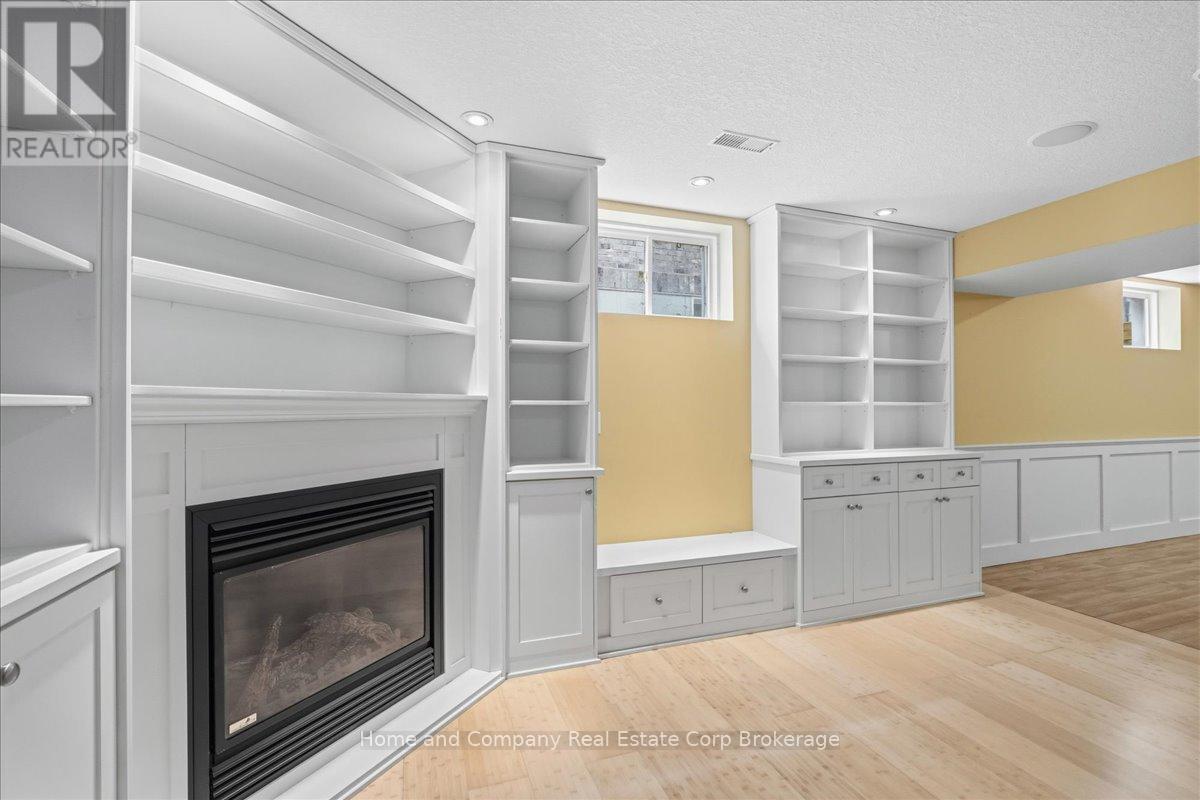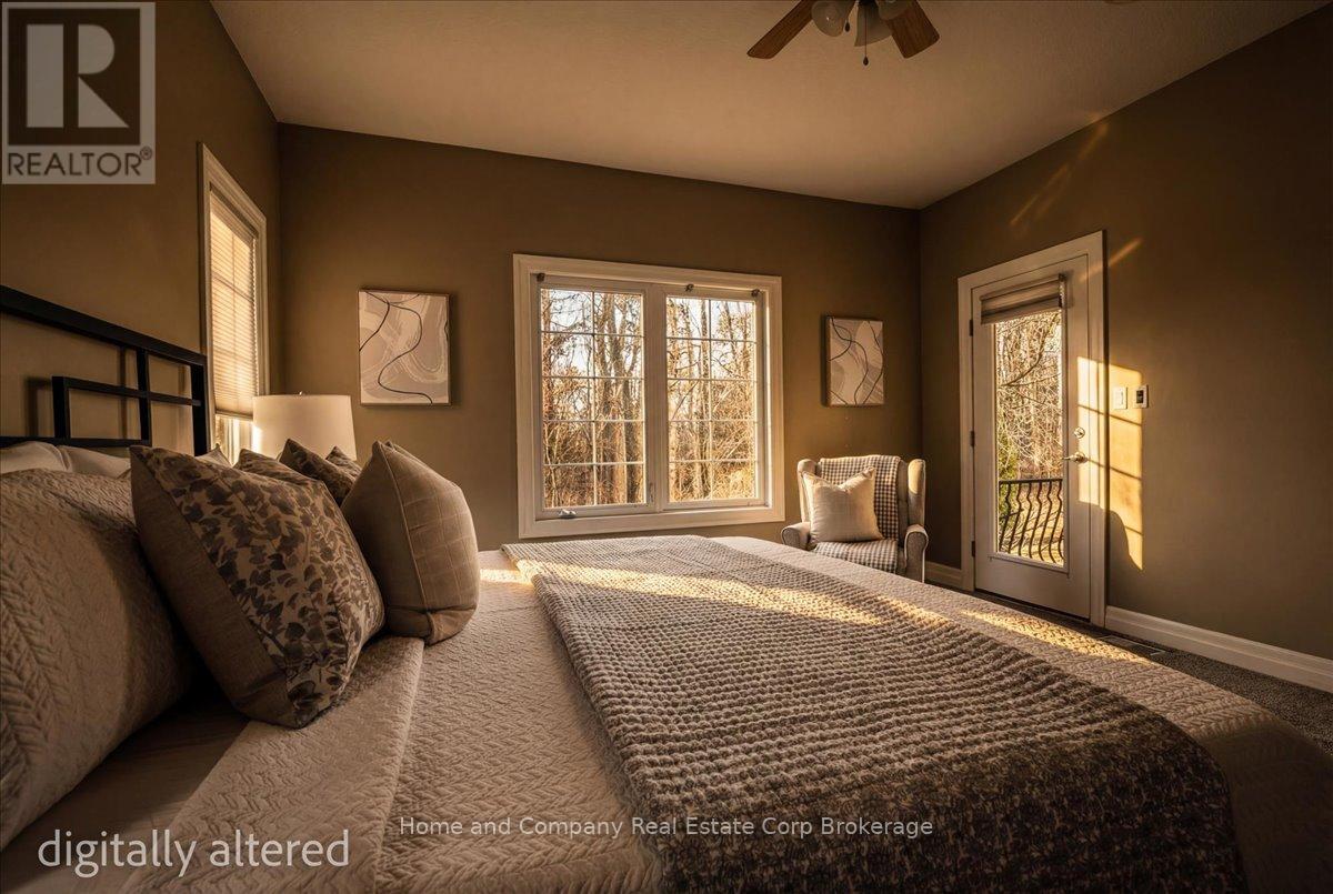 Welcome to 28 North Pointe Drive. This beautiful 2+1 bedroom, brick bungalow, with over 1,800 sq. ft. of main floor living space, is nestled in an exclusive enclave community, offering serene living with direct views of protected-mature green space. This home combines privacy, comfort, and an elevated lifestyle in one of the area's most sought after neighbourhoods. The heart of the home features open concept living, highlighted by a gas fireplace and built in speakers, creating an inviting space for everyday comfort and entertaining. A spacious dining area flows seamlessly from the eat in kitchen (with walk-out), providing plenty of room for gatherings. The primary bedroom offers a private retreat, complete with a 5 piece ensuite and a walk out to the covered rear porch, perfect for quiet mornings or evening relaxation. A second main floor bedroom and a 2 piece bath provide exceptional convenience for guests. The finished basement expands the living space with a large recreation room with gas fireplace, an additional bedroom, a 4 piece bathplus, and a versatile office/craft room. A convenient walk-up from the interior to the double-car garage adds practicality and ease of access. (id:64974)