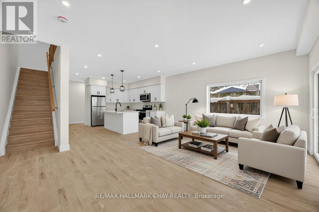 Welcome to a masterpiece of modern luxury living, where every detail has been meticulously crafted to redefine sophistication in Orillia's charming and growing community. This stunning new-build semi-detached residence, completed in 2026 with the finest artisanal touches, offers an unparalleled blend of opulent design, expansive spaces, and cutting-edge amenities. Perfect for discerning families or professionals seeking a sanctuary of refinement amid the beauty of Lake Couchiching and the vibrant local lifestyle, this home is a testament to architectural brilliance and timeless style. The chef's kitchen is a showstopper: dazzling quartz countertops premium appliances, custom dove-gray shaker cabinetry with Matte black hardware s. Quartz continues throughout every bathroom, - no compromises, only perfection. Soaring 9-foot ceilings, walls of oversized windows, and ultra-luxury wide-plank vinyl plank flooring flow seamlessly throughout every level of this home - the ultimate fusion of timeless beauty and bulletproof durability. The upper level of this exquisite home is a true sanctuary of space and sophistication, featuring three generously oversized bedrooms that elevate everyday living to extraordinary comfort. The primary suite is a breathtaking retreat a sprawling custom walk-in closet boasting bespoke built-ins. The luxurious en-suite bathroom feels like a personal spa, with glass shower and dual quartz-topped vanities. This is more than a home - it's a legacy of luxury, built to inspire and endure in one of Ontario's most appealing communities. Schedule your private viewing today and elevate your lifestyle to extraordinary heights! (id:64974)