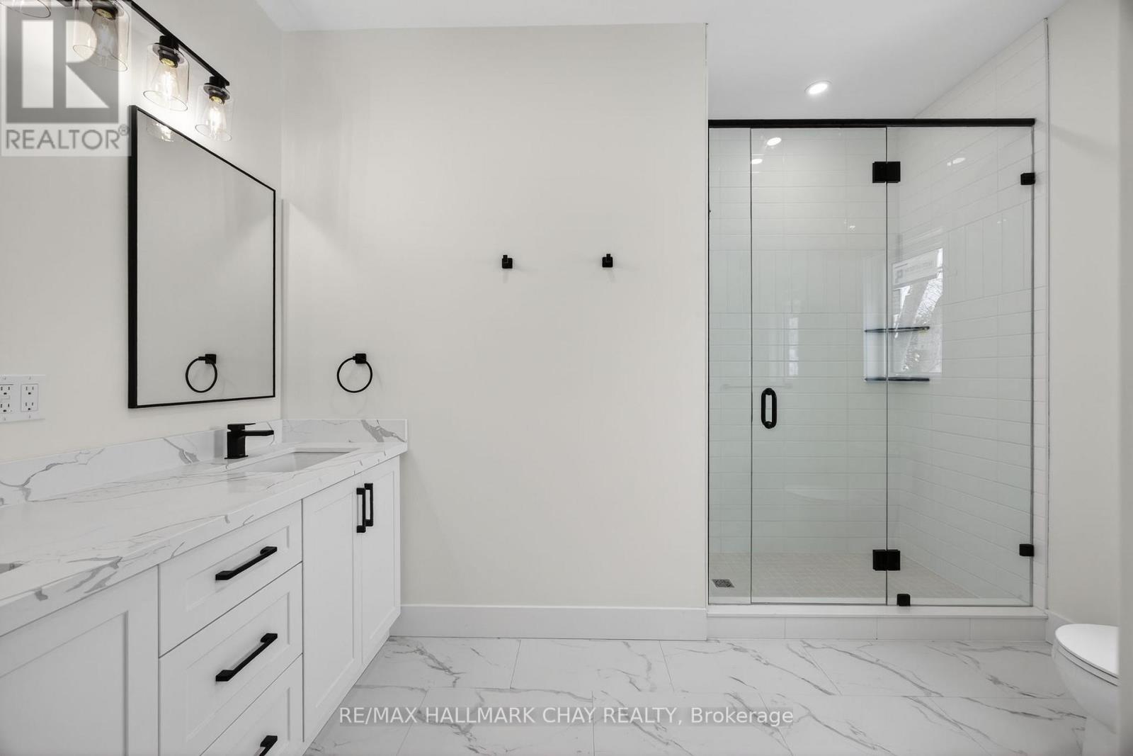 Welcome to a masterpiece of modern luxury living, where every detail has been meticulously crafted to redefine sophistication in Orillia's charming and growing community. This stunning new-build semi-detached residence, completed in 2026 with the finest artisanal touches, offers an unparalleled blend of opulent design, expansive spaces, and cutting-edge amenities. Perfect for discerning families or professionals seeking a sanctuary of refinement amid the beauty of Lake Couchiching and the vibrant local lifestyle, this home is a testament to architectural brilliance and timeless style. The chef's kitchen is a showstopper: dazzling quartz countertops premium appliances, custom dove-gray shaker cabinetry with Matte black hardware s. Quartz continues throughout every bathroom, - no compromises, only perfection. Soaring 9-foot ceilings, walls of oversized windows, and ultra-luxury wide-plank vinyl plank flooring flow seamlessly throughout every level of this home - the ultimate fusion of timeless beauty and bulletproof durability. The upper level of this exquisite home is a true sanctuary of space and sophistication, featuring three generously oversized bedrooms that elevate everyday living to extraordinary comfort. The primary suite is a breathtaking retreat a sprawling custom walk-in closet boasting bespoke built-ins. The luxurious en-suite bathroom feels like a personal spa, with glass shower and dual quartz-topped vanities. This is more than a home - it's a legacy of luxury, built to inspire and endure in one of Ontario's most appealing communities. Schedule your private viewing today and elevate your lifestyle to extraordinary heights! (id:64974)