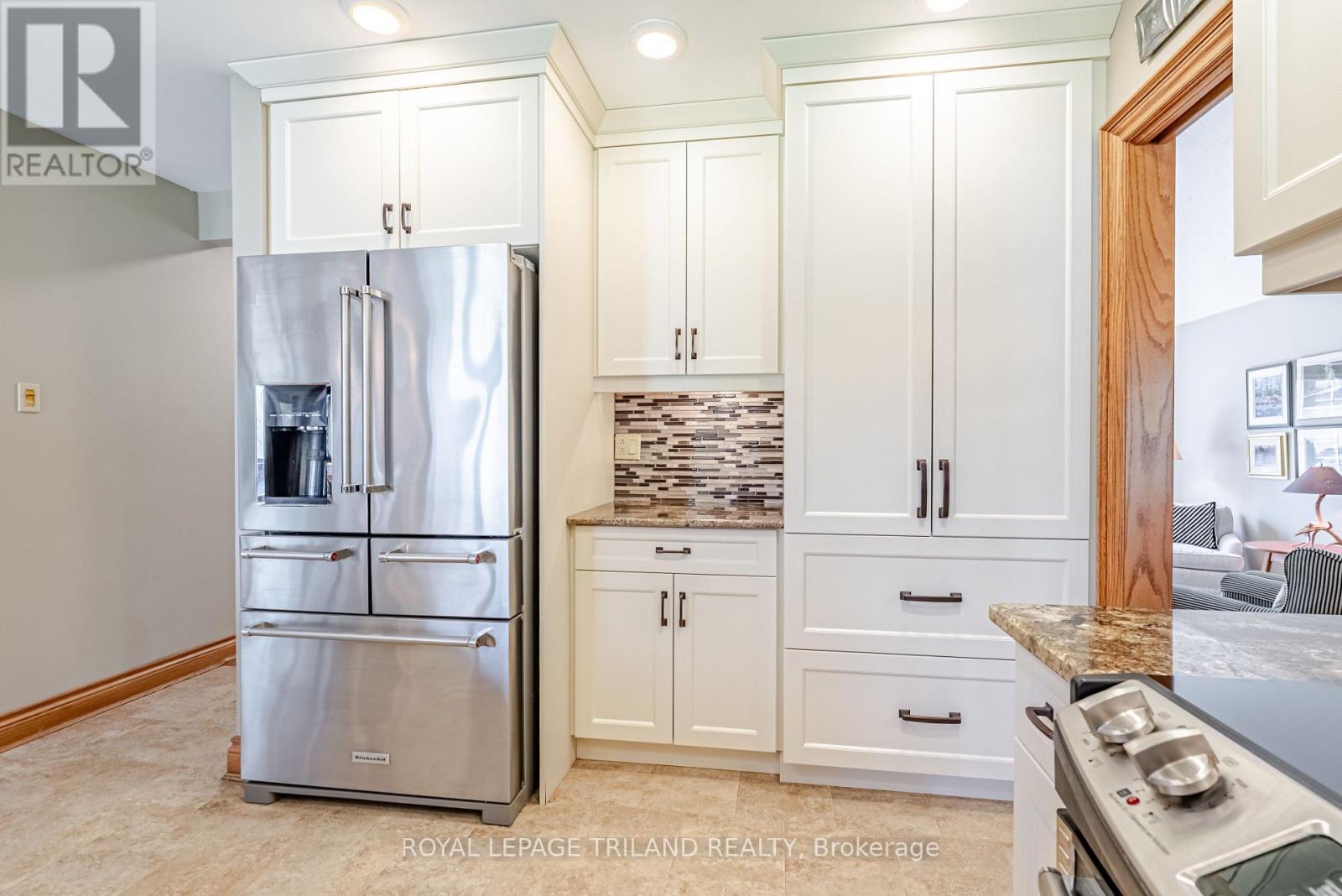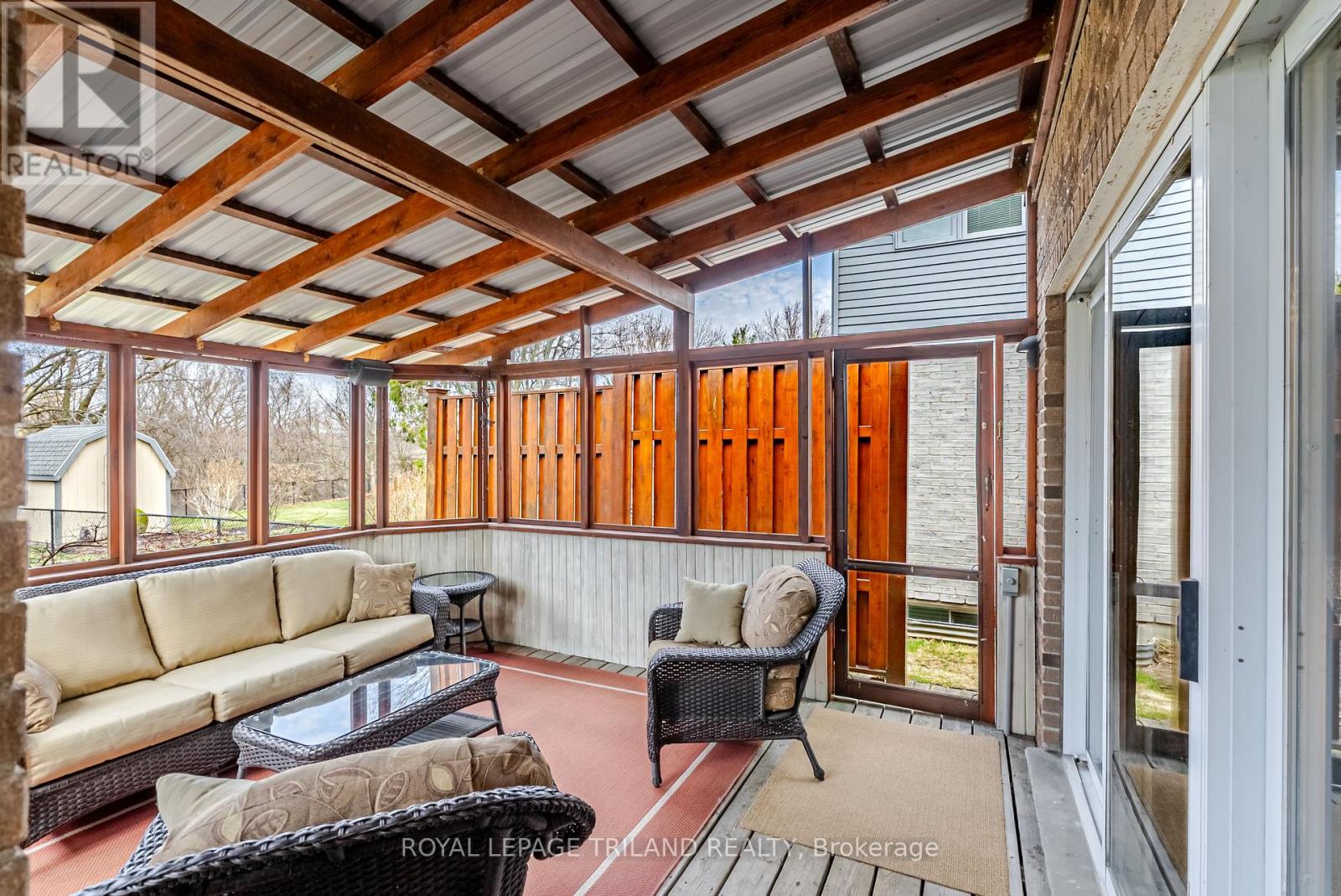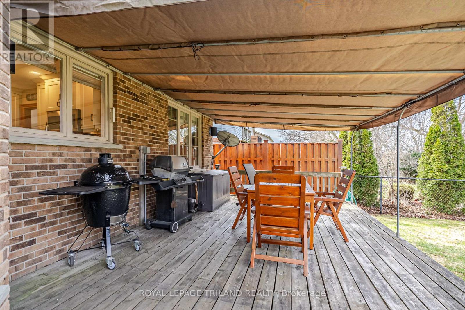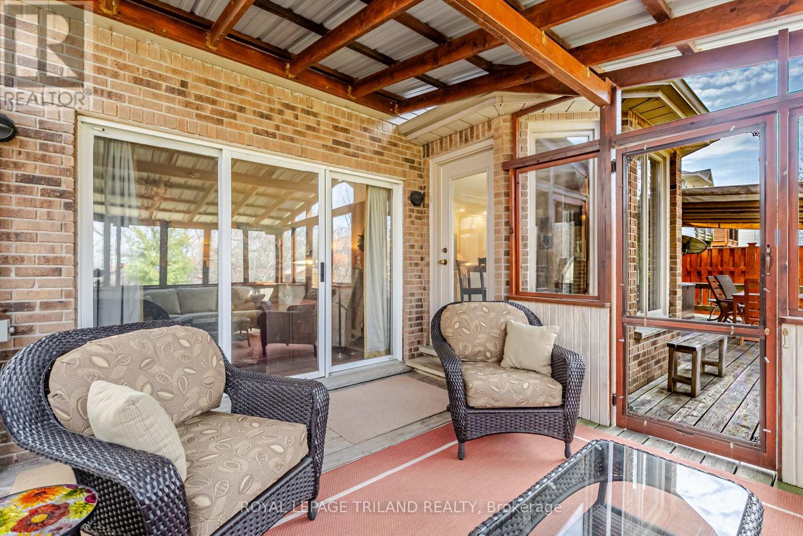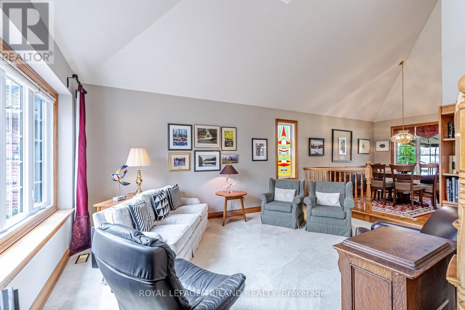 Welcome to this stunning family home set on a beautiful ravine lot in a sought-after neighbourhood! Perfectly located just a short walk to the East Elgin Community Complex and schools, this home offers the ideal blend of space, comfort, and convenience. Step inside and you're immediately welcomed by a bright foyer featuring impressive double oak staircases leading to both the upper and lower levels. The main floor offers a spacious living and dining area with vaulted ceilings and a large skylight, filling the space with natural light and creating a warm, inviting atmosphere. The updated kitchen is truly the heart of the home, complete with an eating area and direct access to your outdoor living space. Step out onto the large deck, featuring both a screened-in area and an open section with a canopy-perfect for enjoying morning coffee or hosting friends while taking in the peaceful views of mature trees and the ravine. Just off the kitchen, the cozy family room with a wood-burning fireplace and patio door access makes this space perfect for everyday living. Upstairs, you'll find a spacious primary suite with a dedicated closet area and a beautifully updated 5-piece ensuite. Two additional bedrooms and a bright loft area offer flexibility for family, guests, or a home office-all enhanced by large windows and natural light throughout. The lower level is the perfect place for additional space for the family with, an additional bathroom, and even a sauna-your own private retreat at home. Set in a family-friendly neighbourhood and surrounded by nature, this home offers incredible indoor and outdoor living space. This is the kind of home where memories are made-don't miss your chance to make it yours. (id:64974)