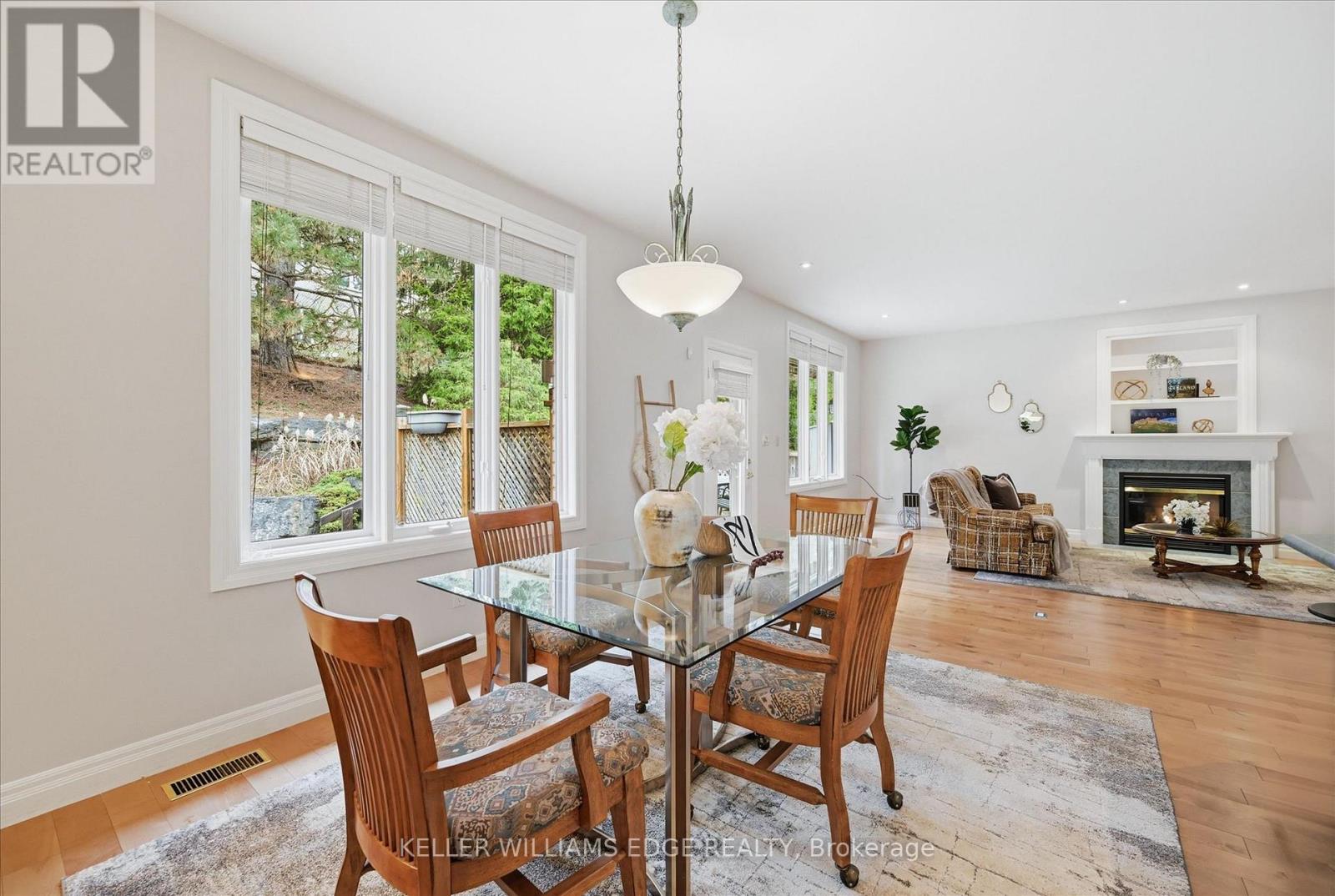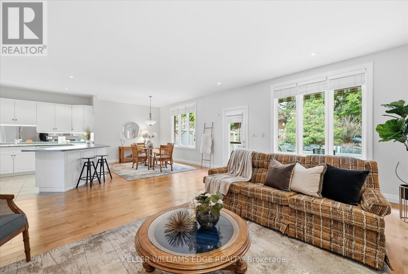 Huge Windows, Natural Light, Open Spaces, High Ceilings. This is a well-designed, well built great option for main floor living. Enjoy entertaining in this open design living room, dining and kitchen overlooking the private back deck with automated awning. Two full baths on the main floor, one in the primary and one conveniently located off the hall, next to the dedicated laundry room. The high ceilings and solar tube are welcoming and bright. The single garage enters directly into the generous hall with a selection of closets. Concrete drive accomodates provides two additional parking spaces. Located minutes to downtown Dundas and Ancaster, homes in this neighbourhood rarely come to market. (id:64974)