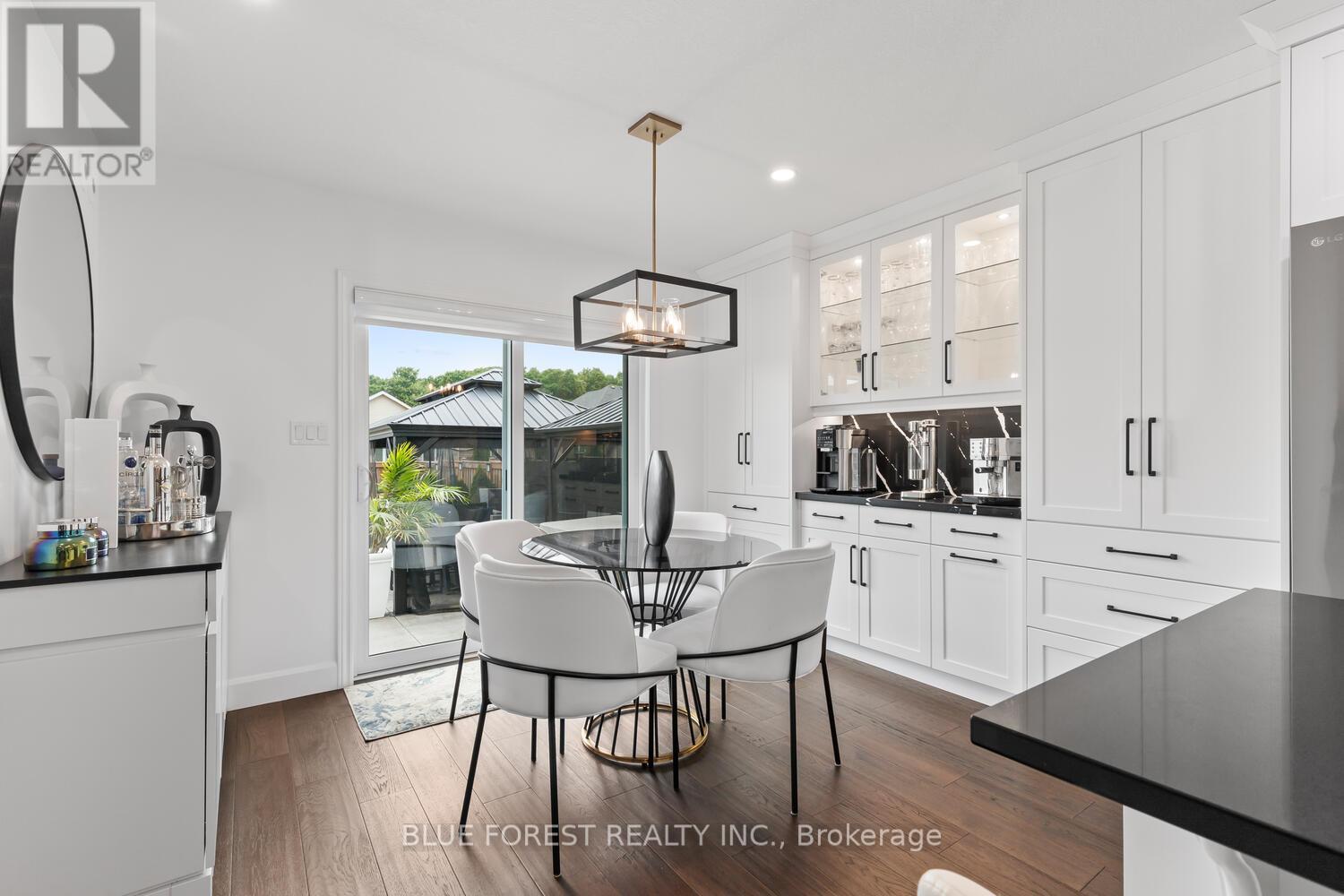 Welcome to this stunning bungalow in the highly desirable Millers Pond community, offering the perfect balance of modern updates, thoughtful design, and family-friendly living. The main floor features three generously sized bedrooms, including a beautiful primary suite complete with an upgraded walk-in closet and a luxurious four-piece ensuite. The bright and stylish kitchen is truly the heart of the home, showcasing quartz countertops, a large island with bar seating, ceiling-height cabinetry, a walk-in pantry, a sleek gas stove, and an upgraded range hood-perfect for both everyday living and entertaining. Downstairs, the fully finished basement provides exceptional additional living space with two more bedrooms, a spacious recreation room, a four-piece bathroom, and a dedicated media lounge with a wet bar-an ideal setup for movie nights or hosting guests. Step outside from the dining area through the patio doors and discover your own private backyard retreat. The beautifully landscaped yard features an expansive stamped concrete patio, a storage shed, and a fully fenced yard-perfect for kids, pets, and outdoor gatherings. Additional highlights include convenient main-floor laundry, a double-car garage with a concrete driveway, and ample exterior lighting. With quality upgrades and pride of ownership evident throughout, this home is a fantastic opportunity to join the welcoming Millers Pond community. (id:64974)