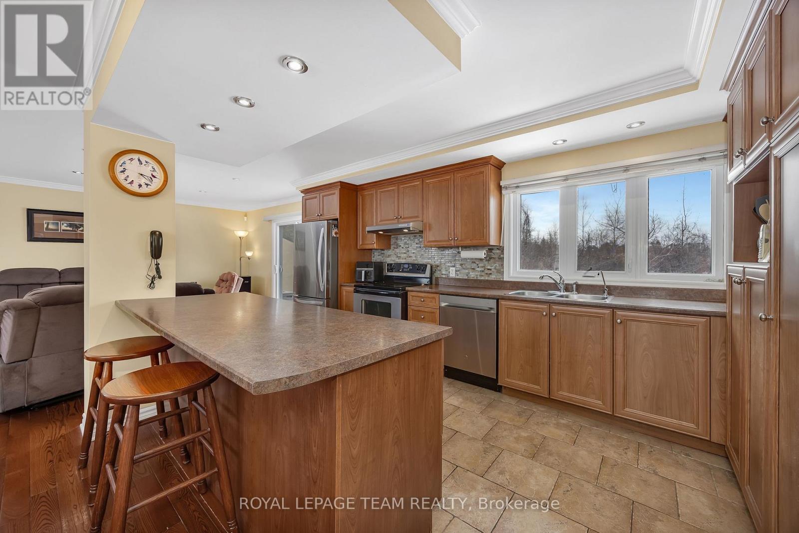 SO many uses for this presently zoned R1 property with such great visibility in the heart of Kemptville. The beautifully upgraded, 4 bedroom, 2 bathroom bungalow w/ finished basement sits on a large (almost half acre) treed & private lot across from the Municipality. NO REAR NEIGHBORS! Entering the foyer you will find gleaming hardwood & tile flooring on the main level. The open concept gourmet kitchen offers numerous counters & cupboards, crown moldings, flat ceilings, pot lights, a large island w/additional cupboards, stainless steel appliances, double sinks w/reverse osmosis water, & a large picture window overlooking your private, treed, backyard. Open to the dining area & living room which boasts a cozy gas fireplace & patio doors to your back deck! The primary bedroom as well as 2 additional bedrooms on this level are generously sized. The main floor 4 piece 'spa like' bathroom includes a soaker tub, walk in shower w/ built-in seat, large vanity & dual flush toilet. There is a back door which leads to your backyard and also provides a secondary entrance to your professionally finished basement which includes a very spacious family room, 4th bedroom, 2 piece bathroom, laundry room and plenty of storage space! The attached single car garage (approx. 19'7" x 19''10") has an auto garage door opener & Keypad with access to the backyard. The paved driveway accommodates an additional 5 vehicles. Perfect property for a home based business, an AirB&B, and also municipal sanctioned COMMERCIAL USE! Possibilities Galore! NUMEROUS UPGRADES include: Furnace approx. 2024, Natural Gas HWT approx. 2024, Central A/C approx. 6 years ago, Water Treatment approx. 2024, New Septic System approx. 8-10 years old (Municipal Sewer Hook Up Possible at a Minimal Cost), Rear Shingles approx. 1-2 years ago, Front Shingles approx. 8-10 years ago, Home alarm system is owned & monitored. RENTAL FEES (approx.) Hot Water Tank $38.46/month, Water Softener $25.99, Iron Filter $36.9 (id:64974)