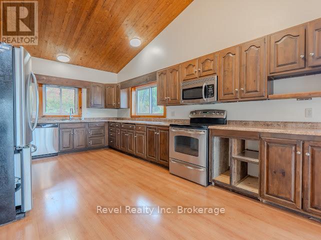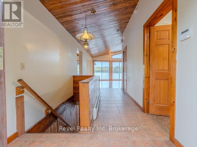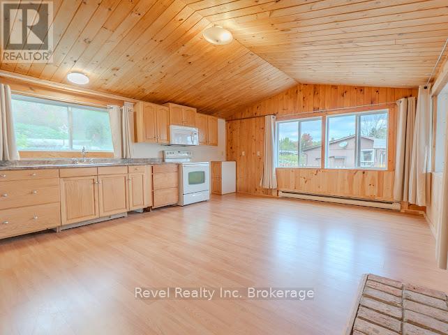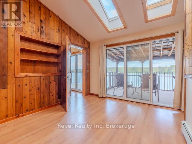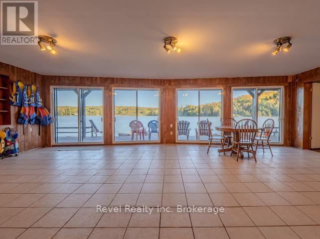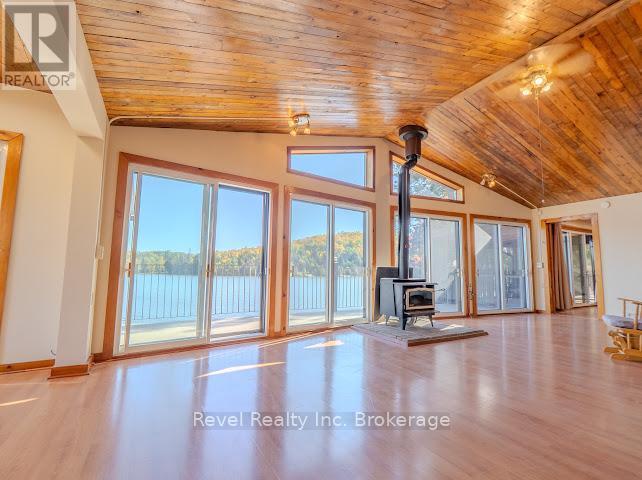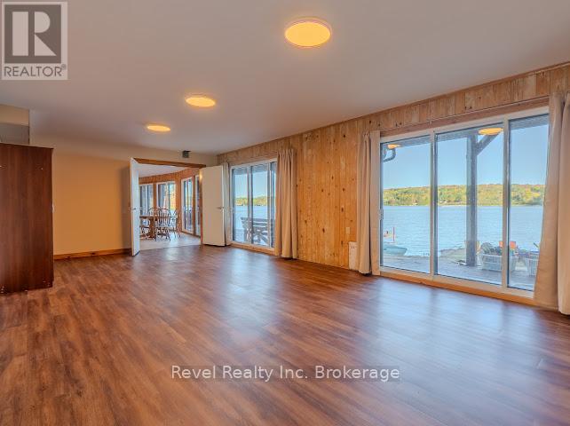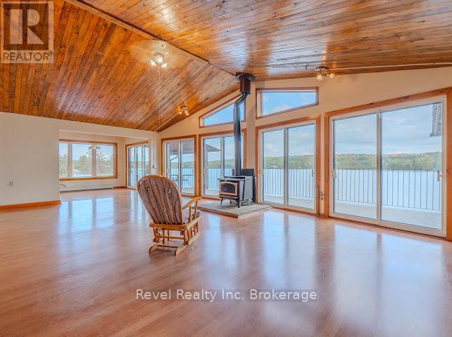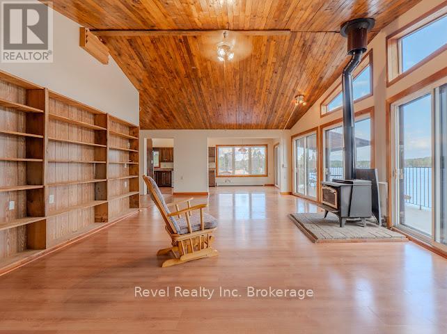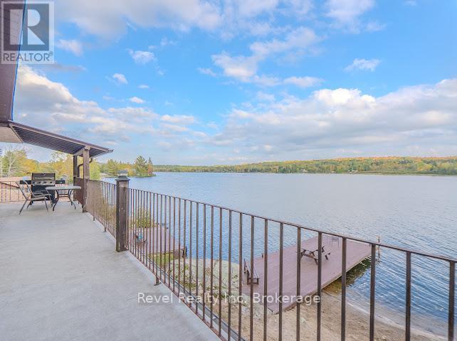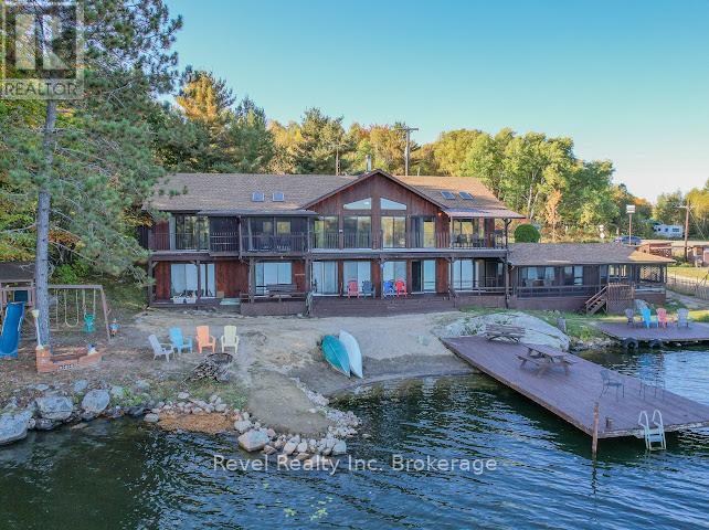 Welcome to 280 Sunnyside Drive, a stunning lakeside retreat nestled on the shores of beautiful Lake Nosbonsing in Bonfield. This exceptional 6 Bed & 5 Bath property ( with the option of 3 separate living spaces/kitchens) offers the perfect blend of year-round comfort and seasonal charm, featuring a spacious walk-out bungalow and a beautifully finished, winterized one-bedroom guest cottage. Designed to embrace natural light, the main home showcases Viceroy-style windows, vaulted ceilings, warm wood accents, and a cozy wood-burning stove. The open-concept living and dining area flows seamlessly onto a covered upper deck with a screened-in section ideal for enjoying serene lake views, day or night. Perfect for entertaining, the kitchen offers ample space to host gatherings, while the main floor includes 3 bedrooms and 3 bathrooms. The primary suite features a walk-in closet and four-piece ensuite. The second bedroom enjoys its own private three-piece bath, while the third offers a private balcony. A stylish two-piece main bath includes the laundry area for added convenience. The finished walk-out basement provides flexible living with a rec room, kitchenette, two bedrooms, and a 4 piece bath perfect for guests, extended family, or potential in-law suite. Step outside and enjoy two docks, a sandy beach, a fire pit, and expansive waterfront ideal for year-round recreation from summer swims to cross-country skiing. The attached, winterized guest cottage adds even more value, offering a charming one-bedroom layout with a clawfoot tub, beautiful wood finishes, plenty of natural light, and a private screened-in porch. Additional features include a detached double garage, in-floor oil hot water heating. Shore allowance is owned. Move in and experience the very best of lakefront living every season of the year. (id:64974)