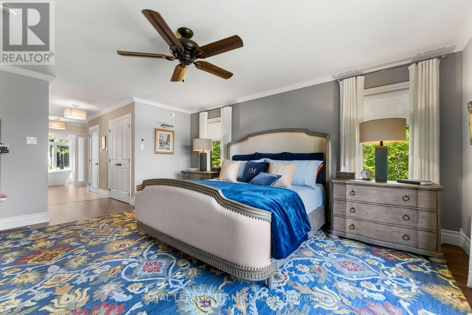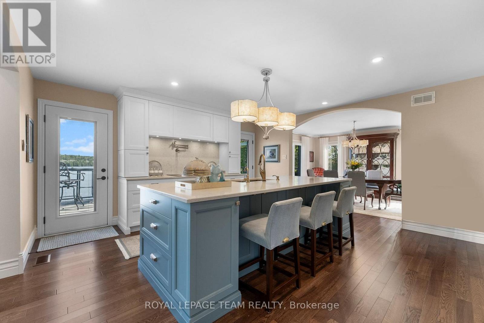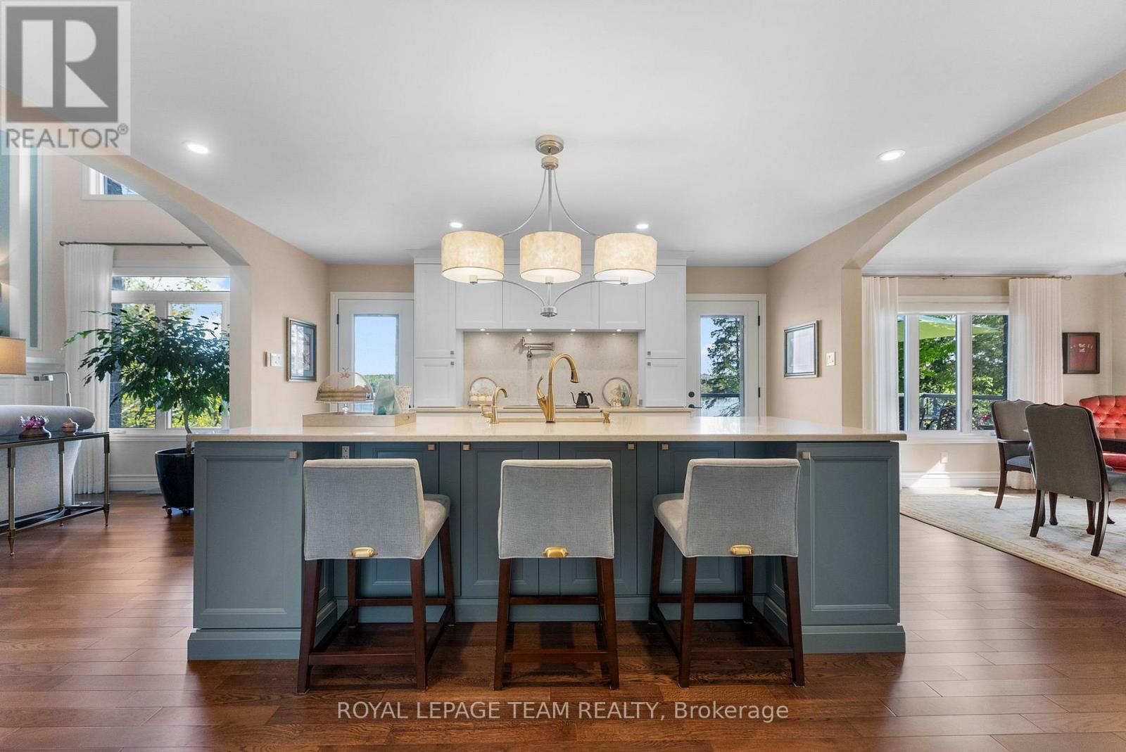 Experience the pinnacle of year-round waterfront living in this meticulously crafted, custom-designed luxury estate property. Set on a private 1-acre lot with over 200 ft of pristine frontage on Black Donald/Centennial Lake, this residence offers unparalleled elegance, comfort, and tranquility. From the moment you arrive, you'll be captivated by the seamless blend of sophisticated design and functional living spaces. The grand entrance opens to an expansive interior adorned with high-end finishes, custom millwork, and floor-to-ceiling windows that frame stunning water vistas at every turn. Every detail has been thoughtfully curated to provide a warm & inviting atmosphere. The chefs kitchen is a culinary masterpiece, featuring premium appliances, custom cabinetry, a breakfast station, and a large island - perfect for preparing gourmet meals. A thoughtfully designed butlers pantry provides additional storage for dry goods and fine wines, as well as space ideal for prepping evening canapés and dessert courses. The primary suite- a private sanctuary, boasting a spa-inspired en-suite with custom walk-in closets, Jack & Jill vanities, and a private soaker tub with unparalleled views of the manicured grounds. 3 additional lower level bedrooms are generously sized and elegantly appointed. Included in the guest wing are 2 additional living spaces and a separate kitchenette. Outside, the property boasts extensive professional landscaping complemented by an advanced irrigation system, ensuring lush, vibrant grounds. The expansive outdoor living spaces include a deck with an outdoor kitchen, patios, waterfront gazebo and beautifully manicured lawns. A detached garage offers a window nook for potting, ample storage for tools, and a large space for storing all of your toys. Black Donald/Centennial Lake are interconnected by the Madawaska River, providing 43 km of continuous waterways. This lake is also accessible to float planes, there is an aerodrome. A short drive to Calabogie. (id:64974)