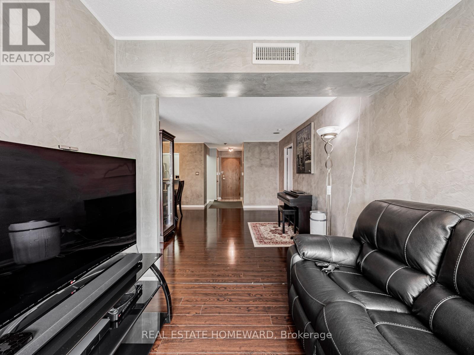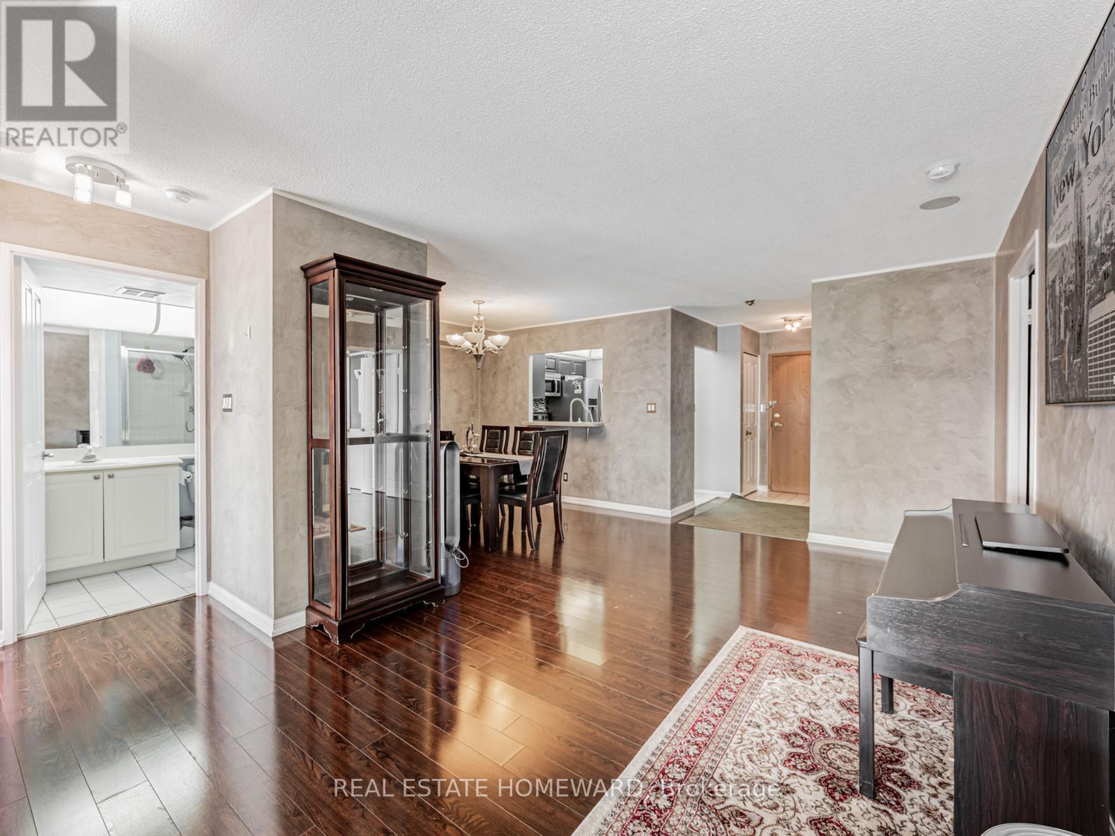 SPACIOUS 2+1 BEDROOM, 2 BATHROOM Condo with PARKING*** Excellent split-bedroom layout with second ensuite bathroom + ample closet space in primary bedroom, hardwood floors throughout with custom professional "venetian stucco" wall design, ceramic tiled kitchen/bathrooms, updated kitchen counter with under-mount double-sink, stainless steel appliances, formal dining room area with plenty of space throughout to enjoy! EXCELLENT AMENITIES include swimming pool, gym, bowling, party/meeting room, security system/guard, visitor parking & more! ***(UTILITIES INCLUDED: HEAT, HYDRO & WATER)*** (id:64974)