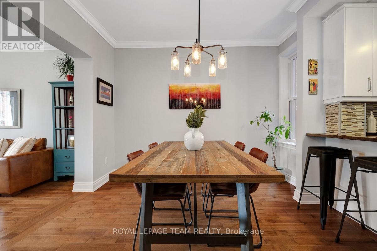 Welcome to 281 Flora Street, a charming red-brick home on a quiet street in the heart of Centretown. Blending classic character with thoughtful modern updates, this home offers comfortable urban living just steps to cafés, restaurants, parks, and downtown amenities. The main level features 9' ceilings, crown moulding, and hardwood flooring that flows through the living and dining areas, creating a bright and inviting space for both everyday living and entertaining. The modern kitchen is beautifully appointed with granite countertops, stainless steel appliances, soft-close cabinetry, breakfast bar seating, and a large pantry with convenient pull-out shelving. Upstairs, hardwood flooring continues through the stairwell and upper level. The spacious primary bedroom is filled with natural light and features his-and-hers closets with access to a private upper balcony. Two additional bedrooms offer flexible space for family, guests, or a home office. The fully finished lower level extends the living space with a comfortable rec room featuring custom built-ins and an electric fireplace, along with a convenient 4-piece bathroom. At the rear of the home, a private deck and fenced yard provide a low-maintenance outdoor space perfect for relaxing or entertaining. With its classic curb appeal, thoughtful updates, and unbeatable walkable location, this home offers an excellent opportunity to enjoy the best of Centretown living. Based on Ottawa.ca, this address qualifies for a City of Ottawa street parking permit, subject to availability. (id:64974)
