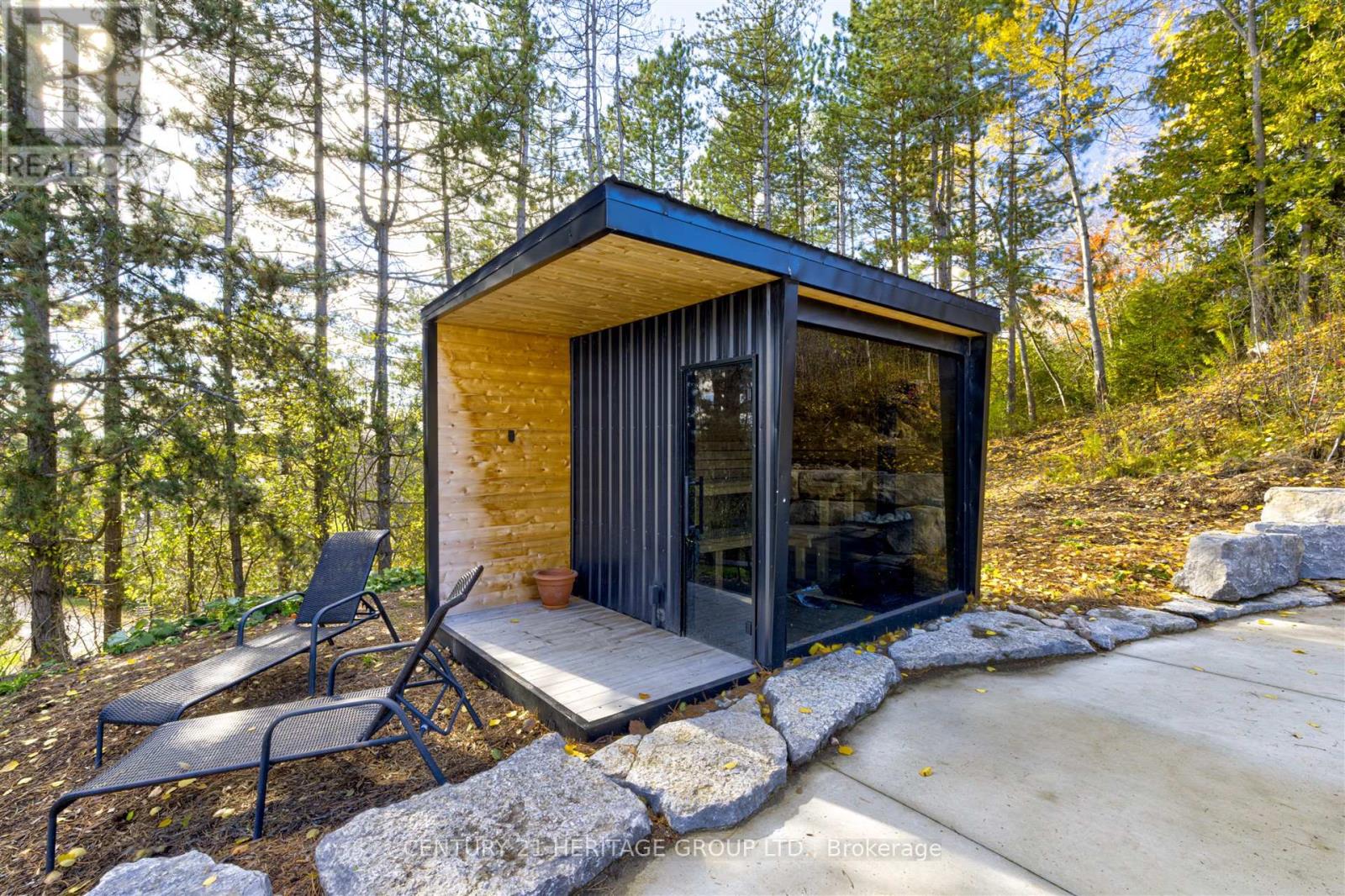 Perched high atop a scenic hill with breathtaking four-season panoramic countryside views, this exceptional residence sits on a private 2.35-acre parcel and has been fully renovated inside and out with top-tier finishes. Offering 5 bedrooms and a 3-car garage, the home is ideally suited for multi-generational living and those seeking space, privacy, and refined comfort. Thoughtfully designed, the home features 7-inch wide plank flooring, two chef-inspired kitchens complete with built-in appliances, quartz countertops, and oversized breakfast islands, and an abundance of natural light throughout. The stunning primary retreat boasts floor-to-ceiling windows, custom built-in and walk-in closets, and a spa-inspired five-piece ensuite with heated floors, glass shower, floating vanities, and elegant finishes. Additional highlights include multiple fireplaces, solid interior doors, wrought iron railings, smooth ceilings with pot lighting, exposed natural beams, and multiple walkouts leading to expansive outdoor spaces, including a glass-railed balcony ideal for enjoying the views. Wellness features include an indoor sauna, while major upgrades such as a newer roof, windows, and garage doors provide peace of mind. Conveniently located minutes to Highway 404, Warden Avenue, and all amenities, this is a rare opportunity to own a turnkey luxury estate combining privacy, lifestyle, and accessibility. Custom chicken coop featuring a secure indoor roost, automatic door for easy access, and attached playpen with built-in feeders-perfectly set up for convenient, low-maintenance backyard poultry keeping (id:64974)
