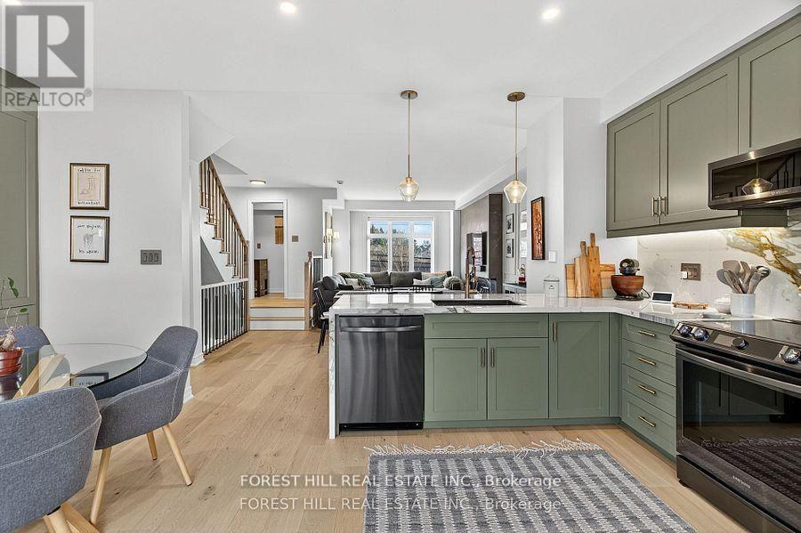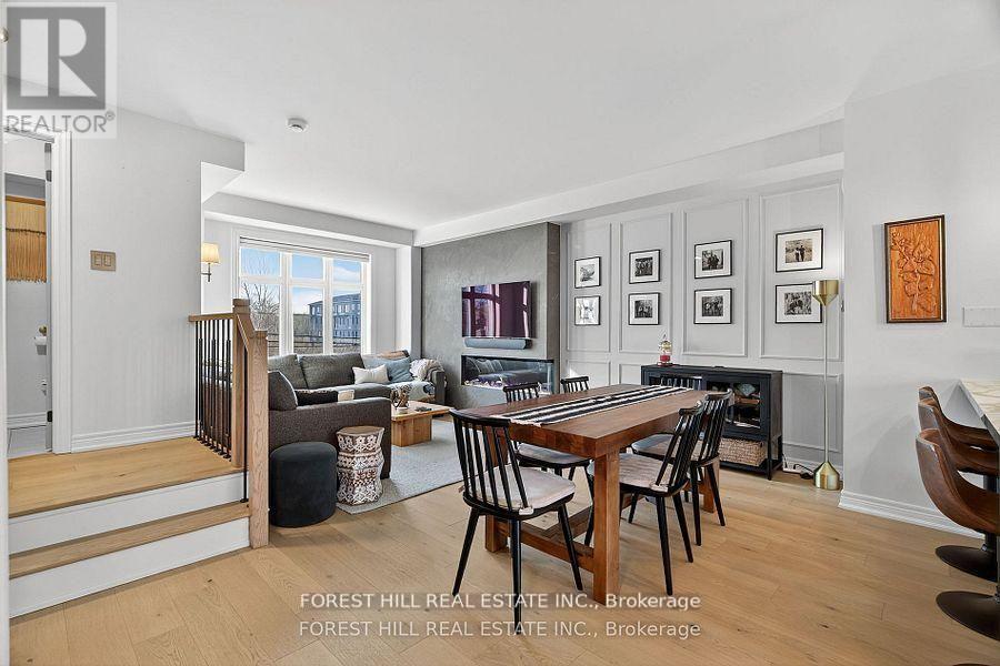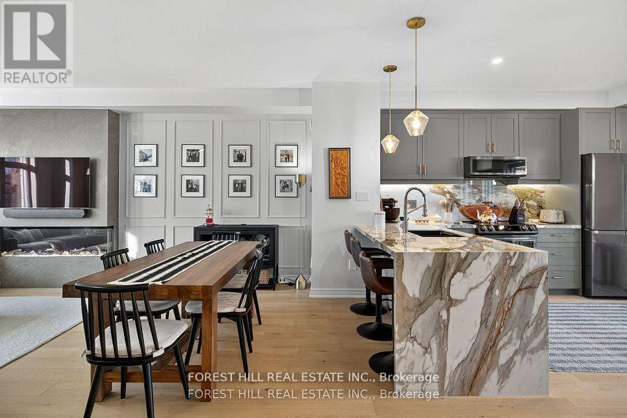 Discover modern sophistication in this beautifully updated 3-bedroom townhome, ideally situated in a prime location close to everyday conveniences, dining, and commuting options. Thoughtfully enhanced with premium finishes and contemporary upgrades, this residence offers both style and exceptional livability. A finished 2 car garage welcomes you home, leading into an interior transformed with new engineered wood floors and new railings that elevate the home's clean, modern aesthetic.The heart of the home features a brand-new kitchen complete with a stylish coffee bar, 2023 Samsung appliances, and a striking porcelain waterfall island complemented by a matching porcelain backsplash. The open-concept living area is anchored by a two-sided corner fireplace, adding warmth and architectural interest to both living and dining spaces. Step outside onto the large balcony, perfect for morning coffee, outdoor dining, or simply unwinding in your own private outdoor retreat. Additional upgrades include new front facade windows, blinds throughout, upgraded smoke detectors, and a Google Nest thermostat for energy-efficient comfort. Thoughtfully curated, stunning accents are interwoven throughout the home, creating a seamless blend of style and functionality. This townhome is truly move-in ready-offering refined living, modern convenience, and an unbeatable location. (id:64974)