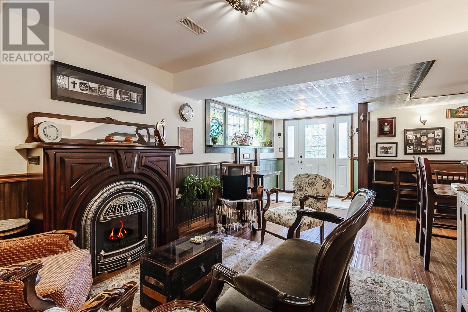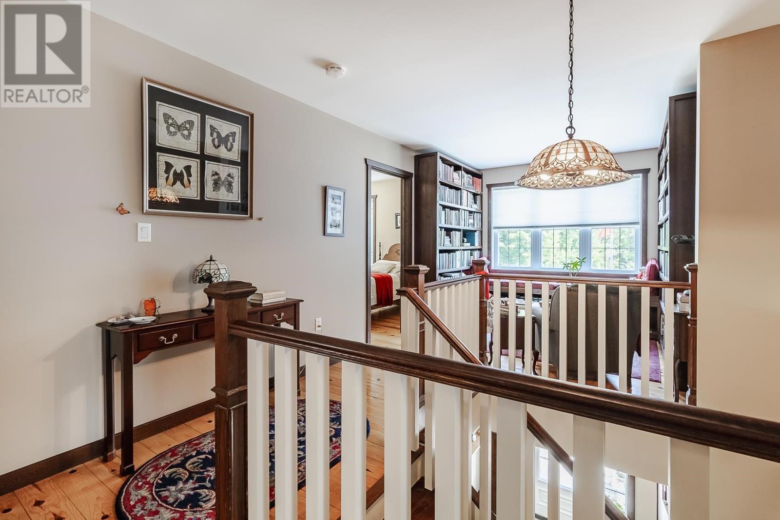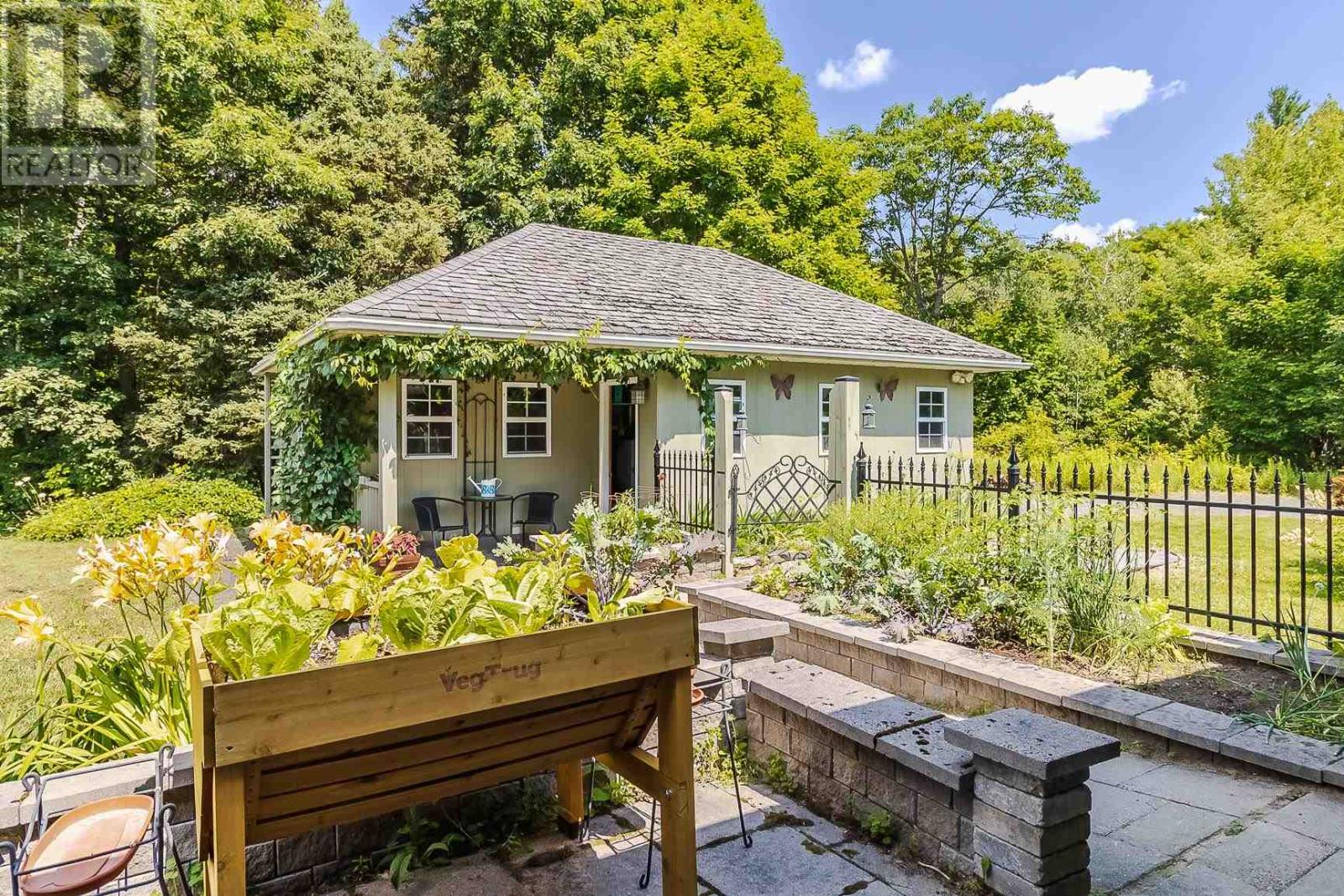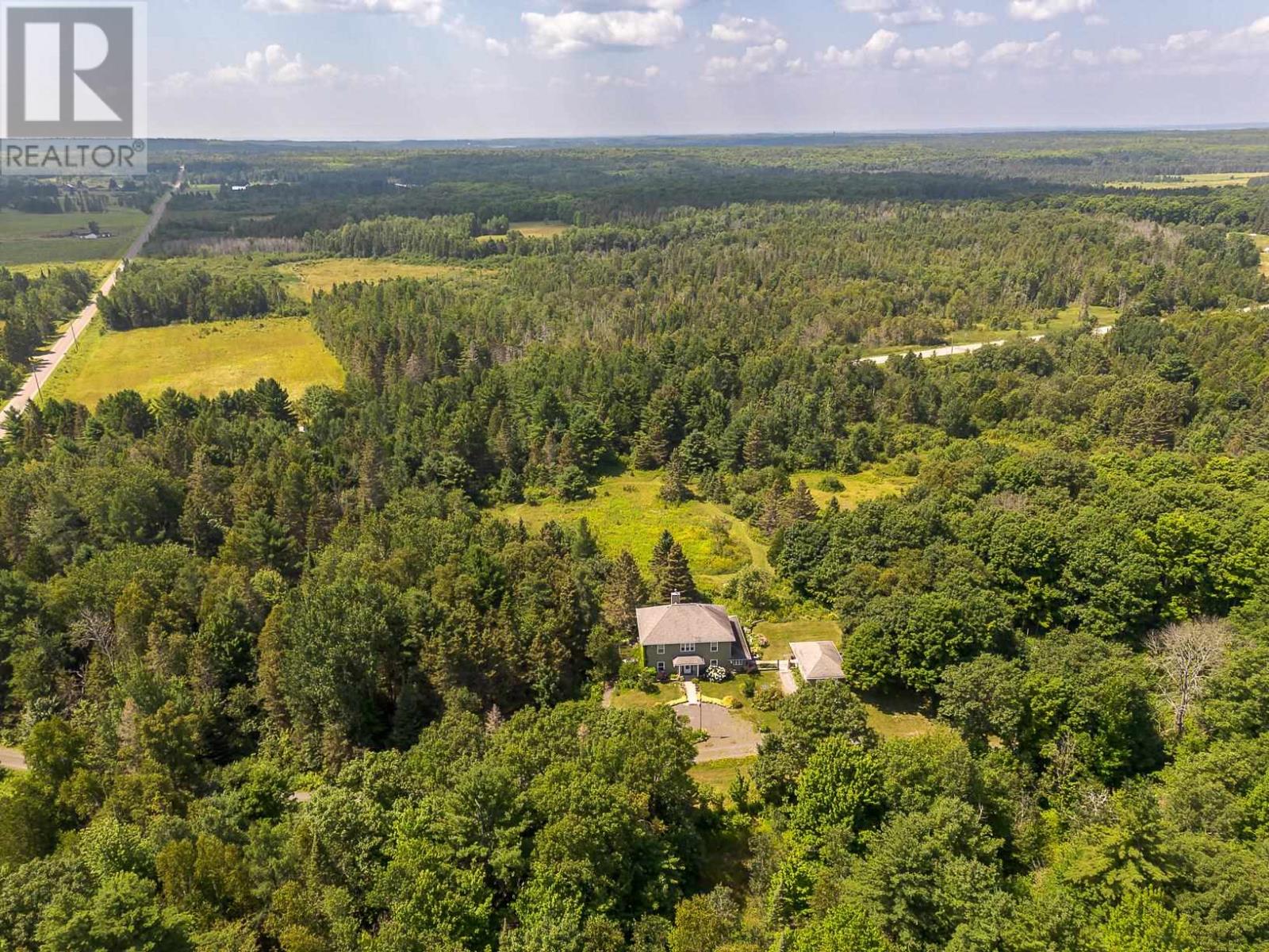 WELCOME TO STONEFIELD. Built in 2008 and inspired by the craftsmanship of an 18th century Irish farmhouse, this distinctive country estate sits on 74 private acres! Formerly operated as a bed & breakfast, the home features custom trim, doors, and carefully selected flooring and lighting. Detached garage designed to complement traditional Irish architecture. The main floor offers a reception, chef’s kitchen with propane stovetop and walk-in pantry, formal dining and living room, screened porch with sweeping views, and primary suite with walk in closet, three piece bath with walk in shower, and laundry. Upstairs includes a library with window seat, 3 bedrooms; 2 with ensuites, plus a spacious private suite with seating area, vintage style fireplace, and clawfoot tub. The lower level features an AUTHENTIC IRISH PUB! with wood bar, snug, fireplace, stage with stand up piano, and walkout to two patio areas surrounded by mature trees. Outdoor amenities include trails across the property, gardens, apple trees, fire pit, and bunkie. Additional features include forced air propane heat (2022), central air, CanExcel siding, and detached garage. Ideal as a private residence, boutique B&B, or event venue. (id:64974)