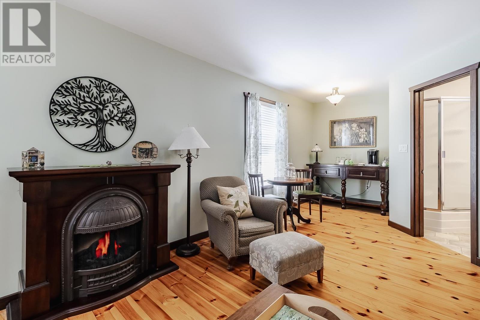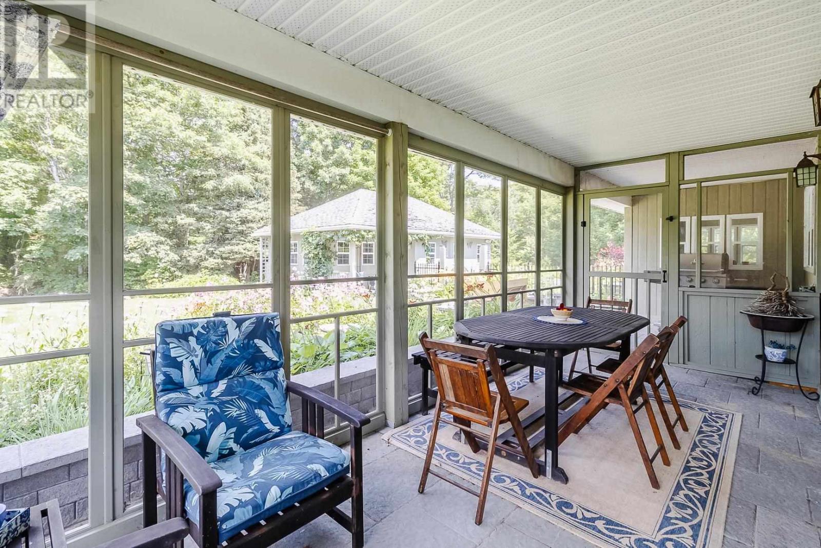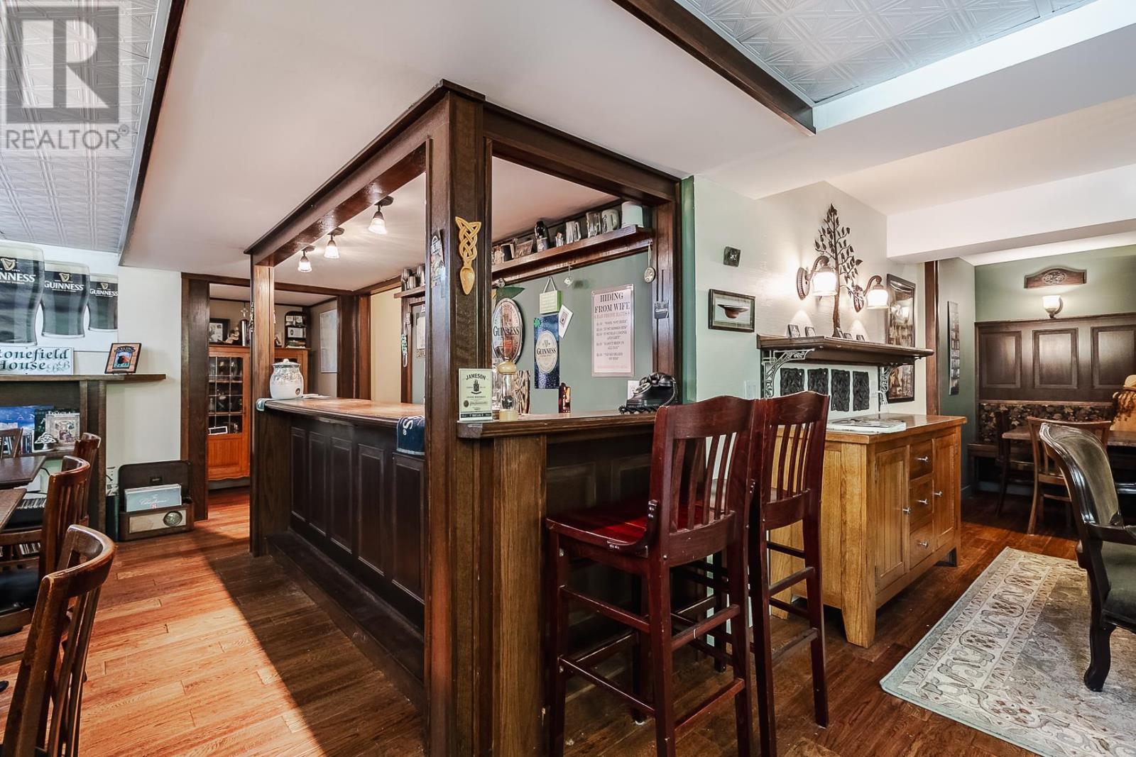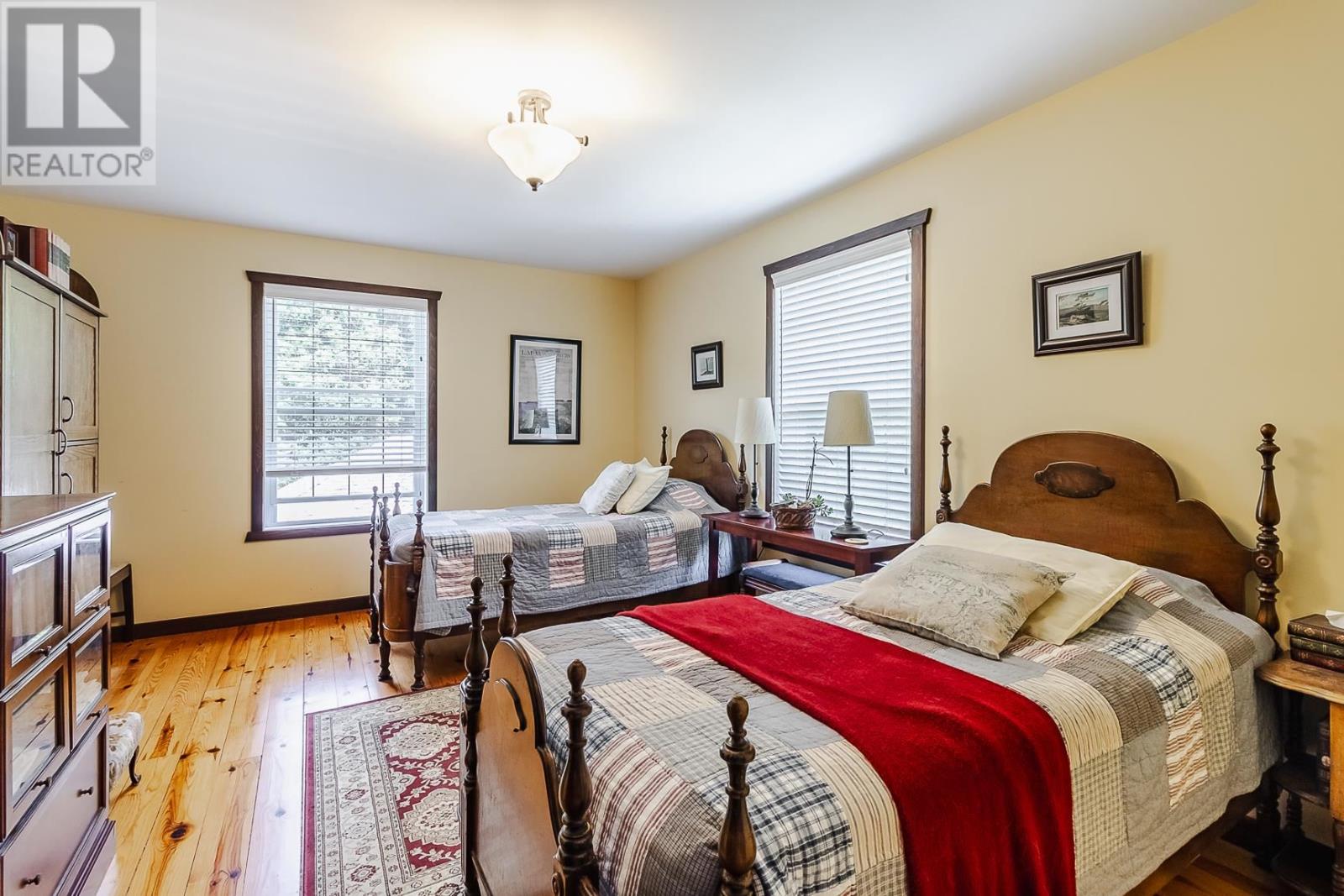 WELCOME TO STONEFIELD. Built in 2008 and inspired by the craftsmanship of an 18th century Irish farmhouse, this distinctive country estate sits on 74 private acres! Formerly operated as a bed & breakfast, the home features custom trim, doors, and carefully selected flooring and lighting. Detached garage designed to complement traditional Irish architecture. The main floor offers a reception, chef’s kitchen with propane stovetop and walk-in pantry, formal dining and living room, screened porch with sweeping views, and primary suite with walk in closet, three piece bath with walk in shower, and laundry. Upstairs includes a library with window seat, 3 bedrooms; 2 with ensuites, plus a spacious private suite with seating area, vintage style fireplace, and clawfoot tub. The lower level features an AUTHENTIC IRISH PUB! with wood bar, snug, fireplace, stage with stand up piano, and walkout to two patio areas surrounded by mature trees. Outdoor amenities include trails across the property, gardens, apple trees, fire pit, and bunkie. Additional features include forced air propane heat (2022), central air, CanExcel siding, and detached garage. Ideal as a private residence, boutique B&B, or event venue. (id:64974)