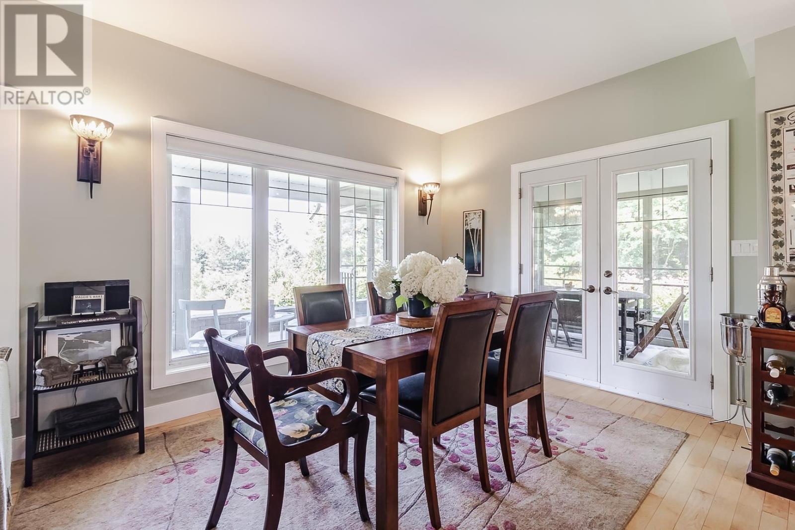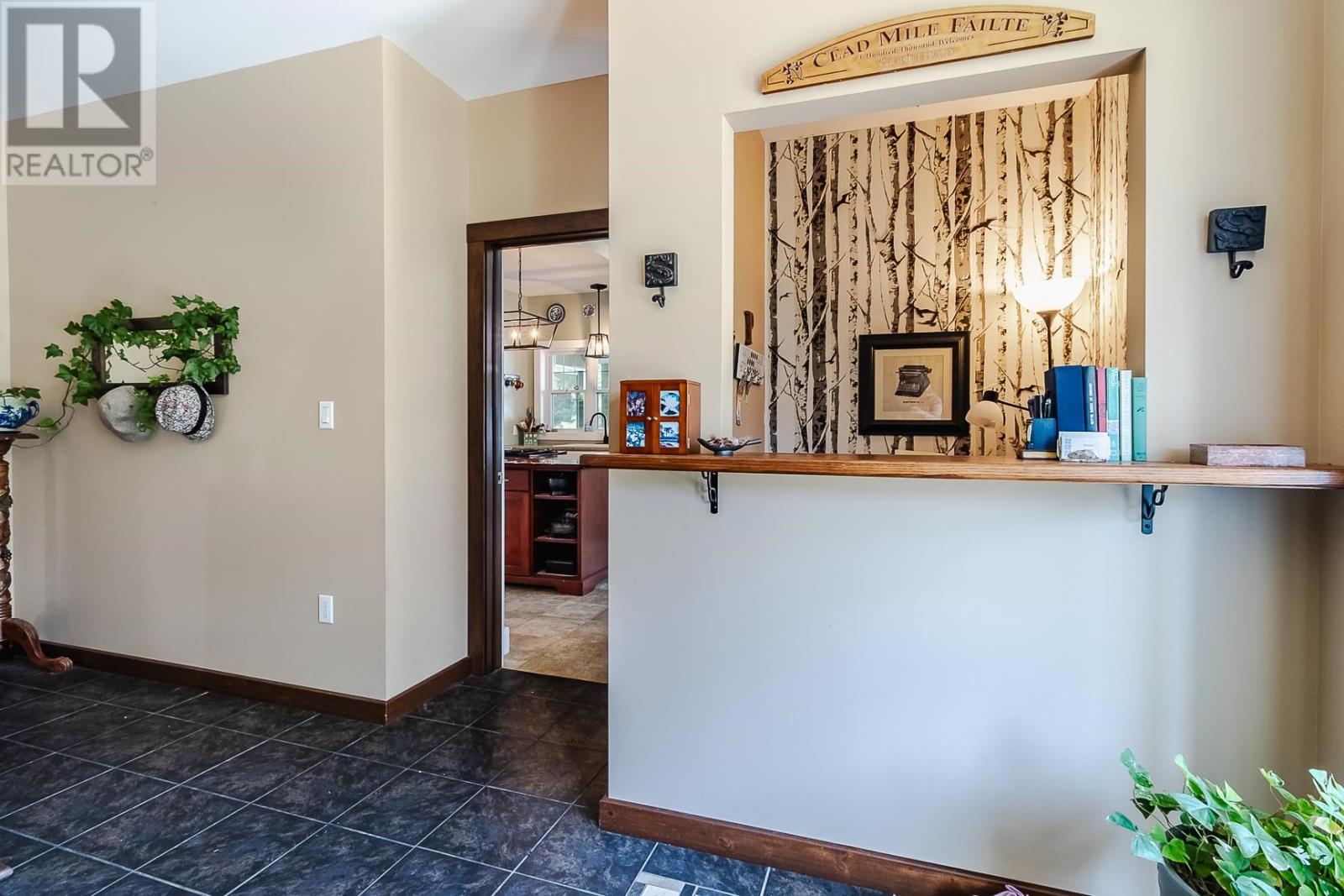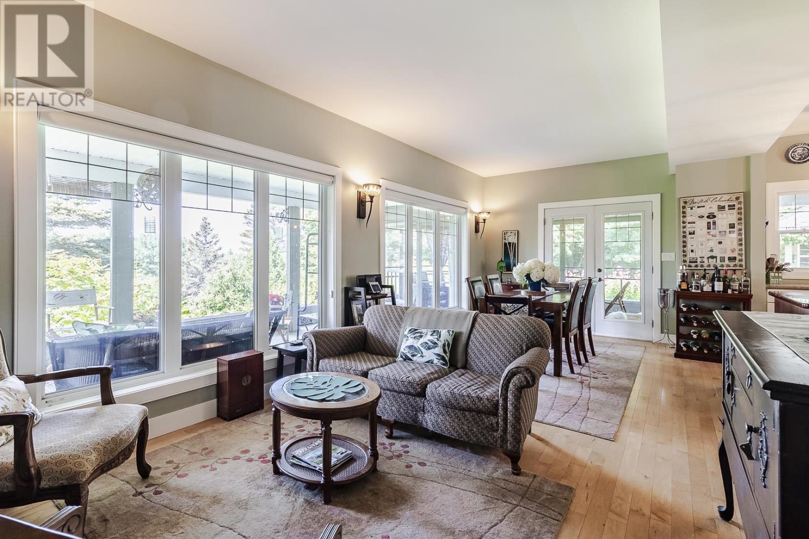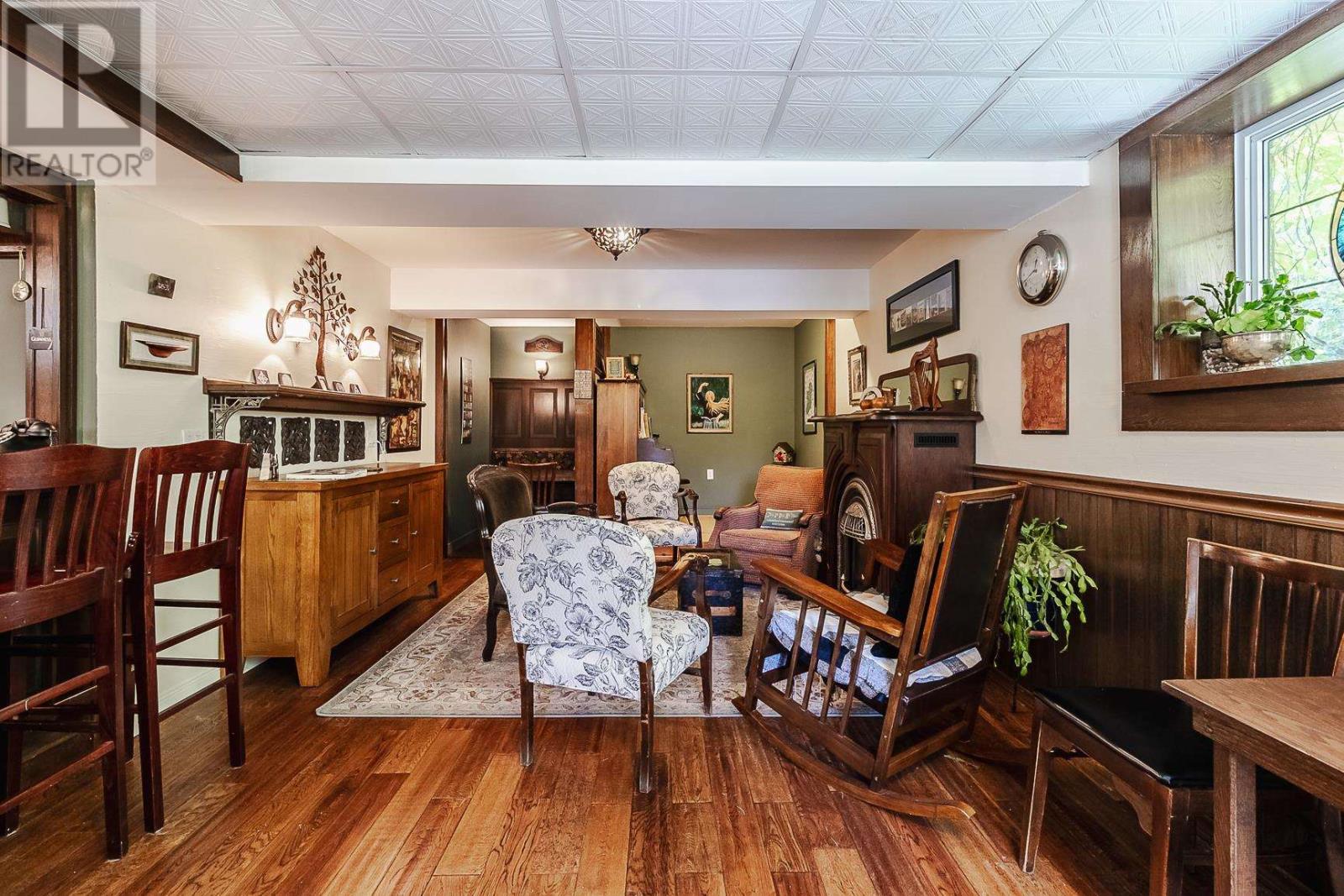 WELCOME TO STONEFIELD. Built in 2008 and inspired by the craftsmanship of an 18th century Irish farmhouse, this distinctive country estate sits on 74 private acres! Formerly operated as a bed & breakfast, the home features custom trim, doors, and carefully selected flooring and lighting. Detached garage designed to complement traditional Irish architecture. The main floor offers a reception, chef’s kitchen with propane stovetop and walk-in pantry, formal dining and living room, screened porch with sweeping views, and primary suite with walk in closet, three piece bath with walk in shower, and laundry. Upstairs includes a library with window seat, 3 bedrooms; 2 with ensuites, plus a spacious private suite with seating area, vintage style fireplace, and clawfoot tub. The lower level features an AUTHENTIC IRISH PUB! with wood bar, snug, fireplace, stage with stand up piano, and walkout to two patio areas surrounded by mature trees. Outdoor amenities include trails across the property, gardens, apple trees, fire pit, and bunkie. Additional features include forced air propane heat (2022), central air, CanExcel siding, and detached garage. Ideal as a private residence, boutique B&B, or event venue. (id:64974)