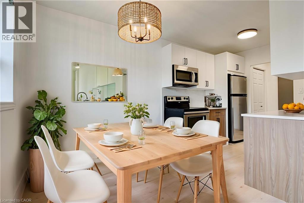 RENT TO OWN AVAILABLE! CONDO FEES INCLUDE HYDRO, WATER AND GAS! Experience the pinnacle of worry-free living in this spacious two-bedroom suite fresh off a comprehensive $20,000 designer renovation. Nestled in the highly coveted Chicopee area, this home represents a rare opportunity where luxury meets affordability and total convenience. The all-inclusive condo fees cover hydro, water, and gas, offering a simplified lifestyle that is further enhanced by low property taxes. The heart of this home is the brand-new custom kitchen, a masterpiece of modern design featuring dual-tone soft-close cabinetry and sleek matte black hardware. Dramatic Bianco quartz countertops transition seamlessly into a matching full-height quartz backsplash, complemented by a sophisticated beadboard accent wall and a practical double sink. Throughout the suite, contemporary lighting illuminates the gorgeous luxury vinyl flooring, which provides a perfect blend of high-end aesthetics and everyday durability. The refinement extends into the bathroom, where a custom vanity topped with stunning Calcatta Ice quartz offers both elegance and ample storage. Every inch of the interior has been freshly painted, creating a bright and airy atmosphere that is ready for immediate move-in. Beyond the interior, the building has undergone exterior enhancements with new balcony guards, balcony waterproofing and more. Living here means you are just minutes away from grocery stores, diverse dining options, several top-tier schools, and effortless highway and transit access. With an exclusive-use assigned parking space and all major utilities included in your fees, this suite is the perfect blend of modern sophistication and unbeatable value (id:64974)