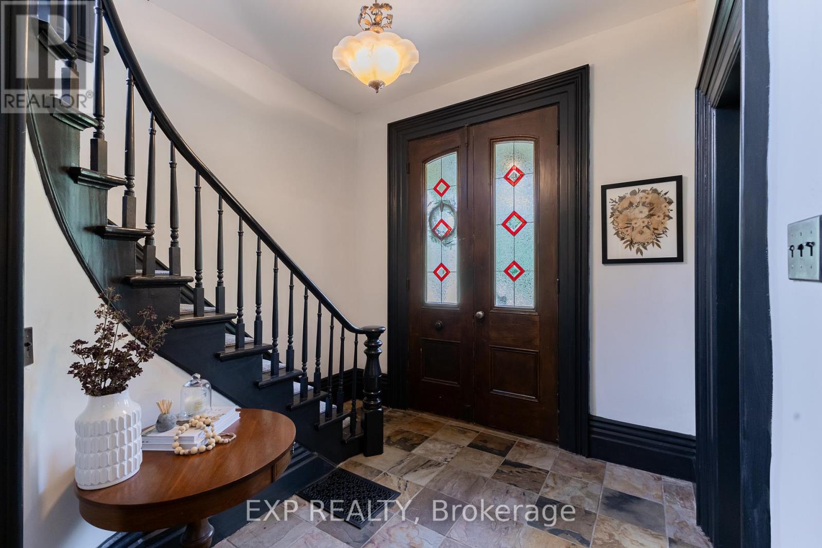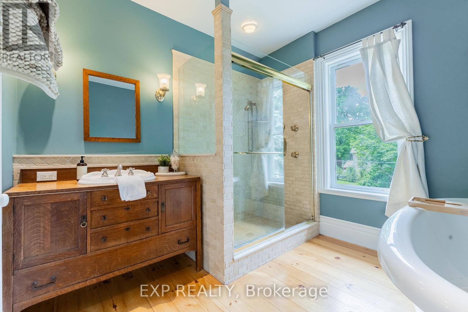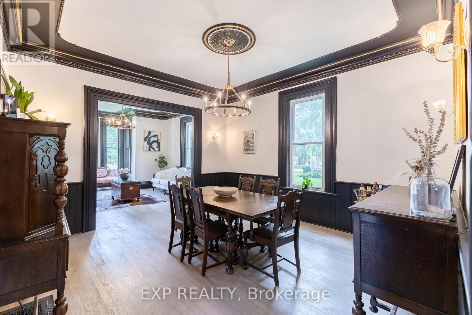 Welcome to 283 Hastings Street, a thoughtfully preserved Victorian blending historic charm with modern comfort. Originally built in 1890, this character-rich home has been carefully updated while honouring its original craftsmanship. From the metal roof to restored architectural details throughout, the pride of ownership is evident. Inside, high ceilings, crown mouldings, and original Victorian trim create a warm and inviting atmosphere. The front foyer features original stained-glass doors and a striking wood staircase. A bright sitting room flows into the formal dining room, offering a functional layout ideal for everyday living and entertaining. The kitchen is filled with natural light from a skylight and includes a breakfast nook and an expansive butler's pantry with farmhouse double sink, second refrigerator, and dishwasher. The second living room features a cathedral ceiling, fireplace, and French doors leading to a 1,000+ sq. ft. deck, effortlessly extending the living space outdoors. The main-floor bathroom offers custom cabinetry, granite countertops, and a black tile and marble mosaic shower. Upstairs are three bedrooms and a four-piece bathroom with tiled shower, custom vanity, and clawfoot soaker tub. A sun-filled reading nook opens to a restored Juliette balcony.The partly finished basement includes a family room with fireplace, workshop, and ample storage. Situated on an approximately 0.59-acre lot, this home offers timeless character, modern updates, and exceptional living space. Welcome home to 283 Hastings Street - a home designed for those who appreciate craftsmanship, character, and spaces that feel intentional. Note: Some interior photos are virtually staged and noted as such. For buyers interested in additional details beyond a traditional listing, a storybook is available upon request outlining the property's history, craftsmanship, and lifestyle features. (id:64974)
