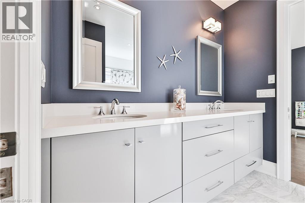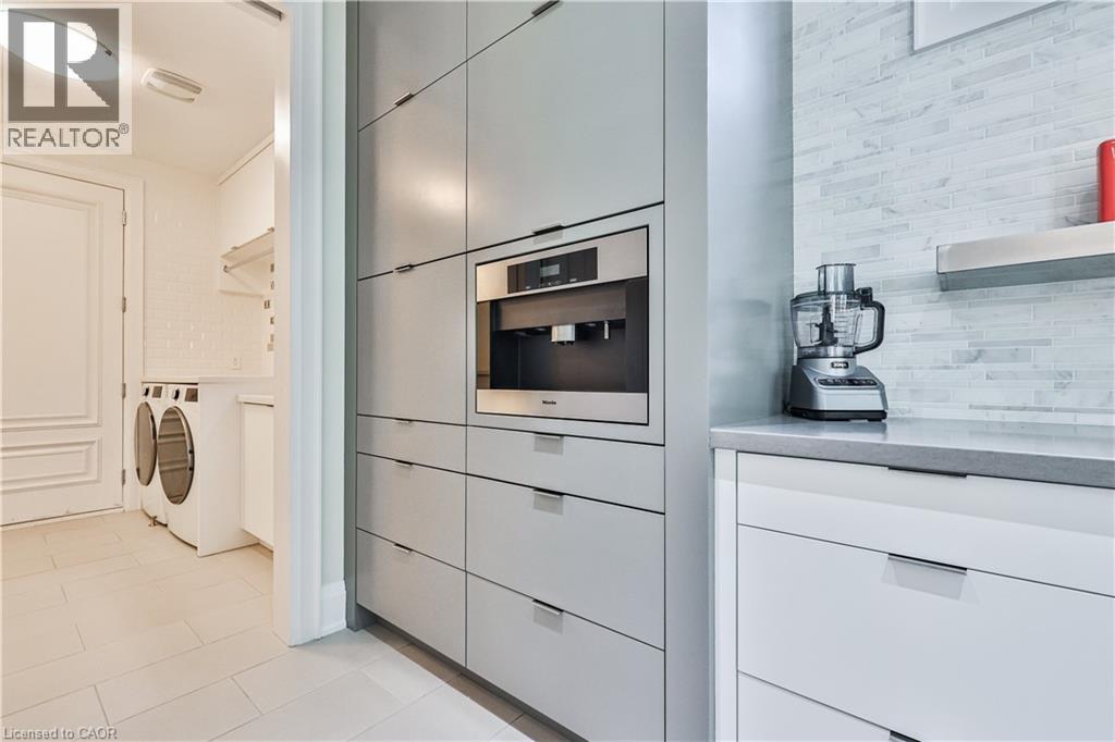 Experience refined luxury in this exceptional executive residence, perfectly positioned in the heart of downtown Bronte. Thoughtfully designed for the modern, discerning homeowner, this two-storey home seamlessly blends contemporary style with timeless elegance, all just steps from the lake, charming boutiques, and premier amenities. The sun-filled main level features an expansive open-concept layout, ideal for both everyday living and sophisticated entertaining. Gracious living and dining spaces are complemented by a stunning chef-inspired kitchen equipped with premium Miele built-in appliances, sleek quartz countertops, and bespoke cabinetry—perfect for culinary enthusiasts. A private home office or study offers a quiet retreat for work, reading, or relaxation. Upstairs, the second level unfolds into a tranquil private haven. The primary suite is a true showstopper, boasting dual spa-like ensuites and generous walk-in closets designed with both comfort and function in mind. Three additional spacious bedrooms, each complete with its own beautifully appointed ensuite, provide exceptional privacy and comfort for family and guests alike. The fully finished lower level extends the living space with a versatile recreation room ideal for entertaining, a dedicated gym area, an additional family room, guest bedroom, and full washroom—perfect for hosting visitors or multi-generational living. Step outside to a covered terrace featuring a cozy gas fireplace, creating an inviting setting for year-round outdoor entertaining. The professionally landscaped backyard offers a private, fully fenced oasis with lush greenery and refined hardscaping, providing both serenity and peace of mind. This remarkable home offers a rare opportunity to enjoy sophisticated, modern living in one of Bronte’s most coveted locations—where every detail has been meticulously curated for comfort, style, and effortless luxury. (id:64974)