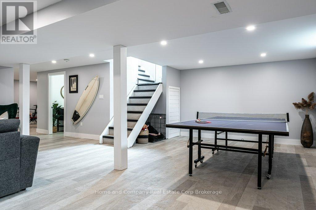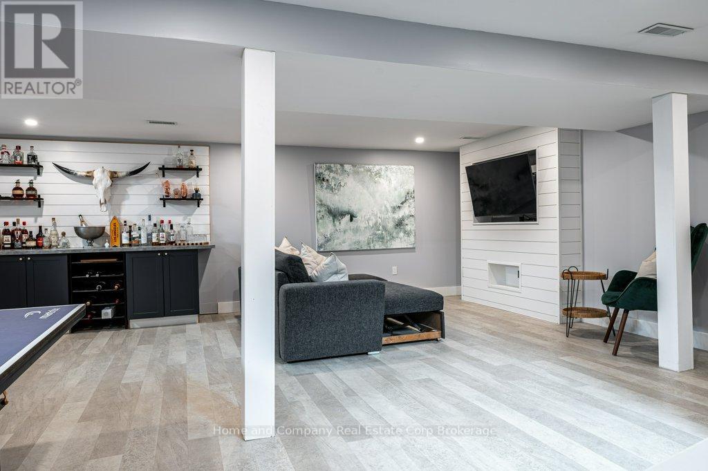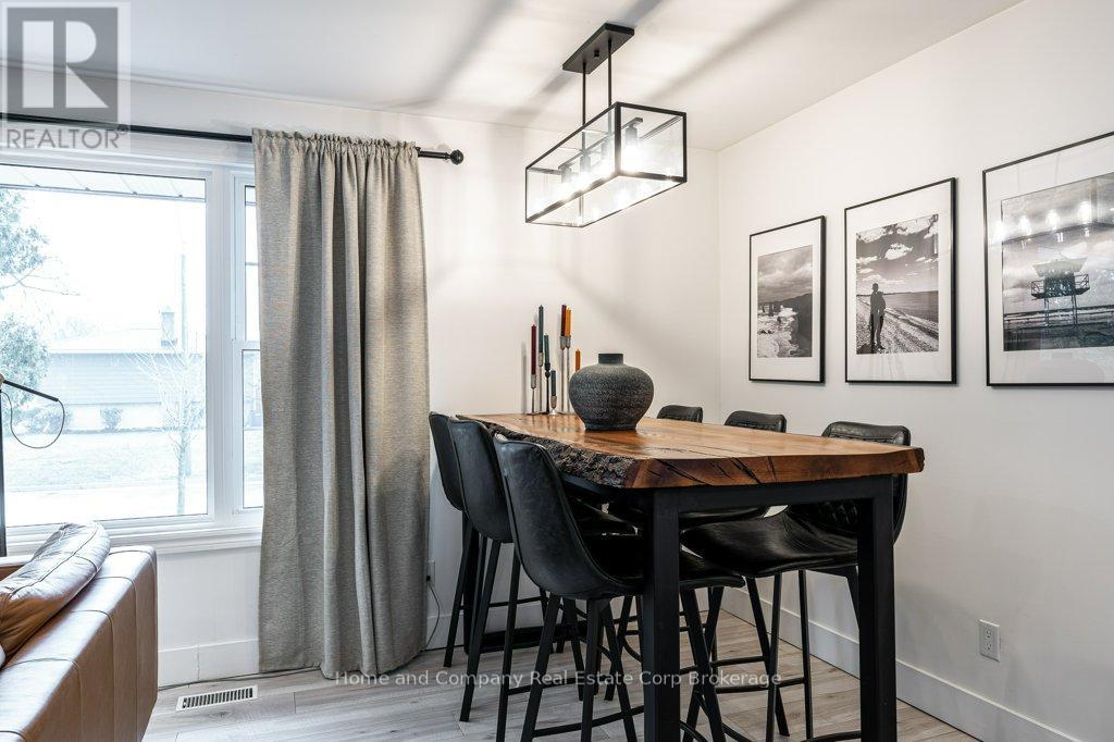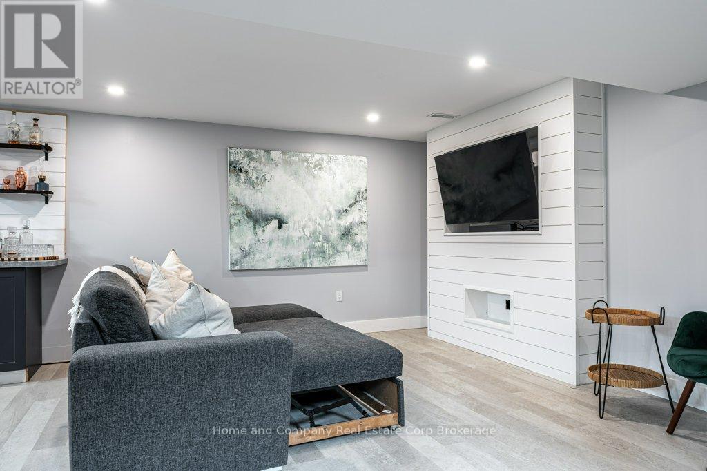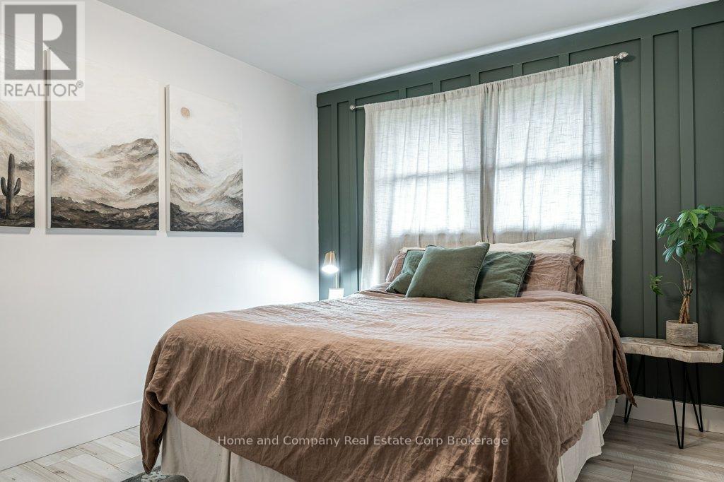 Calling all design-savvy Buyers looking for a home with style. This solid, all brick bungalow has been fully renovated for a fresh, modern aesthetic & zen feel. Natural light greets you when you step through the front door & into the striking living room with a custom TV feature wall. You'll be drawn to the sleek & clean lines of the kitchen, which has crisp white cabinets, quartz countertops, stainless steel appliances & unique design features. The 3 bedrooms are tucked off of the main living areas just down the hall with the inviting 4 piece bathroom. The lower level is made for relaxing or entertaining offering a one-of-a-kind bar, a second custom TV feature wall & games area. A flex space for exercising or dedicated space for your hobbies & a gorgeous 3 piece bath with walk in shower complete the interior package. Outside, you will find a fenced yard where you can enjoy morning coffee, afternoon sun or evening campfires. Located on a quiet crescent, abundant with mature trees, plus Redford Park is just across the street & schools nearby, this neighbourhood is convenient to all of Stratford's wonderful amenities. Pin it, post it, buy it! (id:64974)