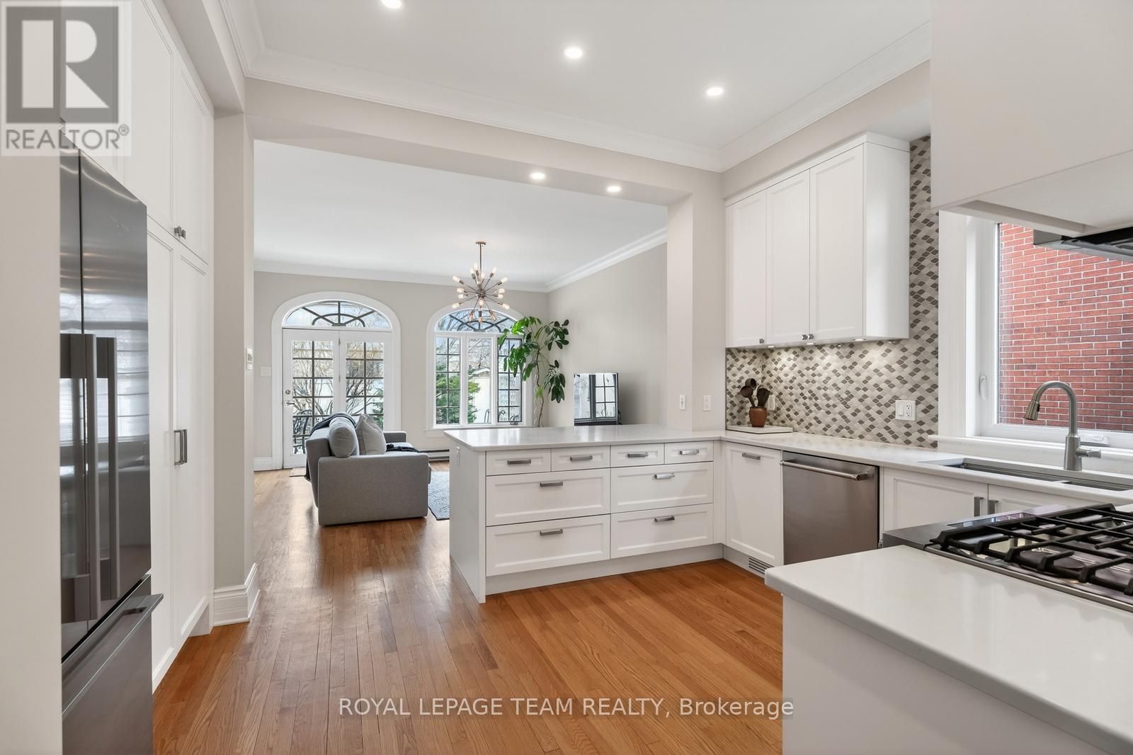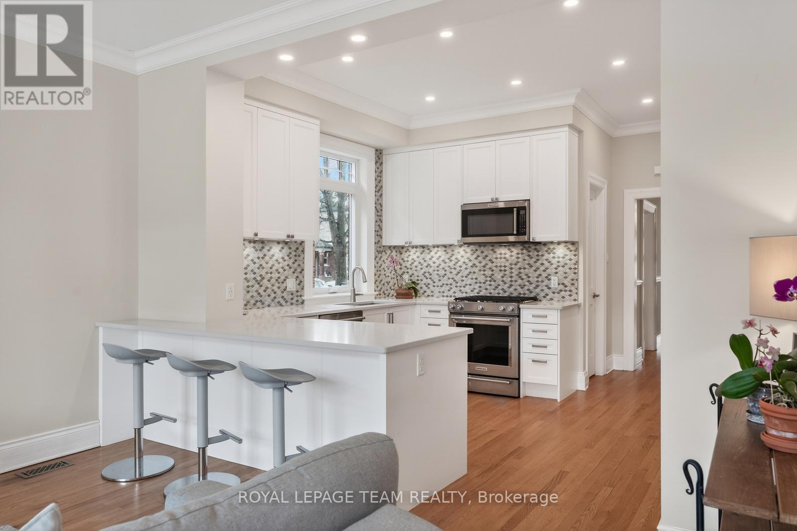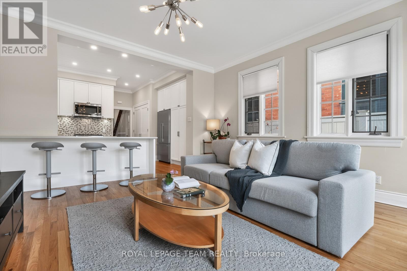OPEN HOUSE SUNDAY APRIL 12TH 2-4 PM. New Edinburgh at its most charming. Set on a peaceful, tree-lined street with a storybook feel, this thoughtfully updated brick home blends warmth, light, and function. To start: enjoy the view from a beautifully designed front porch with glass panels and potlights. Inside, high ceilings, crown moulding, and windows throughout lift the space. Living and dining flow into a stunning renovated kitchen with quartz counters and extensive cabinetry, opening to a sun-filled family room with dramatic windows and French doors overlooking the garden.The deep backyard is an oasis of lilacs, roses, mature perennials, and a large composite deck. Upstairs, bright bedrooms and stylish bath complement a serene primary retreat with heated floors and its own climate control and front guest room featuring a charming fireplace.Main floor laundry, renovated powder room, 2-car driveway, exceptional storage. Steps to river paths, parks, and downtown access by foot, bike, or even paddle. (id:64974)