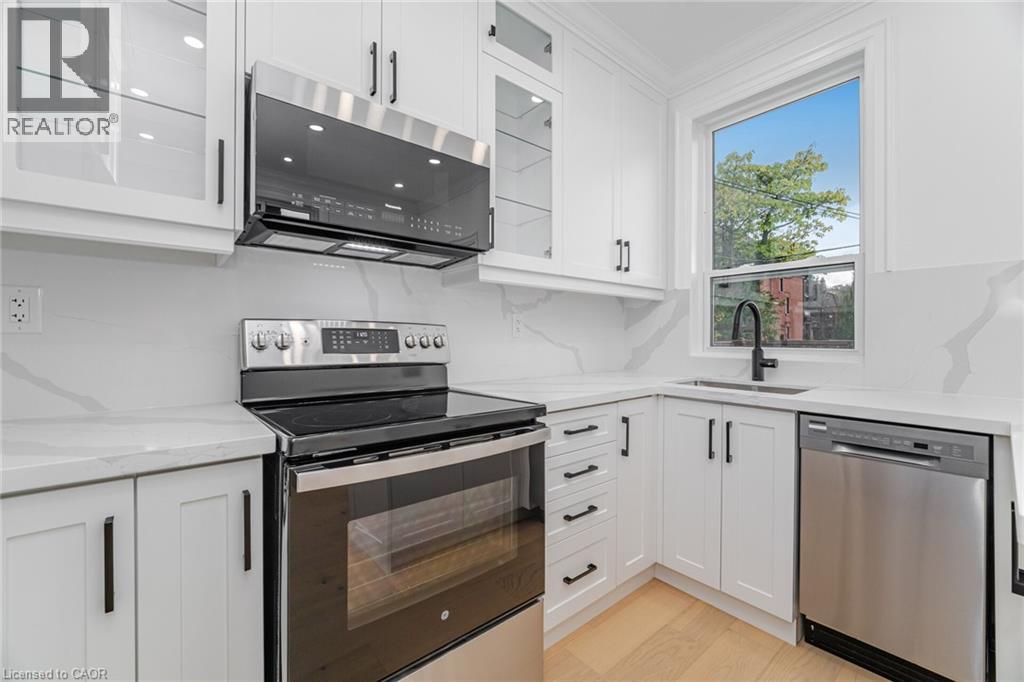 Welcome To 285 Charlton Ave W, A Stunning Fully Renovated 4 Bedroom, 3 Bathroom Home In The Heart Of Hamilton. This Beautifully Updated Property Combines Modern Luxury With Timeless Charm. Featuring Striking Exterior Finishes And Gorgeous Curb Appeal, Every Detail Has Been Thoughtfully Designed. Inside, You'll Find An Open Concept Layout With New Drywall And Paint, Sleek Trim And Doors, Elegant Hardwood Floors, Pot Lights Throughout, And High Ceilings With Crown Moulding And Coffered Details. The Chef's Kitchen Offers Quartz Countertops, Stainless Steel Appliances, And A Stylish Modern Design That Is Perfect For Entertaining. Each Of The Three Bathrooms Has Been Tastefully Renovated With LED Vanity Mirrors, Black Matte Hardware, And Contemporary Finishes. Enjoy The Peaceful Second Floor Terrace Overlooking Lush Greenery, Or Retreat To The Private Third Floor Primary Suite Complete With A Walk-In Closet, Pot Lights, And A Spa-Inspired Three Piece Ensuite. The Finished Basement Features A Separate Entrance, An Additional Three Piece Bath, And A Spacious Recreation Area That Provides Flexibility For Guests, In-Laws, Or Extra Living Space. Step Outside To A Private Backyard With Fresh Sod And A Double Driveway At The Rear For Convenient Parking. Located In The Desirable Kirkendall Neighbourhood, You Are Just Steps From Trendy Locke Street With Its Boutique Shops, Cozy Cafes, And Local Restaurants. Close To Trails, Parks, Schools, Hospitals, And With Easy Access To Highway And The Hamilton GO Centre, This Home Offers The Perfect Blend Of Style, Comfort, And Convenience. Modern Living In One Of Hamilton's Most Sought-After Communities Awaits You. **Select Photos Virtually Staged** (id:64974)