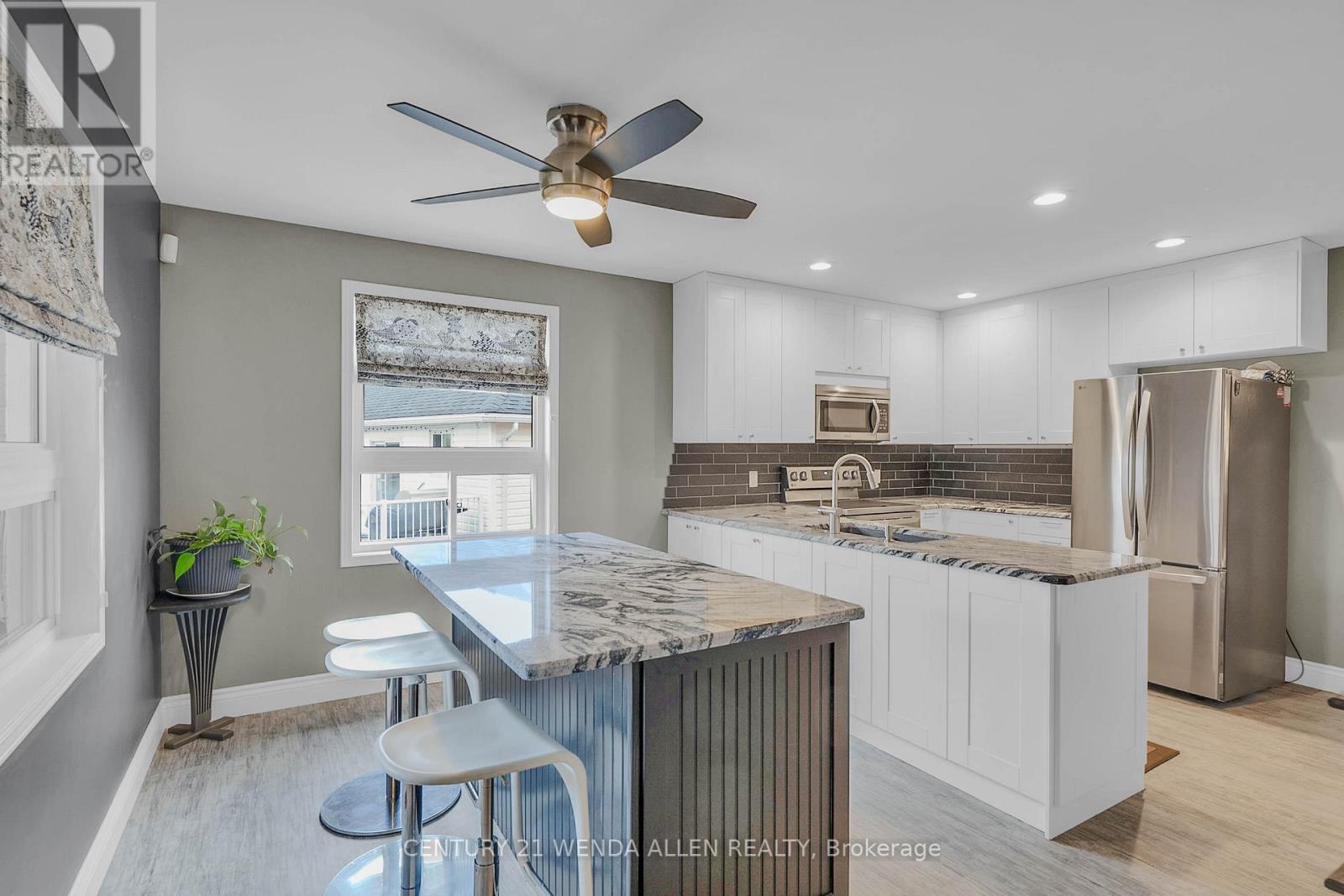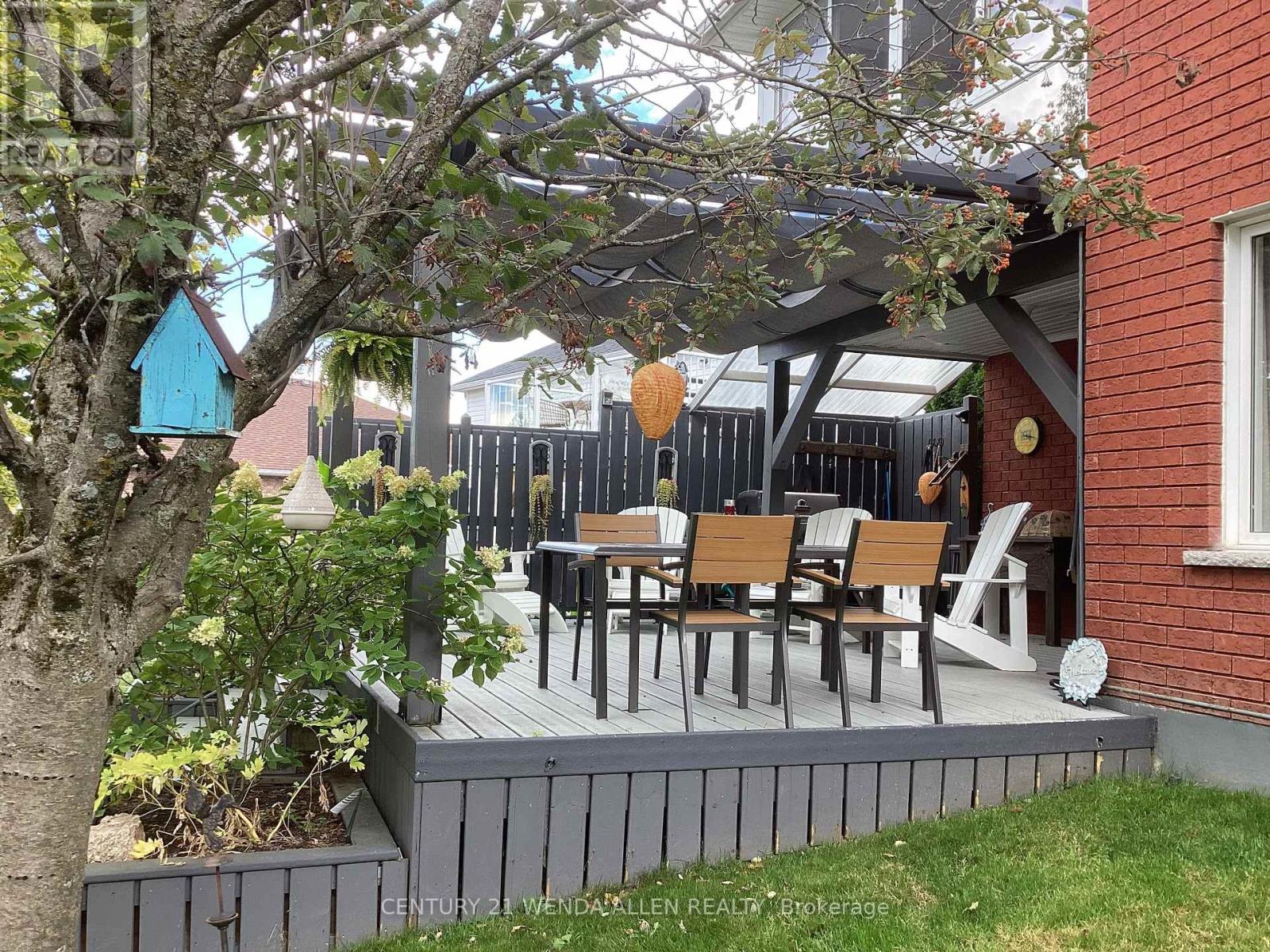 Perfect for multi family living, this level entry all brick bungalow was built in 2004. Located in the desirable enclave of Woodland Acres, the premium lot with an inground sprinkler system backs onto a babbling brook. The main level includes a primary bedroom with a 3 piece ensuite, a 2nd bedroom, main bathroom with custom vanity, main floor laundry, combined living/dining rooms with coved ceilings plus a built in china cabinet. The updated eat in kitchen features a pantry, island with pot and pan drawers and granite counter tops and leads to a cozy family room with gas fireplace and walkout to 3 season sunroom. The family room, sunroom and basement overlook the mini ravine and babbling brook! The lower level provides 3 bedrooms (1 bedroom above grade) with ample closet space, large kitchen, full bathroom with walk in shower and custom vanity, above grade family room with a gas fireplace and W/O to deck, utility room with ample storage. A gas BBQ hookup is located on the TREX partially covered deck which extends to a pergola with a retractable custom made UVF filter sunscreen. The included garden shed provides tool storage for the maintenance of the established perennial garden. The attached double garage (18' X 17') has an entrance to the house interior as well as a man door to the side of the property. This lovely home is located in a mixed neighborhood showing pride of ownership, close to Trent University, Riverview Park and Zoo and just minutes to Lakefield and downtown Peterborough. This well maintained home has a re-shingled roof in (2018), new hot water tank - owned (2020), new furnace (2024). Water and sewage are included in tax bill. The family room, sunroom and basement overlook the mini ravine with babbling brook. The pictures look great but seeing the property in person will amaze you!!!! (id:64974)