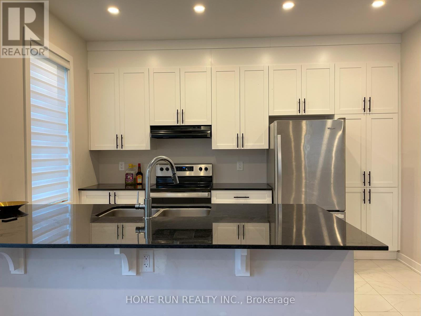 Beautifully maintained end-unit Townhouse in sought-after Half Moon Bay, featuring over $17,000 in upgrades and offering a perfect blend of comfort, style, and functionality. bright and welcoming foyer with high ceilings and abundant natural light that immediately sets the tone for the home. Main floor opens into a spacious open-concept kitchen, living, and dining area - ideal for everyday living and effortless entertaining.The upgraded kitchen is a standout feature, offering elegant granite countertops, extended cabinetry with soft-close hinges, spacious pan drawers, a built-in waste pullout system, a deeper fridge cabinet with water line rough-in, a deep sink, and additional tile in the hood fan area. The large island provides extra storage and includes a convenient built-in vacuum sweep pan, perfect for quick cleanups. The space flows seamlessly into the warm and inviting living area with a cozy fireplace and large windows that flood the room with natural light.Hardwood flooring extends across the main level and into the kitchen, creating a warm and cohesive feel throughout the space. Additional thoughtful features include recessed TV wiring above the fireplace, extra lighting in the living area, and central vacuum rough-ins.Upstairs, you'll find three bright and well-sized bedrooms, including a spacious primary retreat with a walk-in closet and a well-appointed ensuite featuring granite countertops, double sinks, upgraded undermount basins, and additional storage. Two additional bedrooms, a full main bathroom with a granite countertop, and convenient second-floor laundry complete the upper level.finished basement offers versatile additional living space ideal for a rec room, home office, gym, or movie nights. Step outside to enjoy a fully fenced backyard with a spacious patio and gardens, creating a private outdoor setting perfect for relaxing or entertaining. Ideally located close to parks, trails, schools, recreation, shopping, dining, and transit. (id:64974)
