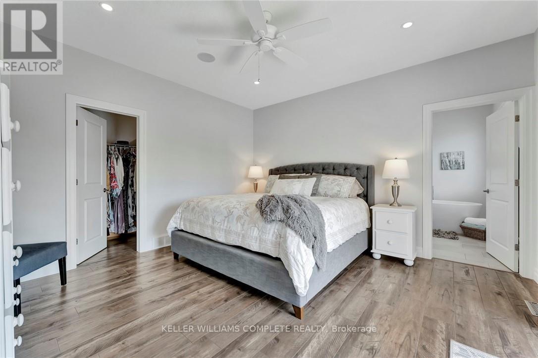 House and Shop combined on almost 4 acres. House or shop available separately as well. Welcome Home to this Beautiful, sprawling executive Bungalow with over 4000 Sq ft of finished living space. Enter into the main foyer where you will find a home office. Continue on into the Open Concept living room, kitchen and dinette with door directly to the covered back porch complete with a build-in gas barbeque. At one end of the house you will find the Primary Bedroom with a 5 pc ensuite, Walk-in closet and sliding doors to an additional patio with a hot-tub. The additional two bedrooms are located at the opposite end of the main level with a 4 pc bathroom between. The massive basement is fully finished with two additional bedrooms, a workout room, a bathroom, and a large rec room complete with a wet bar. Great for family functions and entertaining. The 3 car attached garage has Trusscore walls, floor drainage for melting snow and rain and stairs leading to the main floor and also a set to the basement. The home is situated on an Agriculturally zoned lot leaving the opportunity for your home based Agri business. The property is just under 4 acres with trees dividing the house and the 6000 sq ft shop that has its own driveway and gated entrance. The large shop can provide income by renting the units that you are not using yourself. Great opportunity for the right buyer. (id:64974)