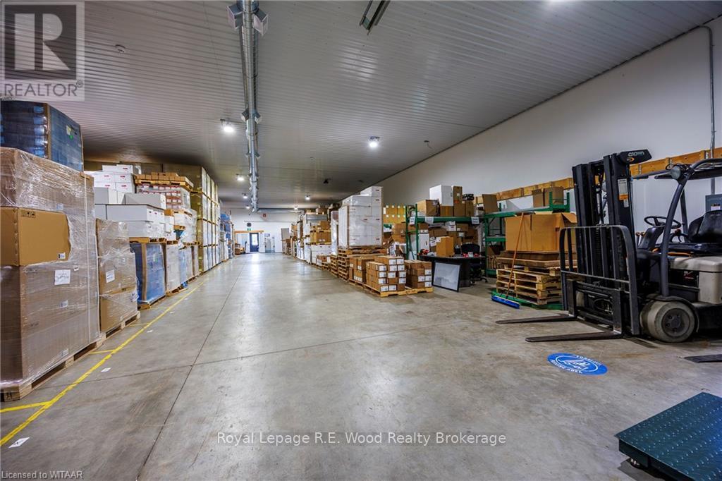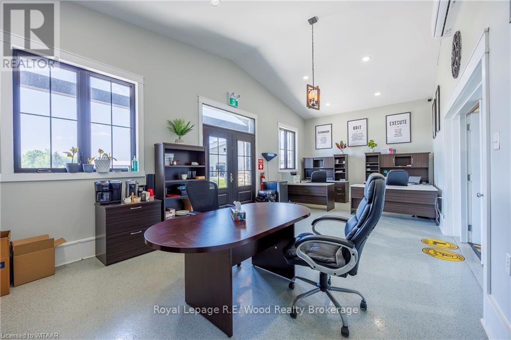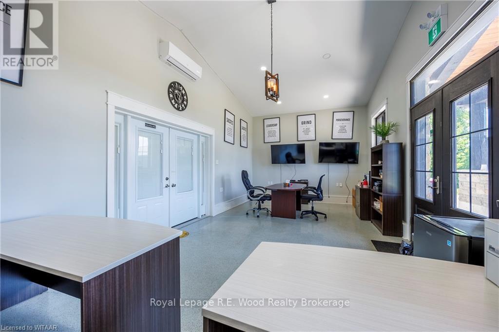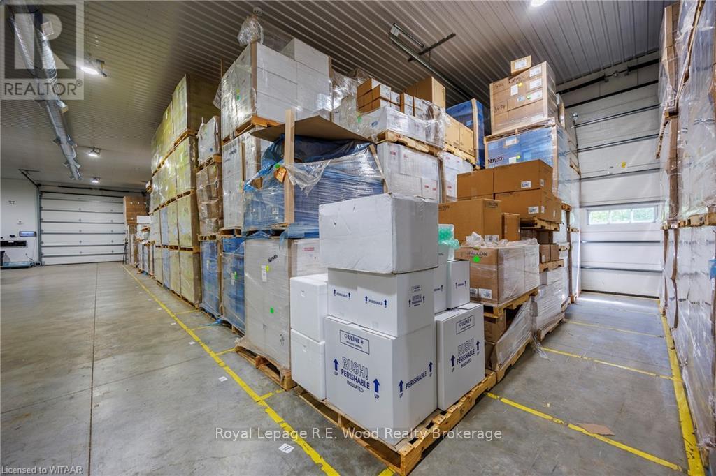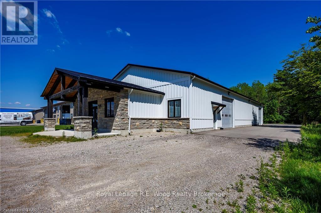 Immaculate 5,400 sq. ft. Shop on a 1.23 acre lot. Excellent construction quality with Hardy board and stone exterior. This shop includes +/-400 sq. ft. vaulted ceiling office space, +/-5000 sq. ft. warehousing/shop space with 14'8" ceiling/13'4" clear, 2 overhead doors that are 12x12 ft plus a third 14x12ft overhead door. The building also features an accessible bathroom, mezzanine, poured concrete floor, fully dry walled interior with LED lighting + lots of natural light. The building is serviced with natural gas and has lots of parking both in front and behind the shop; side drive and rear parking lot are recently fully paved. The MR zoning permits a wide range of uses including but not limited to, assembly plant, contractors shop or yard, a fabricating plant, manufacturing plant, packaging plant, a processing plant, a service shop, a warehouse and more! The Zoning for this shop also permits a Home to be built on the land! Ideal for an owner operated business. (id:64974)