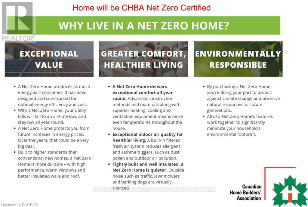Discover the perfect custom bungalow just three blocks away from the beach in Southampton, ON! This net zero certified home offers two spacious bedrooms with main bath and an en suite as well as an open concept living/kitchen/dining room with stunning vaulted ceilings! You have the option to finish the basement (extra cost) if more space is needed. The home features a charming covered front porch and is located on a quiet cul-de-sac. The lot is uniquely situated across from a quiet and private water treatment plant, ensuring no neighbors across the road. Trees and a trail will be added in front for a pleasant view. Dennison Homes Inc., a reputable local custom builder, could start Spring 2026. With their own Interior Design Team, amazing Carpenters and a Custom Cabinet Shop they can make all of your dreams come true! Don't miss out on this opportunity to build your dream home in a fantastic location! (id:64974)