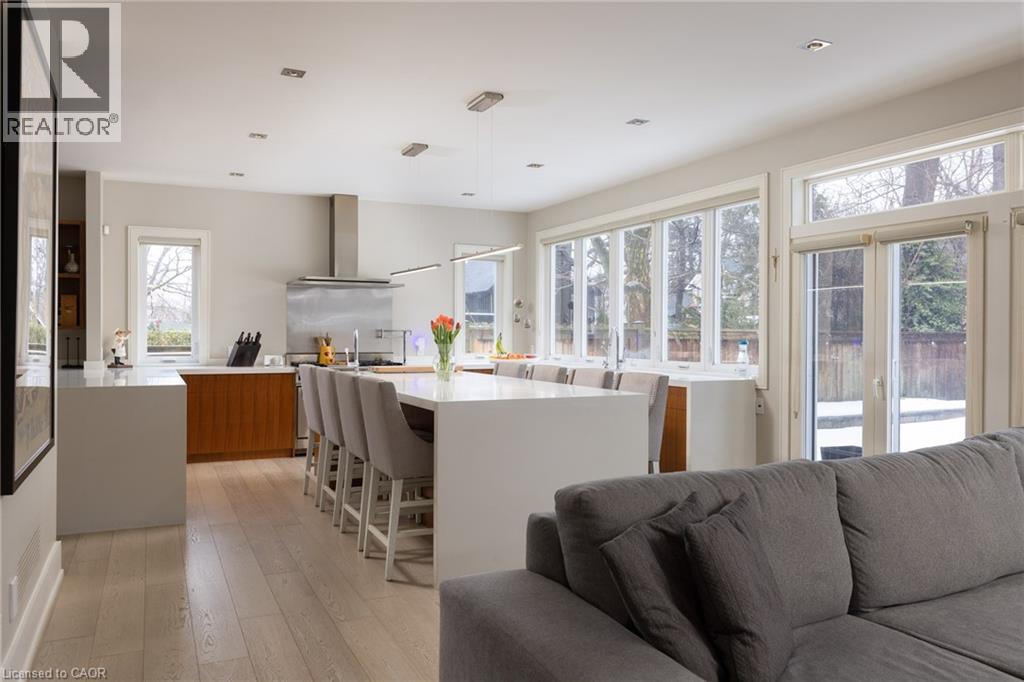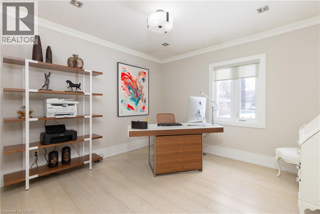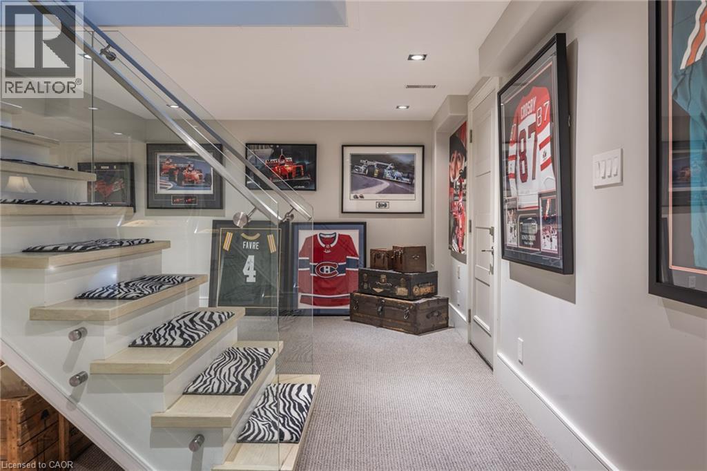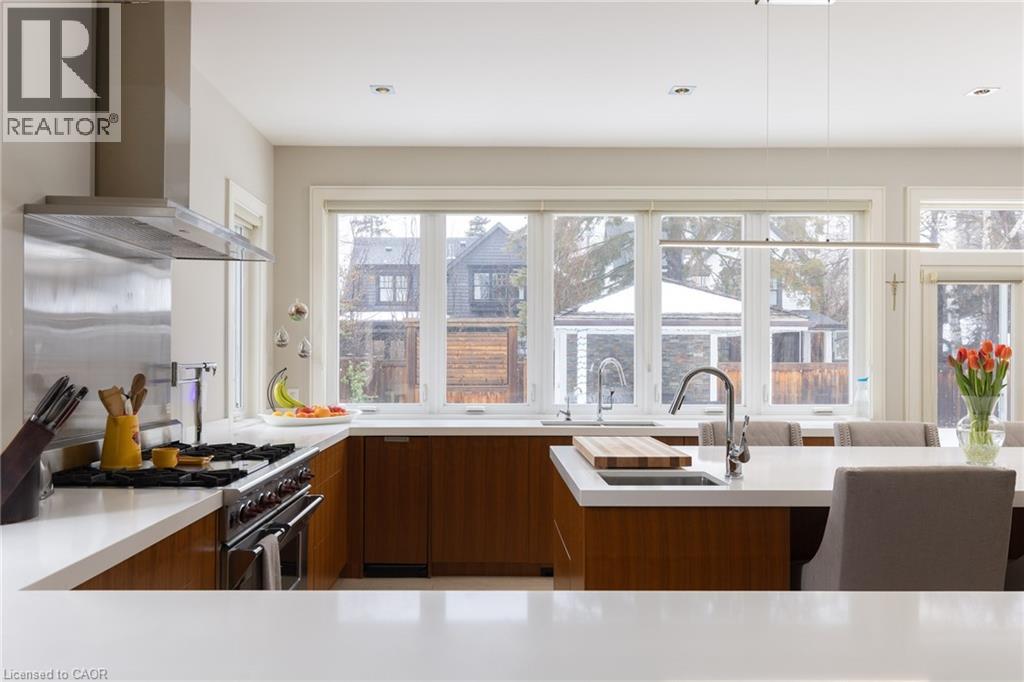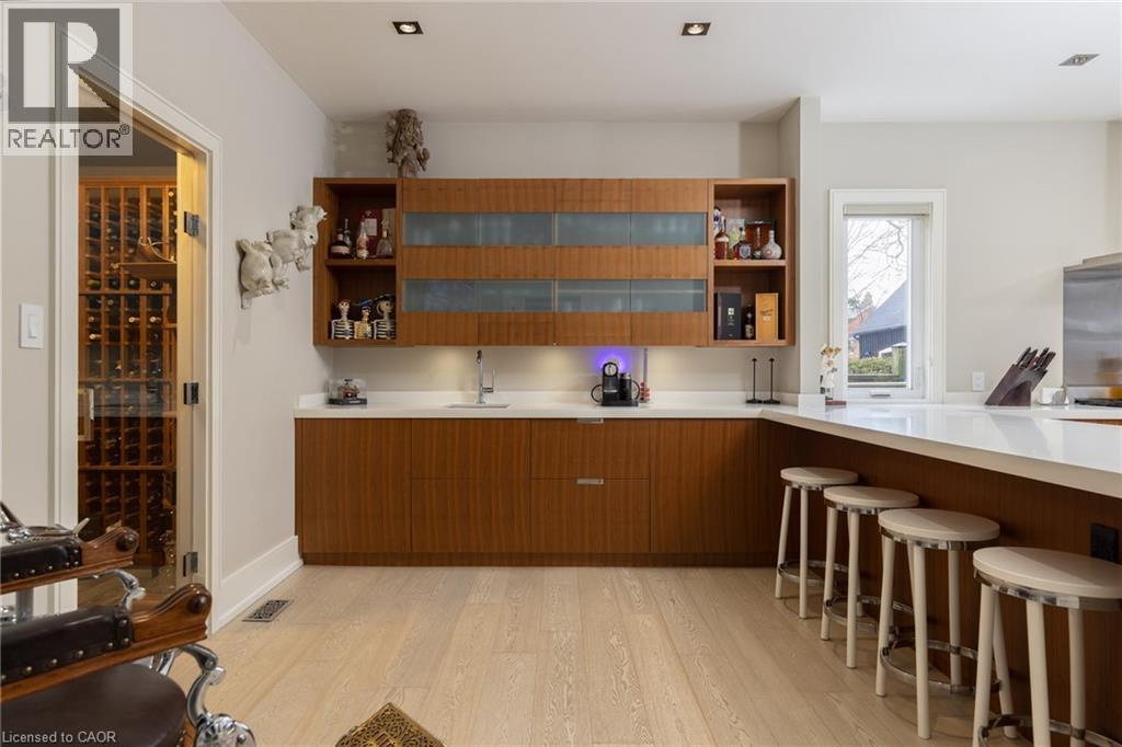This completely renovated contemporary residence represents the pinnacle of modern design and sophisticated living in one of Oakville's most desirable locations of Old Oakville. Every detail of this 4 Bedroom | 4+1 Bathrooms | 4,819 Sq Ft Finished Living Space has been meticulously reimagined to deliver an unparalleled standard of quality and craftsmanship.The highly functional main floor plan centers around an exceptionally sleek kitchen open to the Great Room with gas fireplace and walk out to the resort style backyard and pool.The kitchen is outfitted with luxury high-end appliances, an oversized island seating eight, and an additional peninsula for casual entertaining in the bar area. Adjacent to the kitchen, is a walk in pantry with an additional dishwasher and fridge. Not to be missed is the impressive temperature-controlled wine room accommodates approximately 1,000 bottles—a striking feature for the discerning entertainer. A versatile family room/main floor bedroom with ensuite which can be used as a principal bedroom or guest suite, laundry room, walk-in main closet for storage and access to oversized double car garage. The 2nd level principal suite is a private sanctuary featuring juliette balcony, gas fireplace, two walk-in closets and a spa-inspired ensuite with heated floors, walk-in shower, and a standalone soaking tub.Two additional spacious bedrooms each with their own ensuites complete the level. Not to be missed is the finished lower level room with added storage in the pantry and crawl space area. The backyard is an entertainer's paradise, showcasing a saltwater pool, two expansive patio areas, two gazebos with a gas fire table, and premium Dutch-imported artificial turf that remains lush year-round with zero maintenance. Ideally situated steps from Whole Foods Market, Oakville GO Station, for seamless transit connectivity, and the Oakville Trafalgar Community Centre this extraordinary property offers both refined luxury and everyday convenience. (id:64974)