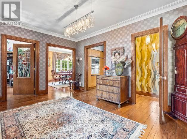 This distinguished pink stone residence, originally built in 1913, is a rare offering in the prestigious neighbourhood of Forest Hill. Rich in history, the property once operated as the renowned Cantab College boys' school during the Depression years before being acquired by the current owners in 1985. The home was meticulously restored and thoughtfully updated, including a seamless stone-clad main floor addition that blends beautifully with the original architecture.The elegant main floor features a welcoming vestibule and grand hall, a cozy library, an entertainment-sized dining room with fireplace, and a gracious living room with bay window and fireplace. Toward the rear, a spacious open-concept kitchen, family, and recreation area with a two-way fireplace overlooks the expansive patio, garden, and swimming pool, creating an ideal setting for both everyday living and entertaining.Upstairs, the second floor offers three bedrooms, including two with ensuite baths, while the third floor provides a substantial bedroom or sitting suite with a three-piece ensuite and cedar closet. The lower level, with 7-foot ceilings, includes a gym and home theatre area with fireplace, additional living quarters, and extensive storage including a wine cellar.Set on an exceptional 75 x 175 ft premium lot, the home occupies only a portion of the site, presenting rare potential for future redevelopment or expansion in one of Toronto's most coveted residential enclaves. The property also includes a detached two-car garage with a pool cabana and washroom.Located minutes from two of Canada's most prestigious private schools, Upper Canada College and Bishop Strachan School, this unique residence offers a remarkable opportunity to enjoy its historic charm today while holding significant long-term potential. (id:64974)